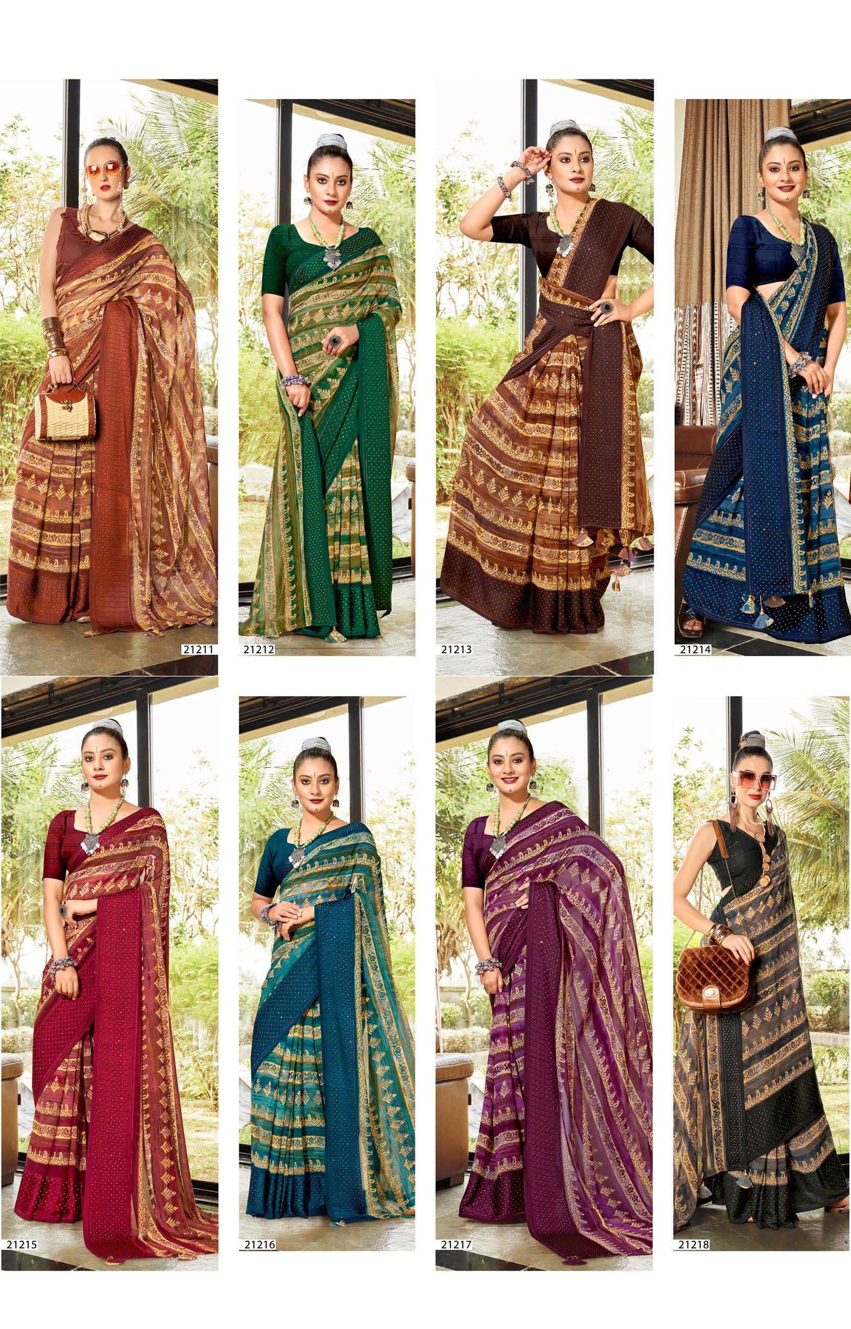 Looking for cosima vol 3 by vallabhi prints georgette ethnic style classy saree wholesaler Full Catalouge at Best Price? Buy Now cosima vol 3 by vallabhi prints georgette ethnic style classy saree wholesaler at Wholesale Rate of Rs 7080 with Total 8 Pcs from authroized dealer and supplier of Vallabhi Prints Brand. Cost of Each piece is just only Rs 885 which is very low and affordable price to resale the product in your retail store. rrgandhi is Surat based Wholesale Supplier & Dealer of Vallabhi Prints Brand. Click on Brand name to Know more about Brand's products.