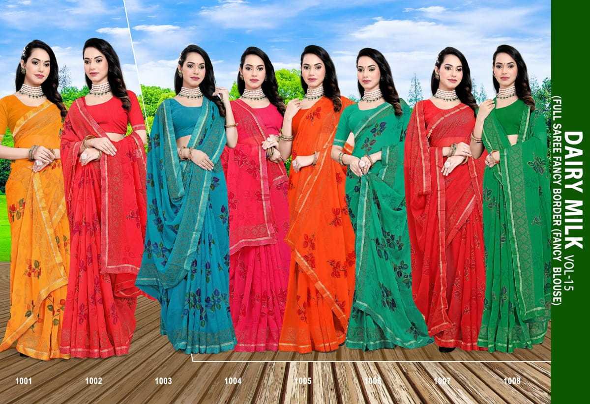Looking for dairy milk vol 15 by madhupriya comfortable latest saree supplier Full Catalouge at Best Price? Buy Now dairy milk vol 15 by madhupriya comfortable latest saree supplier at Wholesale Rate of Rs 2240 with Total 8 Pcs from authroized dealer and supplier of Madhupriya Brand. Cost of Each piece is just only Rs 280 which is very low and affordable price to resale the product in your retail store. rrgandhi is Surat based Wholesale Supplier & Dealer of Madhupriya Brand. Click on Brand name to Know more about Brand's products.