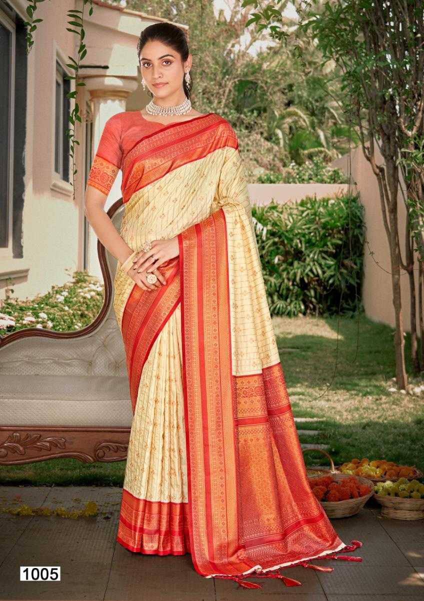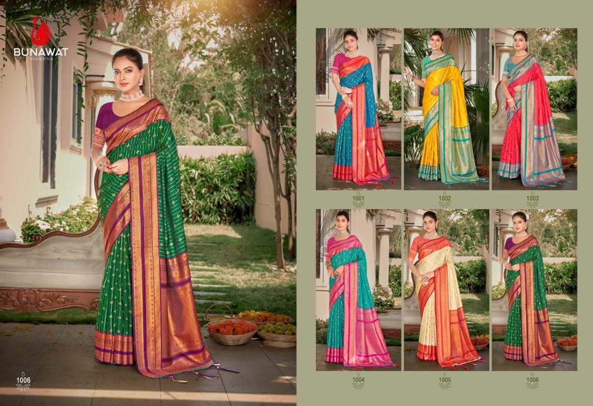 Looking for DAKSH SILK BY BUNAWAT WEDDING FESTIVAL SILK SAREE COLLECTION Full Catalouge at Best Price? Buy Now DAKSH SILK BY BUNAWAT WEDDING FESTIVAL SILK SAREE COLLECTION at Wholesale Rate of Rs 8994 with Total 6 Pcs from authroized dealer and supplier of Bunawat Brand. Cost of Each piece is just only Rs 1499 which is very low and affordable price to resale the product in your retail store. rrgandhi is Surat based Wholesale Supplier & Dealer of Bunawat Brand. Click on Brand name to Know more about Brand's products.