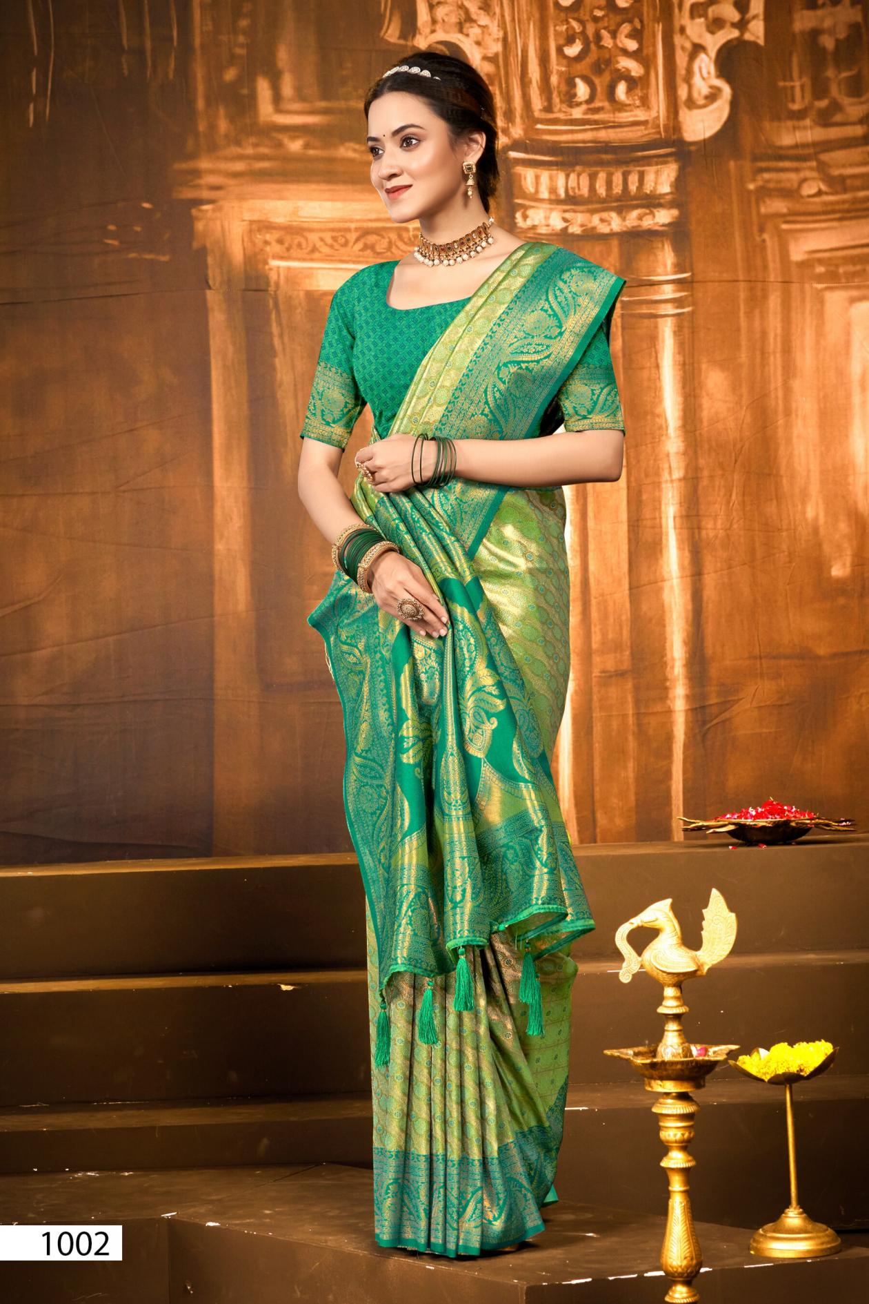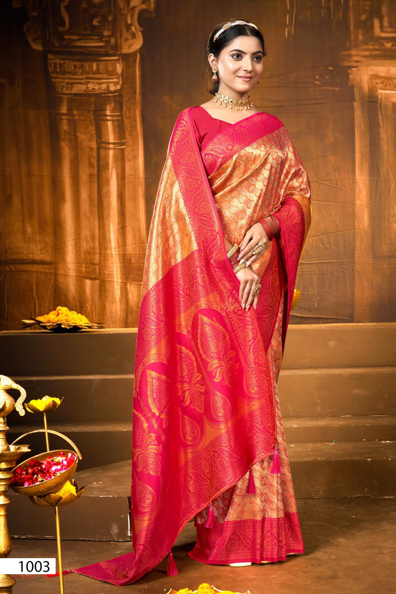 Looking for Deep Rekha silk Saroj vol.1 Kanjvaram silk saree Full Catalouge at Best Price? Buy Now Deep Rekha silk Saroj vol.1 Kanjvaram silk saree at Wholesale Rate of Rs 4170 with Total 6 Pcs from authroized dealer and supplier of Saroj Textiles Brand. Cost of Each piece is just only Rs 695 which is very low and affordable price to resale the product in your retail store. rrgandhi is Surat based Wholesale Supplier & Dealer of Saroj Textiles Brand. Click on Brand name to Know more about Brand's products.
