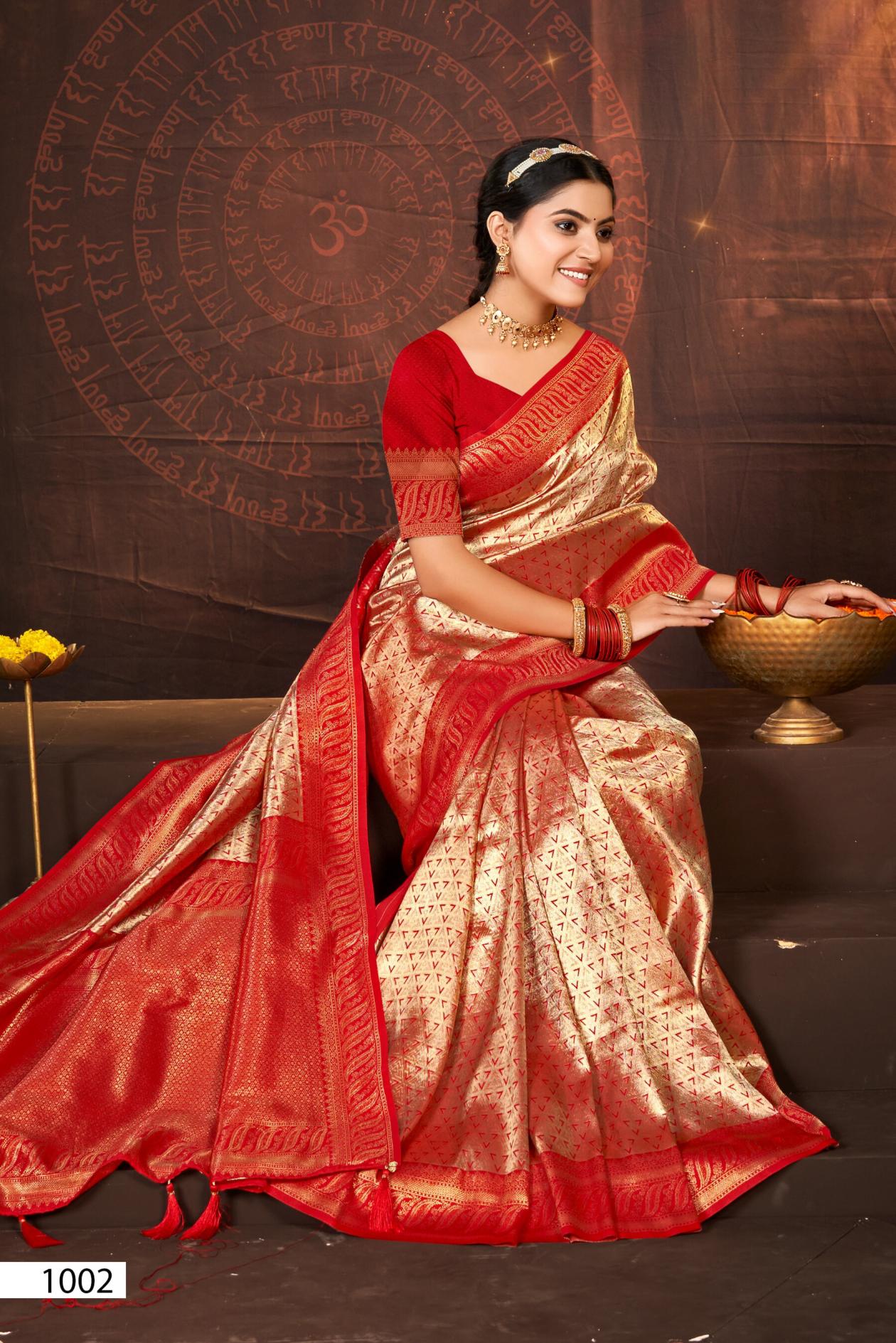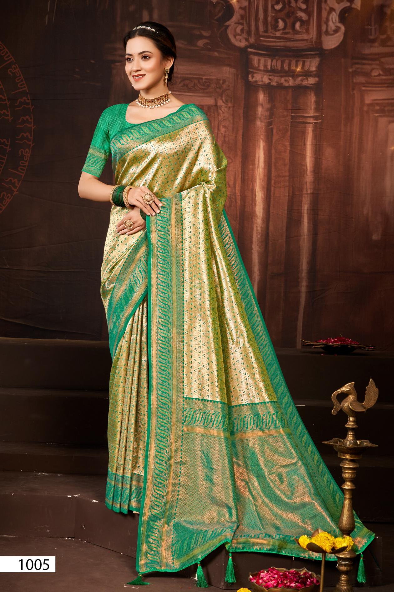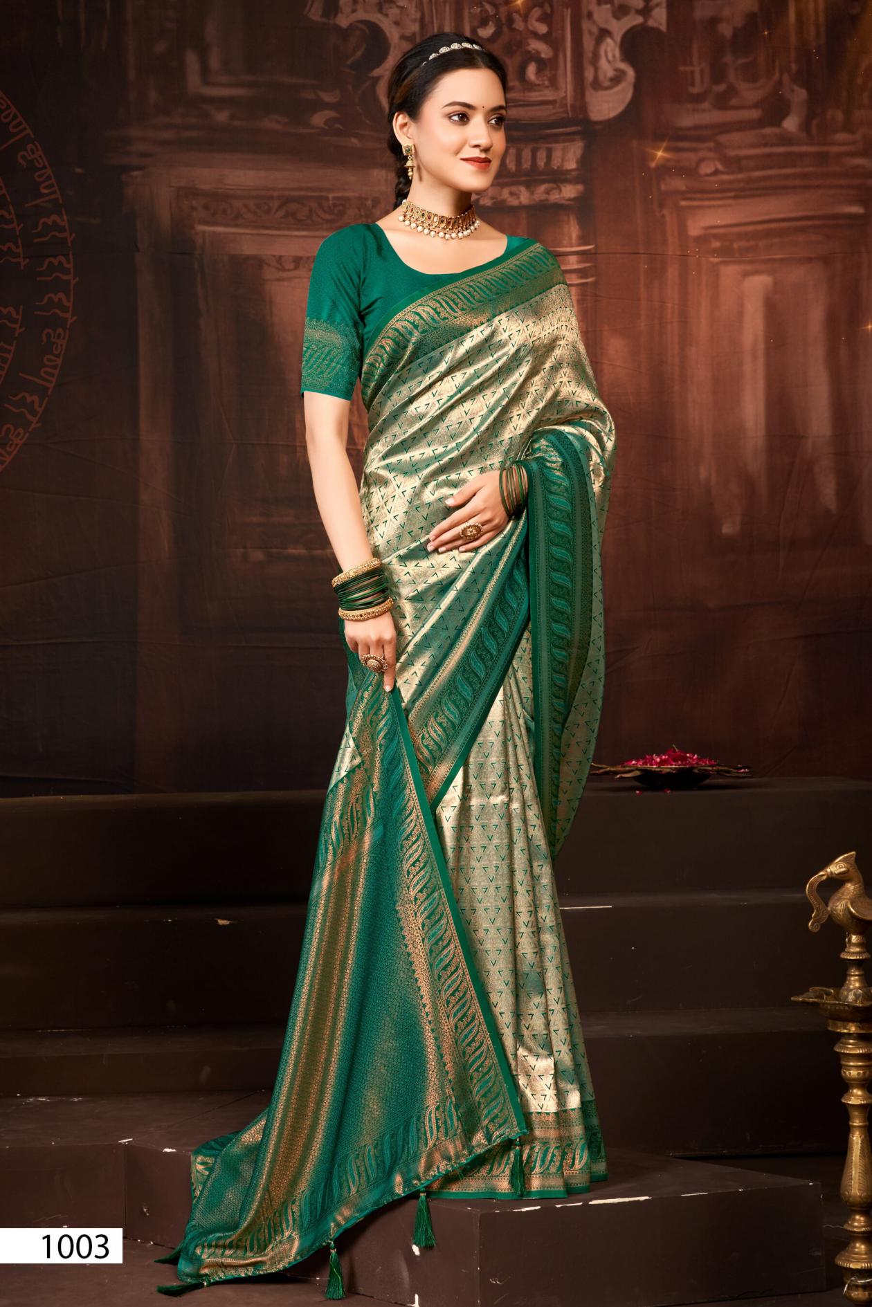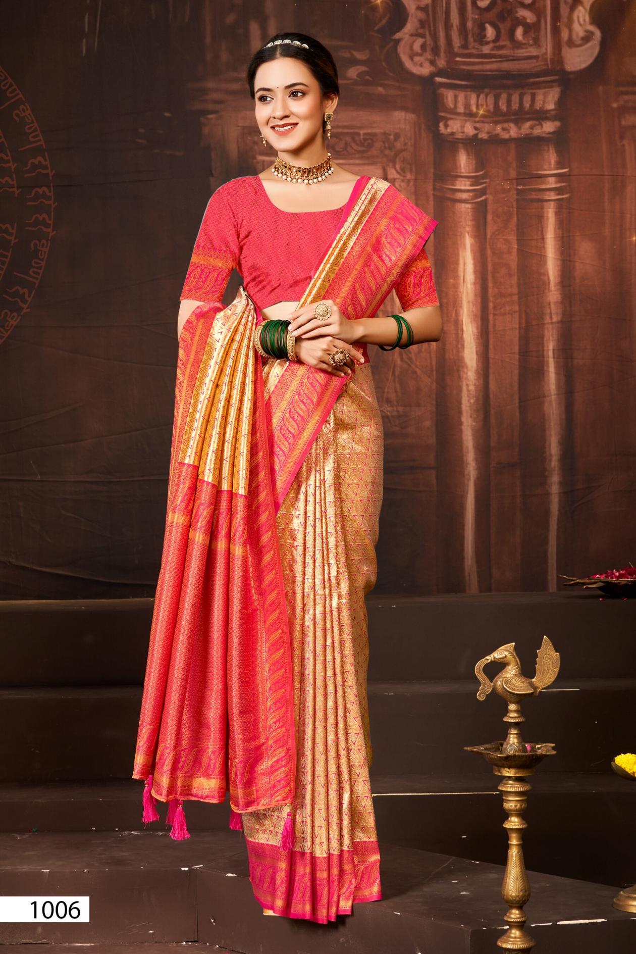 Looking for Deep Rekha silk Saroj vol.2 Kanjvaram silk saree Full Catalouge at Best Price? Buy Now Deep Rekha silk Saroj vol.2 Kanjvaram silk saree at Wholesale Rate of Rs 4170 with Total 6 Pcs from authroized dealer and supplier of Saroj Textiles Brand. Cost of Each piece is just only Rs 695 which is very low and affordable price to resale the product in your retail store. rrgandhi is Surat based Wholesale Supplier & Dealer of Saroj Textiles Brand. Click on Brand name to Know more about Brand's products.