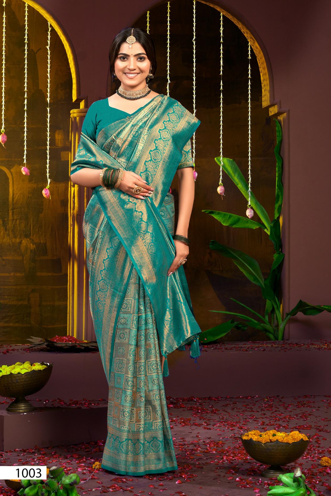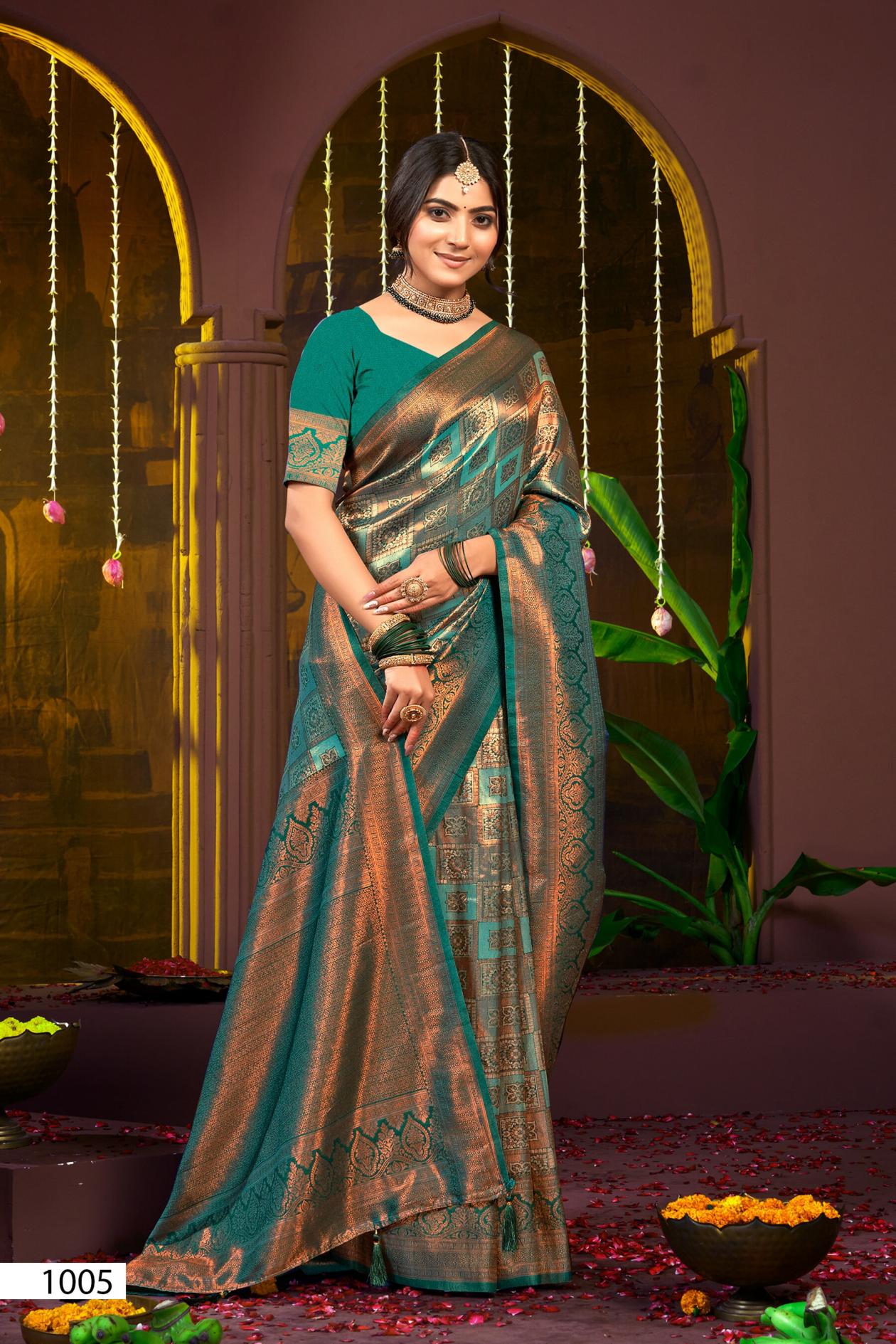 Looking for Deep Rekha silk Saroj vol.6 Kanjvaram silk saree Full Catalouge at Best Price? Buy Now Deep Rekha silk Saroj vol.6 Kanjvaram silk saree at Wholesale Rate of Rs 4170 with Total 6 Pcs from authroized dealer and supplier of Saroj Textiles Brand. Cost of Each piece is just only Rs 695 which is very low and affordable price to resale the product in your retail store. rrgandhi is Surat based Wholesale Supplier & Dealer of Saroj Textiles Brand. Click on Brand name to Know more about Brand's products.
