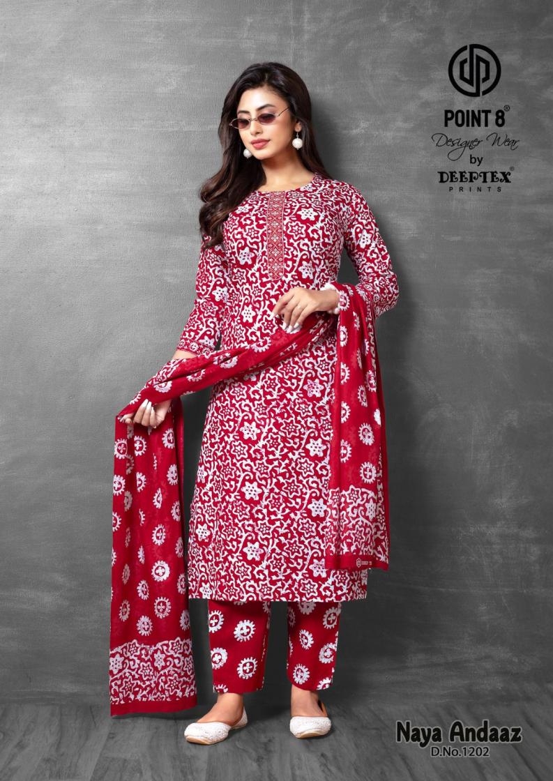 Looking for DEEPTEX POINT 8 NAYA ANDAAZ VOL 12 COTTON FULL STITCH PLUS SIZE SUIT FOR WOMENS Full Catalouge at Best Price? Buy Now DEEPTEX POINT 8 NAYA ANDAAZ VOL 12 COTTON FULL STITCH PLUS SIZE SUIT FOR WOMENS at Wholesale Rate of Rs 5050 with Total 10 Pcs from authroized dealer and supplier of Deeptex Prints Brand. Cost of Each piece is just only Rs 505 which is very low and affordable price to resale the product in your retail store. rrgandhi is Surat based Wholesale Supplier & Dealer of Deeptex Prints Brand. Click on Brand name to Know more about Brand's products.