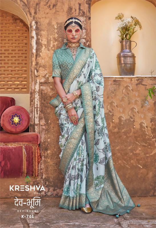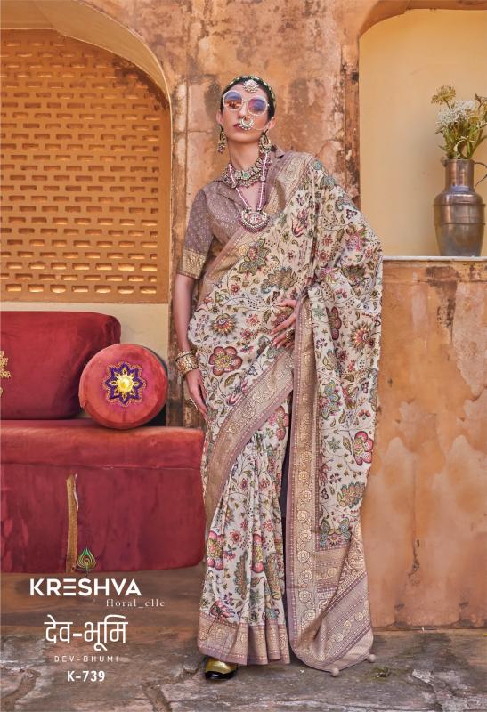 Looking for dev bhumi by kreshva silk smart floral print festival wear adorable saree Full Catalouge at Best Price? Buy Now dev bhumi by kreshva silk smart floral print festival wear adorable saree at Wholesale Rate of Rs 16950 with Total 10 Pcs from authroized dealer and supplier of Kreshva Brand. Cost of Each piece is just only Rs 1695 which is very low and affordable price to resale the product in your retail store. rrgandhi is Surat based Wholesale Supplier & Dealer of Kreshva Brand. Click on Brand name to Know more about Brand's products.