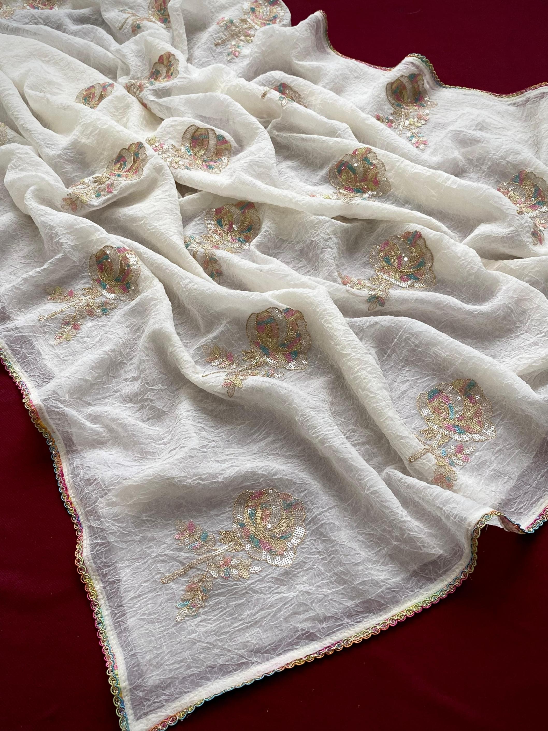 Looking for DHAWANI CRUSHED SEQUENCE WORK TRADITIONAL SAREES Full Catalouge at Best Price? Buy Now DHAWANI CRUSHED SEQUENCE WORK TRADITIONAL SAREES at Wholesale Rate of Rs 1500 with Total 1 Pcs from authroized dealer and supplier of P R Clothing Brand. Cost of Each piece is just only Rs 1500 which is very low and affordable price to resale the product in your retail store. rrgandhi is Surat based Wholesale Supplier & Dealer of P R Clothing Brand. Click on Brand name to Know more about Brand's products.