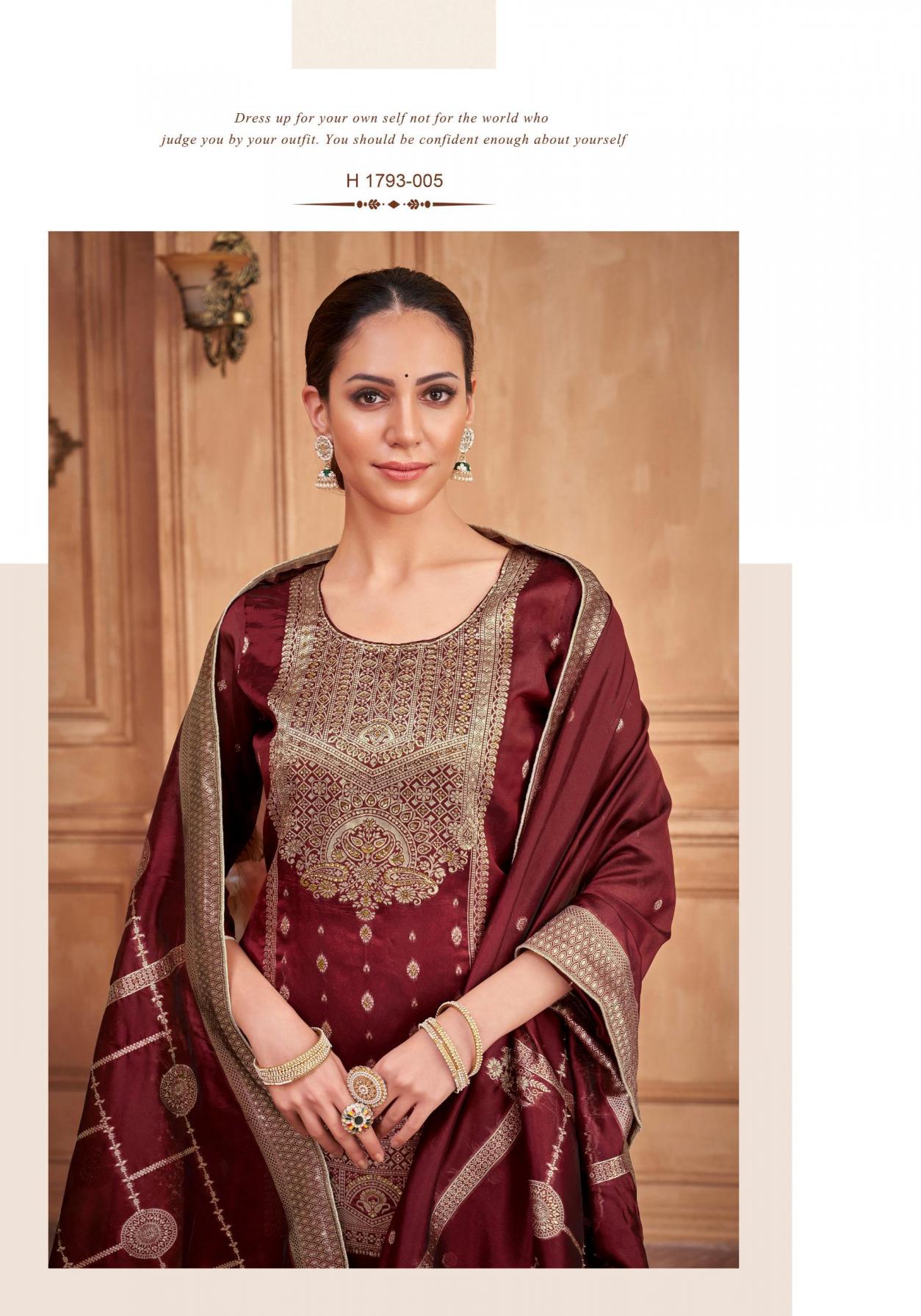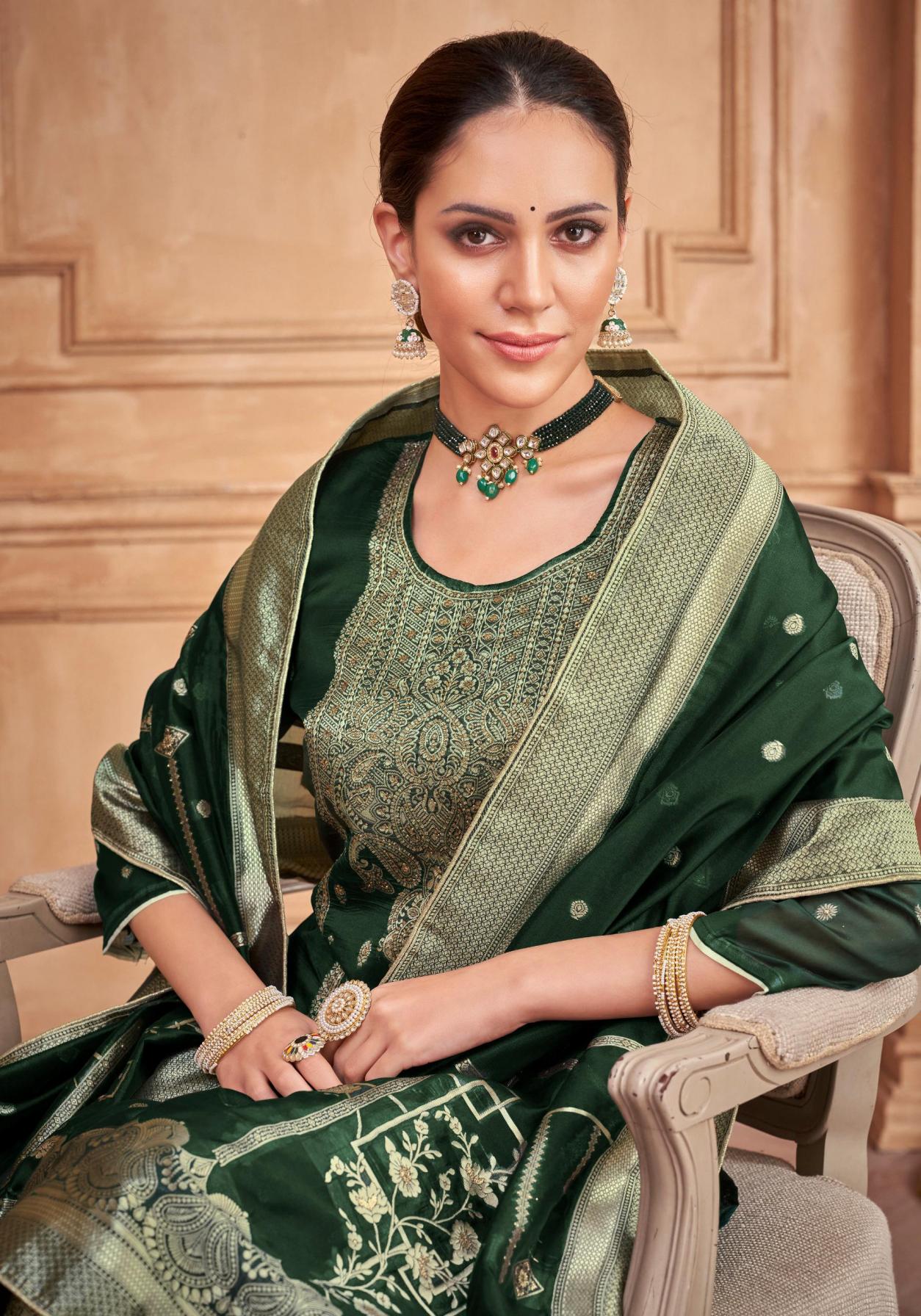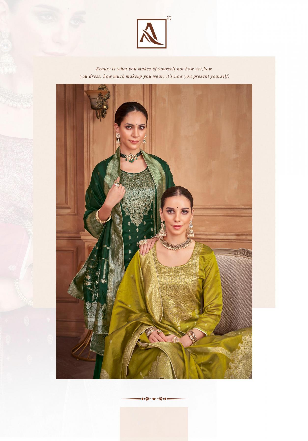Looking for DILKASH BY ALOK UNIQUE WEAVING JACQUARD PAKISTANI SUITS Full Catalouge at Best Price? Buy Now DILKASH BY ALOK UNIQUE WEAVING JACQUARD PAKISTANI SUITS at Wholesale Rate of Rs 3250 with Total 5 Pcs from authroized dealer and supplier of Alok Suit Brand. Cost of Each piece is just only Rs 650 which is very low and affordable price to resale the product in your retail store. rrgandhi is Surat based Wholesale Supplier & Dealer of Alok Suit Brand. Click on Brand name to Know more about Brand's products.
