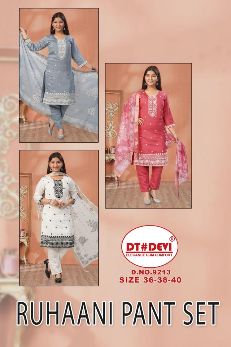 Looking for DT DEVI RUHAANI PANT SET 9213 FULL STITCH ROMAN SILK COMBO KIDS DRESS Full Catalouge at Best Price? Buy Now DT DEVI RUHAANI PANT SET 9213 FULL STITCH ROMAN SILK COMBO KIDS DRESS at Wholesale Rate of Rs 6165 with Total 9 Pcs from authroized dealer and supplier of Dt Devi Brand. Cost of Each piece is just only Rs 685 which is very low and affordable price to resale the product in your retail store. rrgandhi is Surat based Wholesale Supplier & Dealer of Dt Devi Brand. Click on Brand name to Know more about Brand's products.