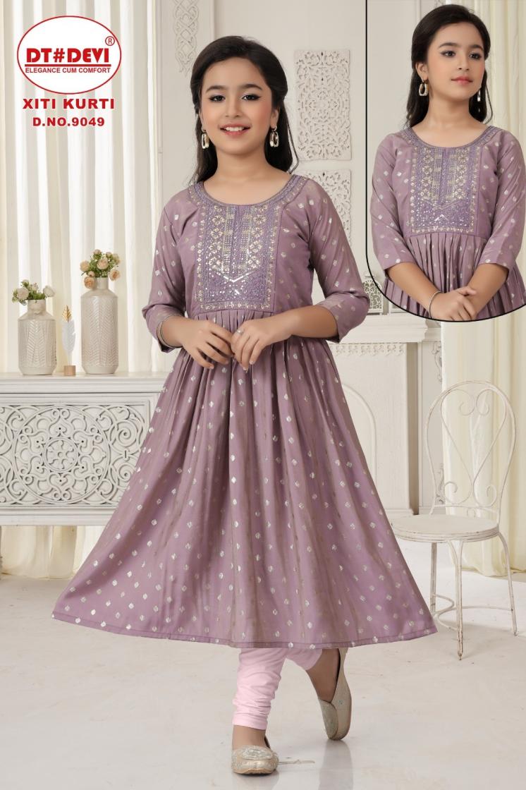 Looking for DT DEVI XITI KURTI ROMAN SHIMMER 9049 UNIQUE FULL STITCH COMBO KIDS KURTI Full Catalouge at Best Price? Buy Now DT DEVI XITI KURTI ROMAN SHIMMER 9049 UNIQUE FULL STITCH COMBO KIDS KURTI at Wholesale Rate of Rs 5340 with Total 12 Pcs from authroized dealer and supplier of Dt Devi Brand. Cost of Each piece is just only Rs 445 which is very low and affordable price to resale the product in your retail store. rrgandhi is Surat based Wholesale Supplier & Dealer of Dt Devi Brand. Click on Brand name to Know more about Brand's products.