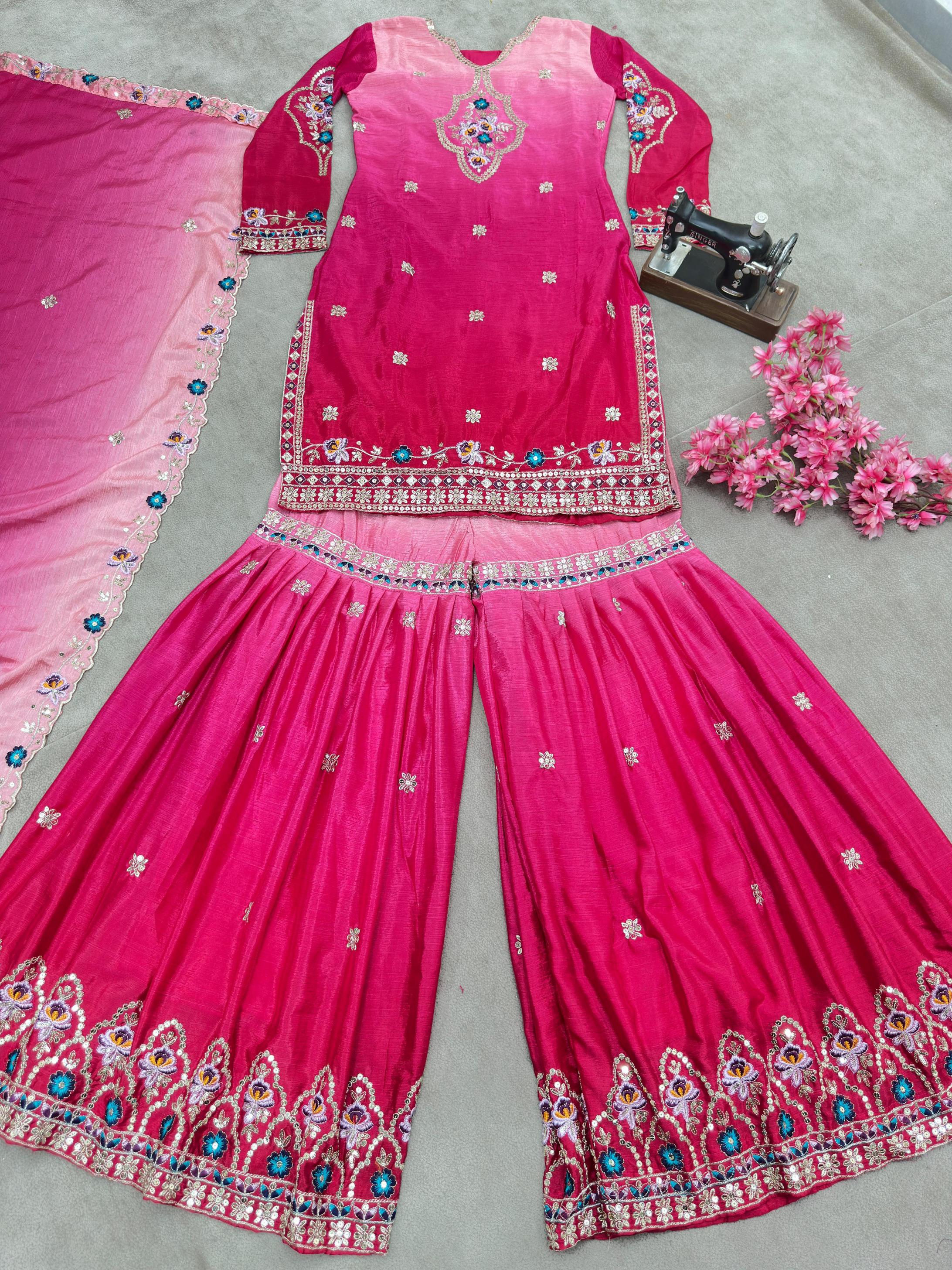 Looking for DVD 5121 CHINON ATTRACTIVE SEQUENCE FULL STITCH COMBO SHARARA STYLE 3PCS DRESS Full Catalouge at Best Price? Buy Now DVD 5121 CHINON ATTRACTIVE SEQUENCE FULL STITCH COMBO SHARARA STYLE 3PCS DRESS at Wholesale Rate of Rs 5396 with Total 4 Pcs from authroized dealer and supplier of P R Clothing Brand. Cost of Each piece is just only Rs 1349 which is very low and affordable price to resale the product in your retail store. rrgandhi is Surat based Wholesale Supplier & Dealer of P R Clothing Brand. Click on Brand name to Know more about Brand's products.