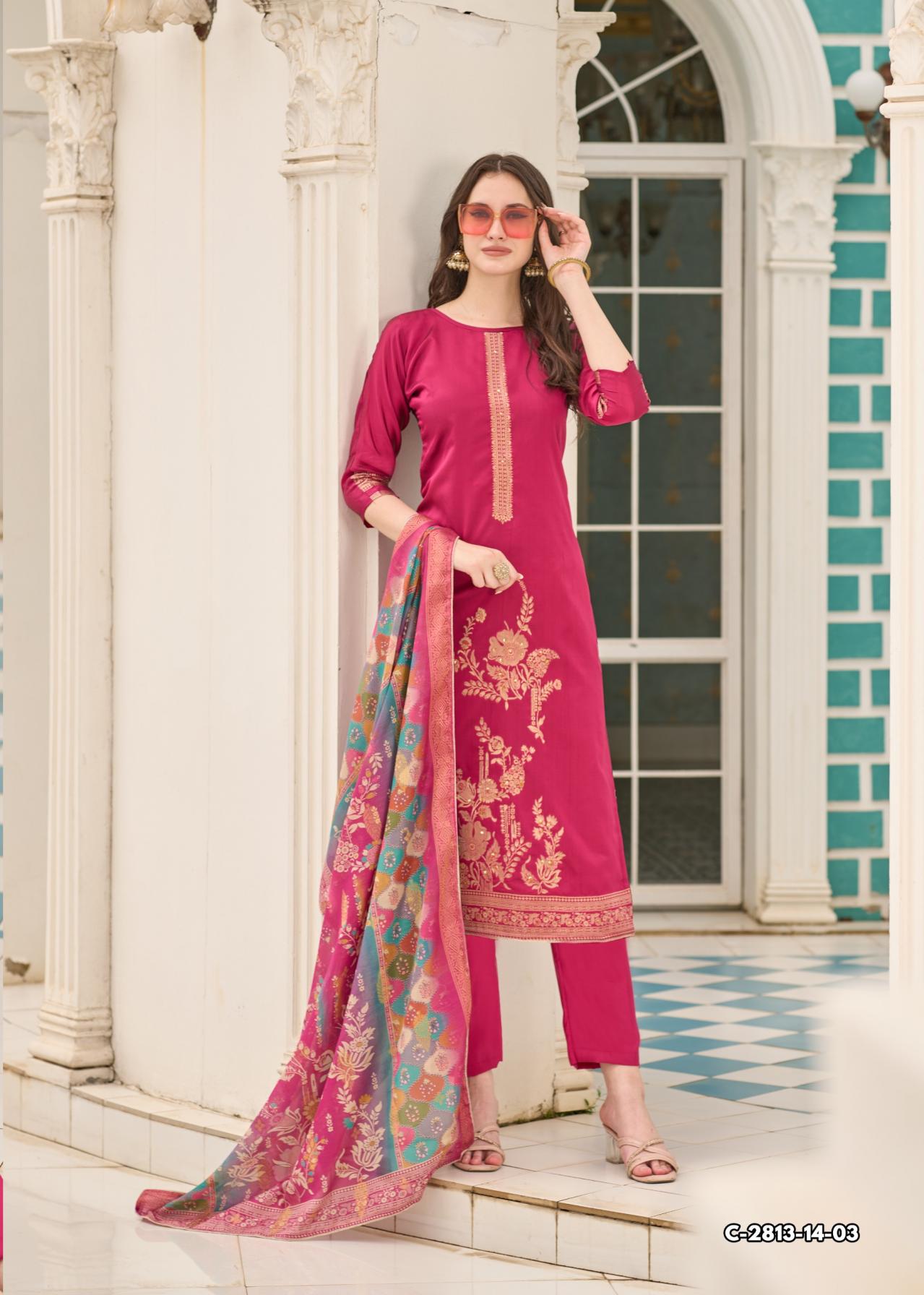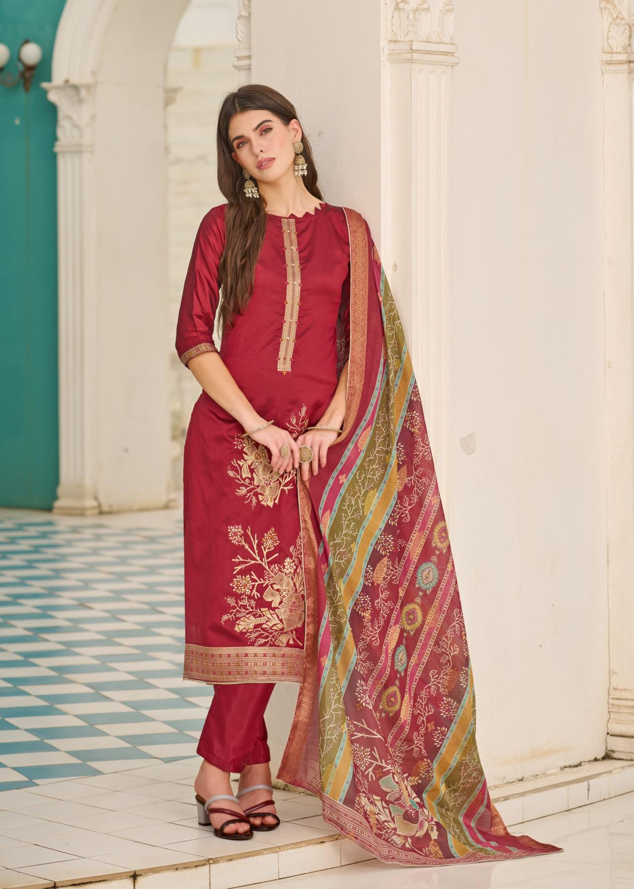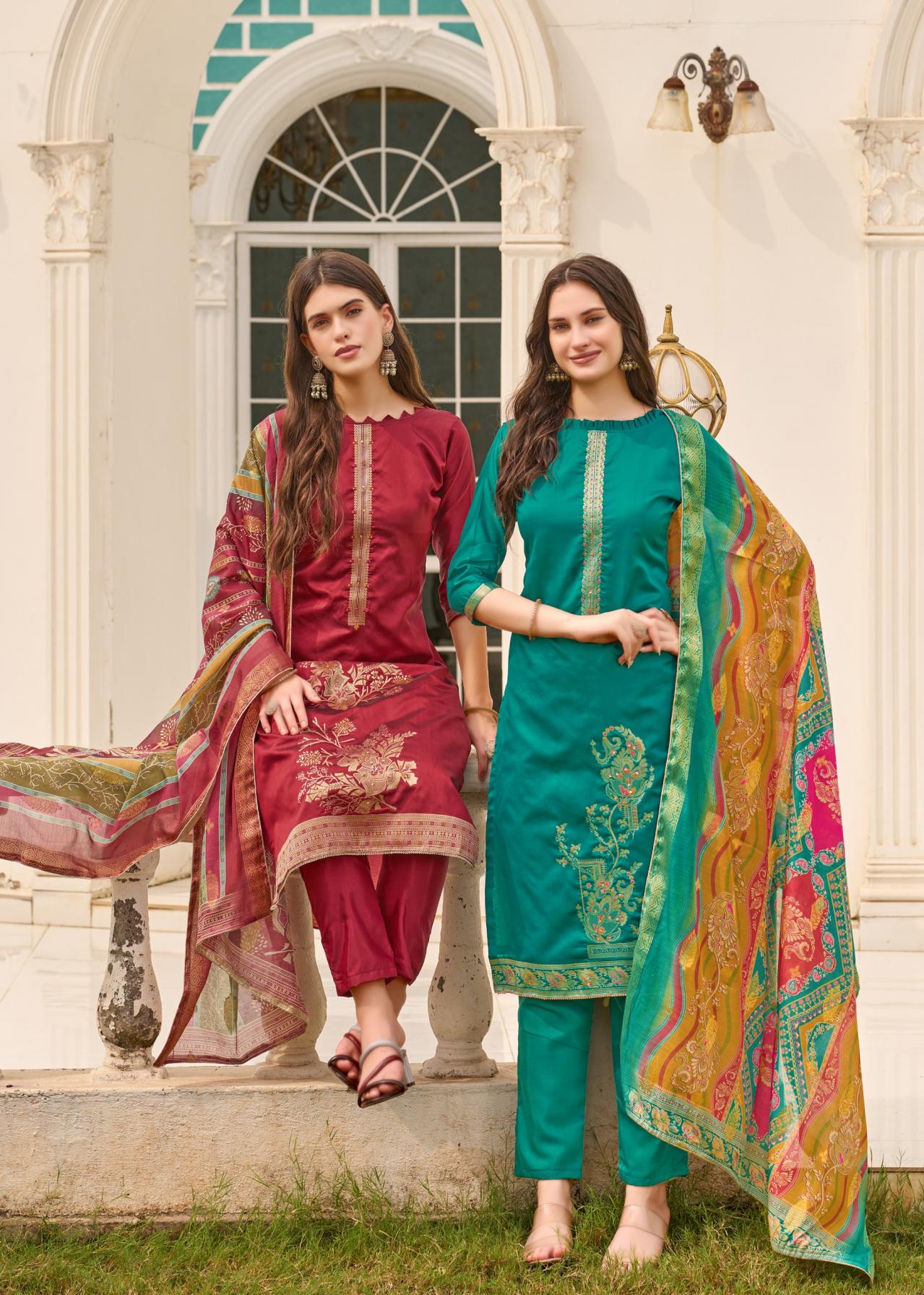 Looking for FALSAFAA VOL 18 BY ALOK DOLA JACQUARD FANCY DRESS MATERIALS Full Catalouge at Best Price? Buy Now FALSAFAA VOL 18 BY ALOK DOLA JACQUARD FANCY DRESS MATERIALS at Wholesale Rate of Rs 5394 with Total 6 Pcs from authroized dealer and supplier of Alok Suit Brand. Cost of Each piece is just only Rs 899 which is very low and affordable price to resale the product in your retail store. rrgandhi is Surat based Wholesale Supplier & Dealer of Alok Suit Brand. Click on Brand name to Know more about Brand's products.