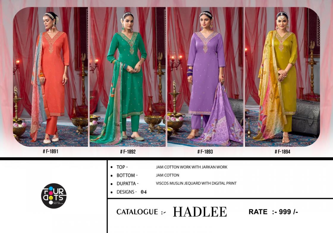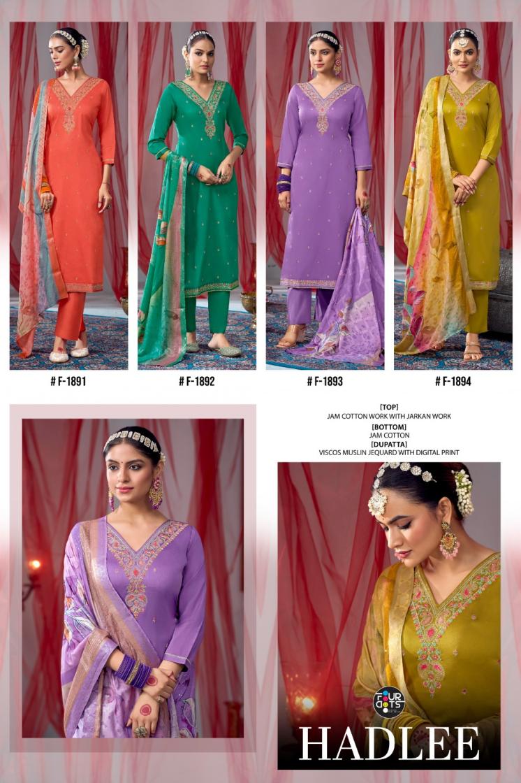 Looking for FOURDOTS HADLEE AMAZING JAM COTTON PRETTY 3PCS DRESS Full Catalouge at Best Price? Buy Now FOURDOTS HADLEE AMAZING JAM COTTON PRETTY 3PCS DRESS at Wholesale Rate of Rs 3996 with Total 4 Pcs from authroized dealer and supplier of Fourdots Brand. Cost of Each piece is just only Rs 999 which is very low and affordable price to resale the product in your retail store. rrgandhi is Surat based Wholesale Supplier & Dealer of Fourdots Brand. Click on Brand name to Know more about Brand's products.
