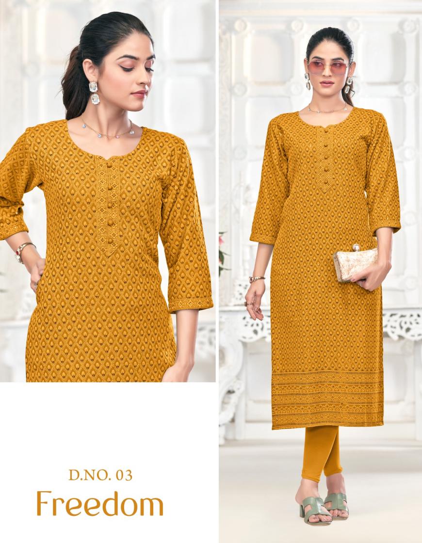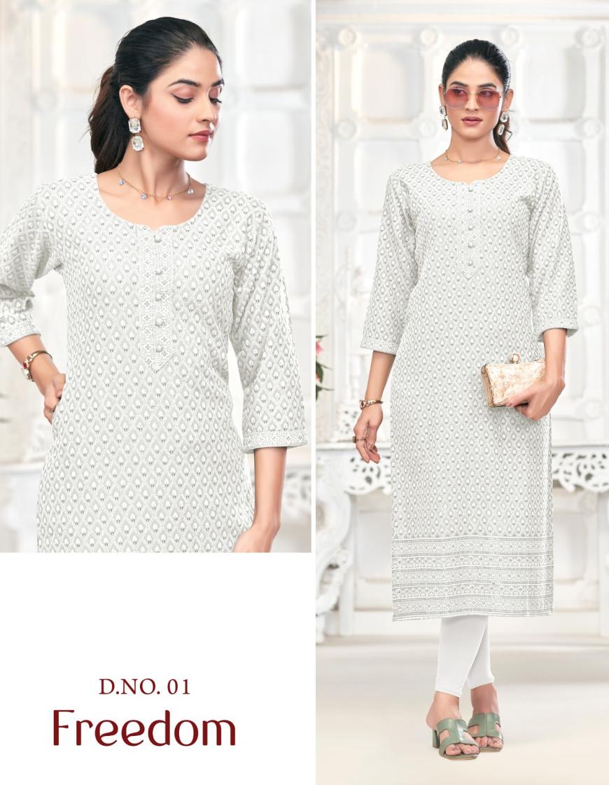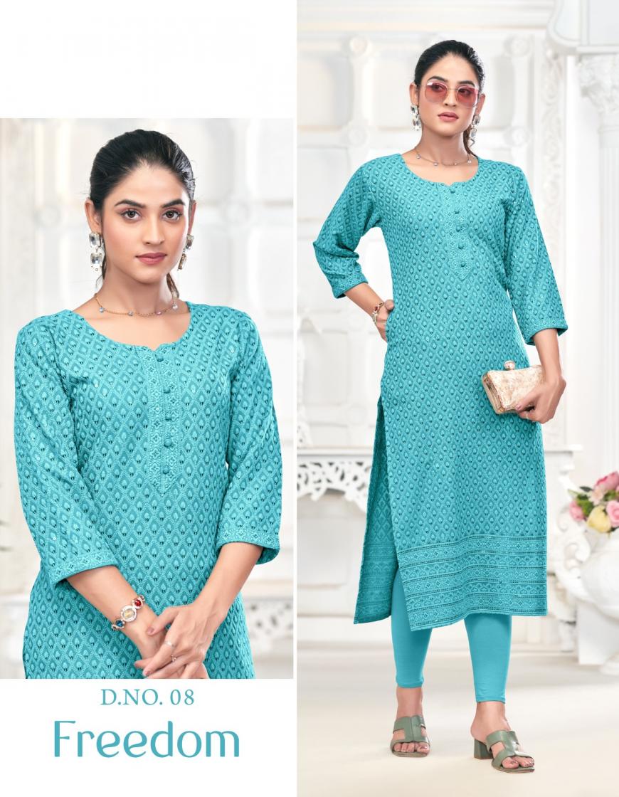 Looking for FREEDOM TUNIC HOUSE CHIKANKARI SEQUINCE SIZE SET COMBO COLLECTION Full Catalouge at Best Price? Buy Now FREEDOM TUNIC HOUSE CHIKANKARI SEQUINCE SIZE SET COMBO COLLECTION at Wholesale Rate of Rs 9980 with Total 20 Pcs from authroized dealer and supplier of Tunic House Brand. Cost of Each piece is just only Rs 499 which is very low and affordable price to resale the product in your retail store. rrgandhi is Surat based Wholesale Supplier & Dealer of Tunic House Brand. Click on Brand name to Know more about Brand's products.