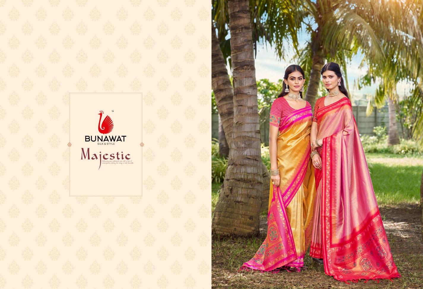Looking for Gajal Silk By Bunawat Festival Wear New Designer Silk Sarees Collection Full Catalouge at Best Price? Buy Now Gajal Silk By Bunawat Festival Wear New Designer Silk Sarees Collection at Wholesale Rate of Rs 9594 with Total 6 Pcs from authroized dealer and supplier of Bunawat Brand. Cost of Each piece is just only Rs 1599 which is very low and affordable price to resale the product in your retail store. rrgandhi is Surat based Wholesale Supplier & Dealer of Bunawat Brand. Click on Brand name to Know more about Brand's products.