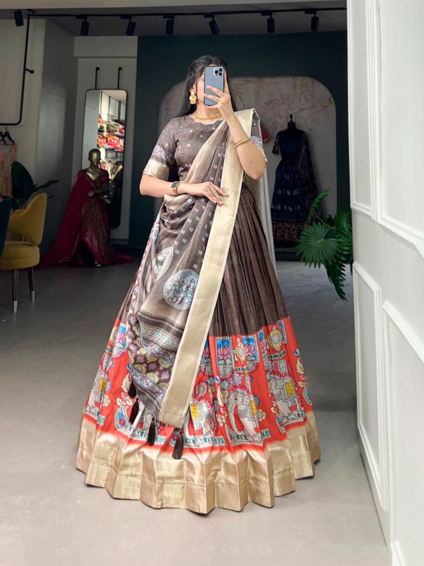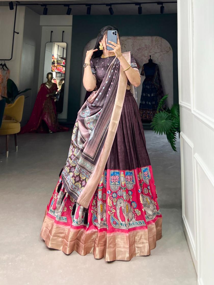 Looking for gajgamini lnb1022 dola silk kalamkari stitch lehenga unstitch choli for ladies Full Catalouge at Best Price? Buy Now gajgamini lnb1022 dola silk kalamkari stitch lehenga unstitch choli for ladies at Wholesale Rate of Rs 1398 with Total 2 Pcs from authroized dealer and supplier of P R Clothing Brand. Cost of Each piece is just only Rs 699 which is very low and affordable price to resale the product in your retail store. rrgandhi is Surat based Wholesale Supplier & Dealer of P R Clothing Brand. Click on Brand name to Know more about Brand's products.