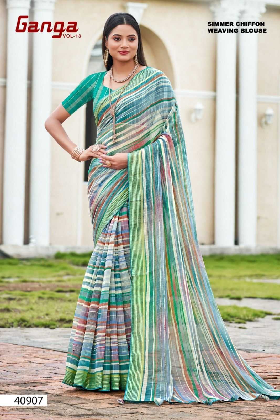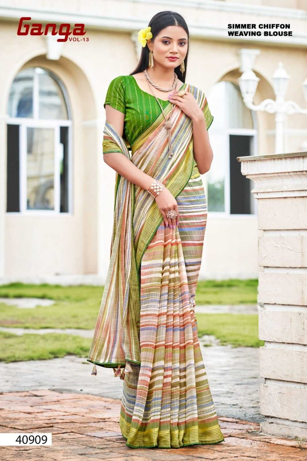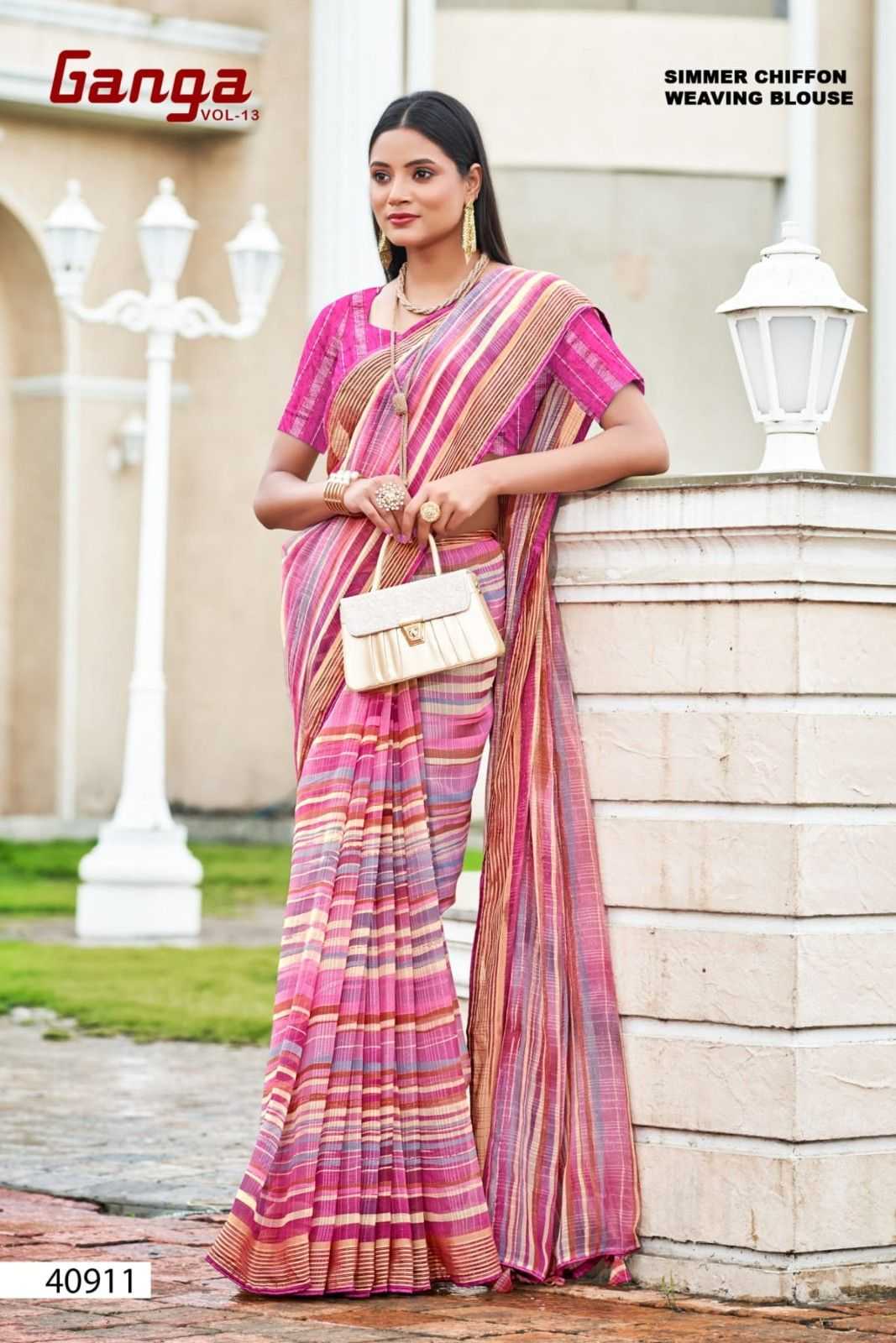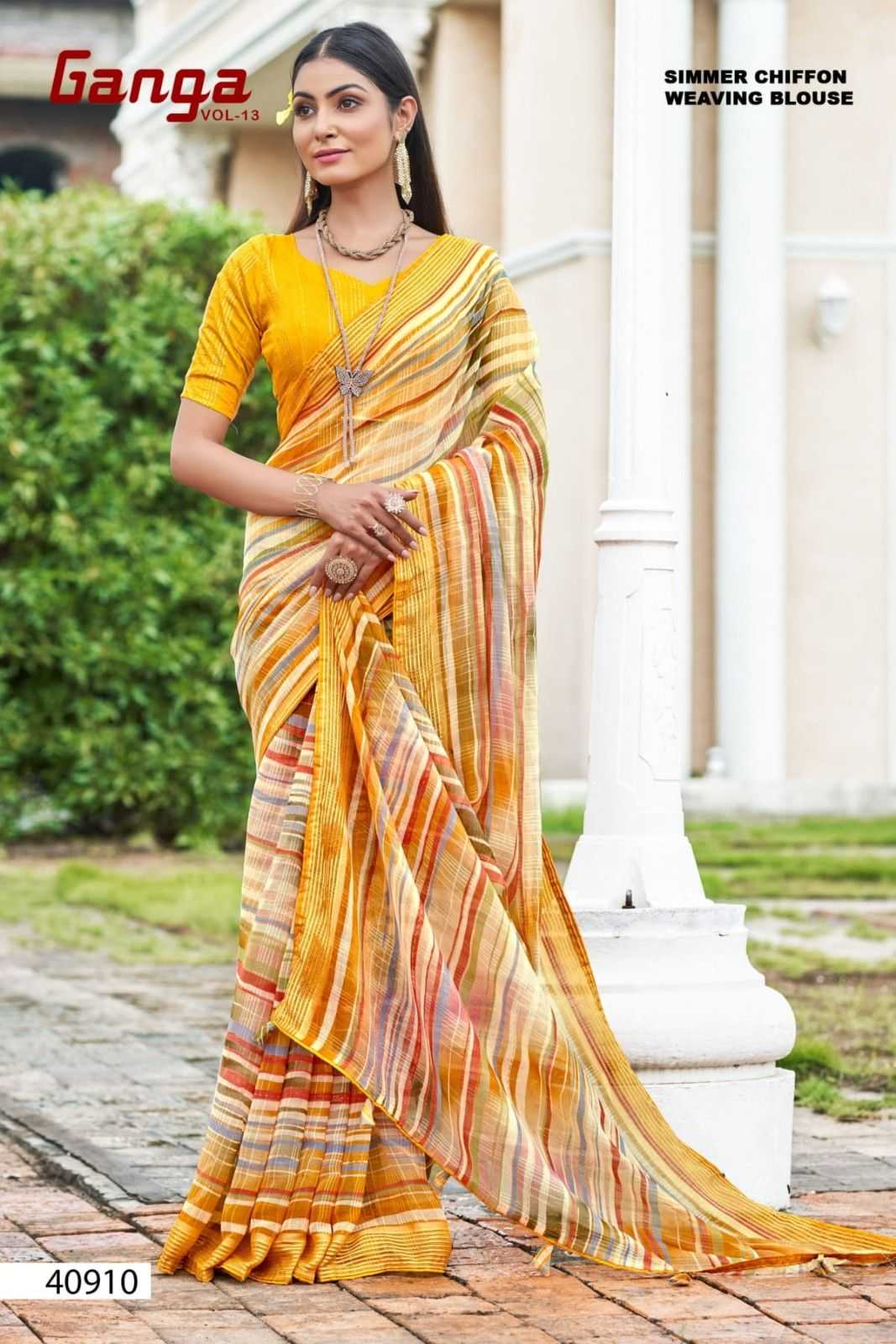 Looking for ganga vol 14 by 5d designer bright simmer classic chiffon weaving pattern saree Full Catalouge at Best Price? Buy Now ganga vol 14 by 5d designer bright simmer classic chiffon weaving pattern saree at Wholesale Rate of Rs 3150 with Total 6 Pcs from authroized dealer and supplier of 5D Designer Brand. Cost of Each piece is just only Rs 525 which is very low and affordable price to resale the product in your retail store. rrgandhi is Surat based Wholesale Supplier & Dealer of 5D Designer Brand. Click on Brand name to Know more about Brand's products.