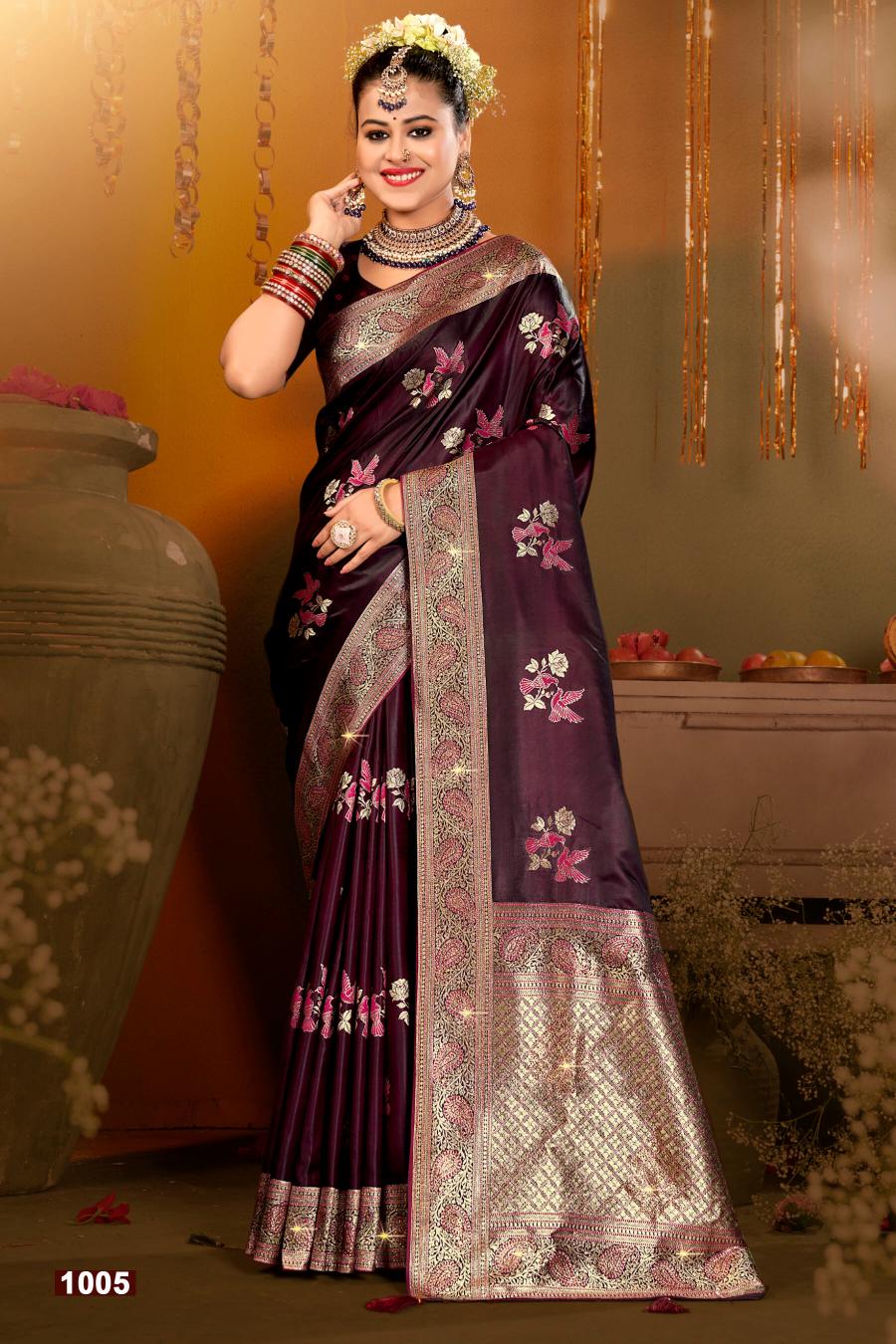 Looking for Gangavati satin silk Saroj vol.3 soft satin silk saree Full Catalouge at Best Price? Buy Now Gangavati satin silk Saroj vol.3 soft satin silk saree at Wholesale Rate of Rs 9510 with Total 6 Pcs from authroized dealer and supplier of Saroj Textiles Brand. Cost of Each piece is just only Rs 1585 which is very low and affordable price to resale the product in your retail store. rrgandhi is Surat based Wholesale Supplier & Dealer of Saroj Textiles Brand. Click on Brand name to Know more about Brand's products.