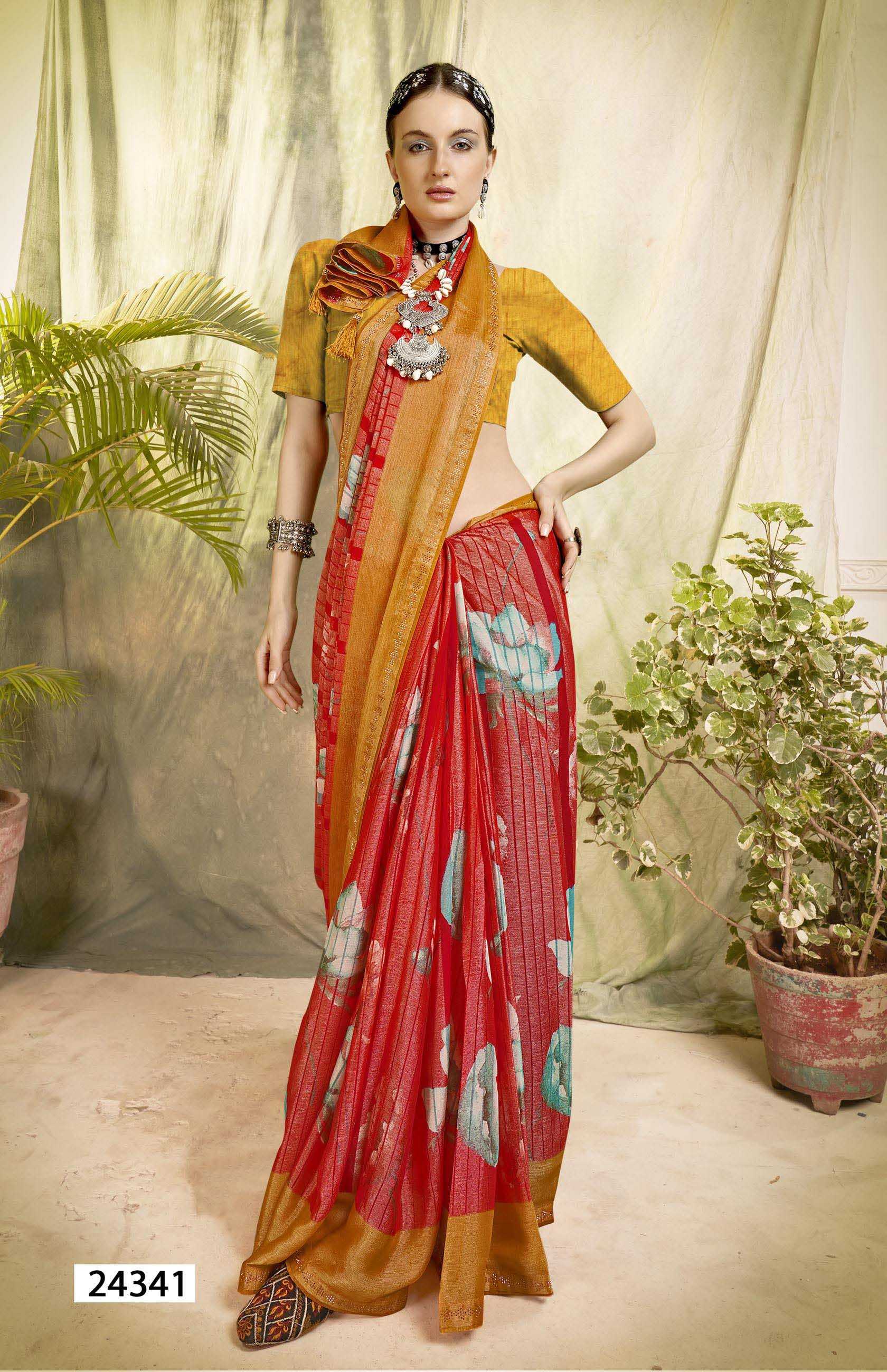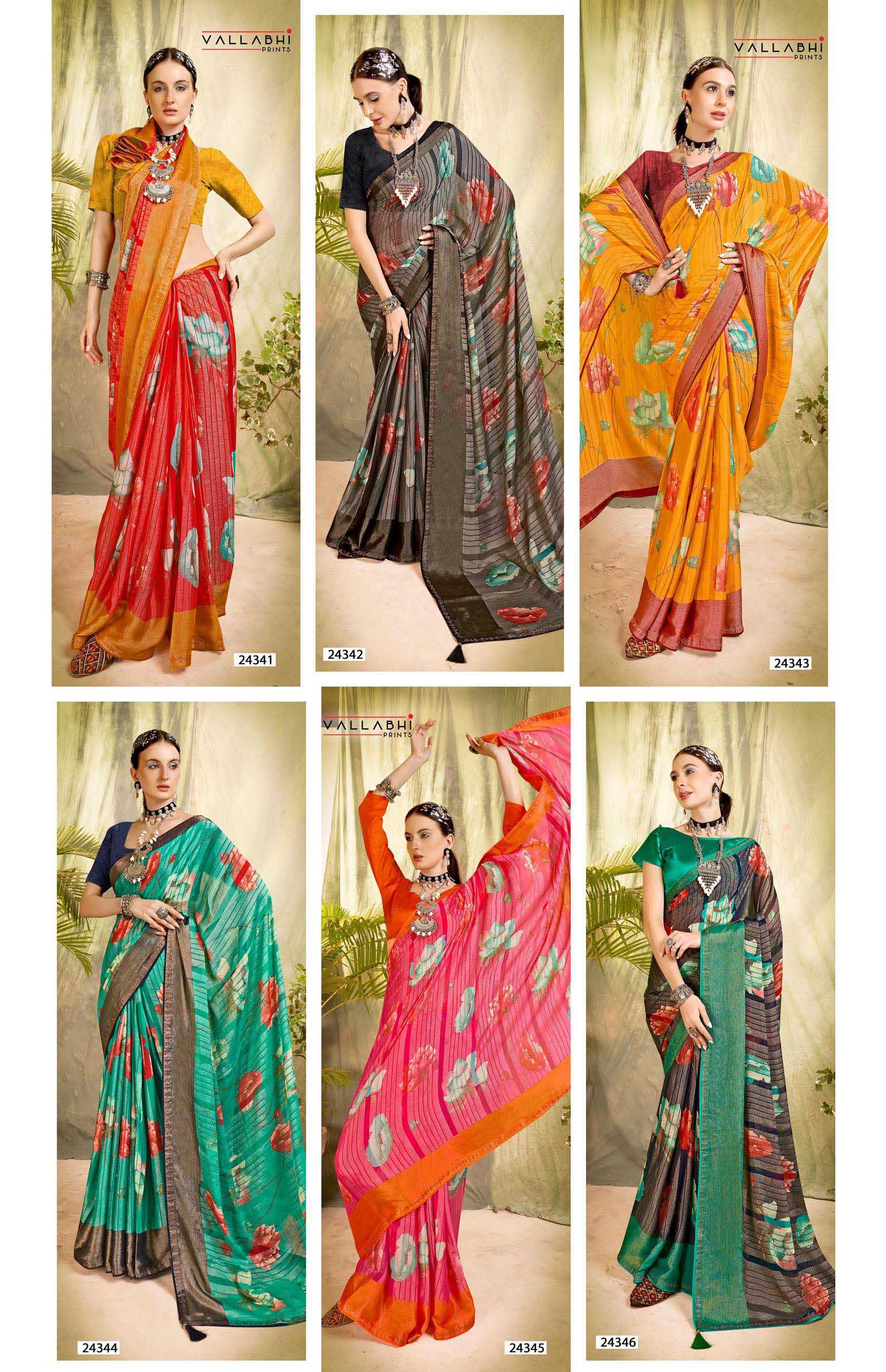 Looking for gautami vol 5 by vallabhi prints traditional stylish look brasso saree wholesaler Full Catalouge at Best Price? Buy Now gautami vol 5 by vallabhi prints traditional stylish look brasso saree wholesaler at Wholesale Rate of Rs 5550 with Total 6 Pcs from authroized dealer and supplier of Vallabhi Prints Brand. Cost of Each piece is just only Rs 925 which is very low and affordable price to resale the product in your retail store. rrgandhi is Surat based Wholesale Supplier & Dealer of Vallabhi Prints Brand. Click on Brand name to Know more about Brand's products.