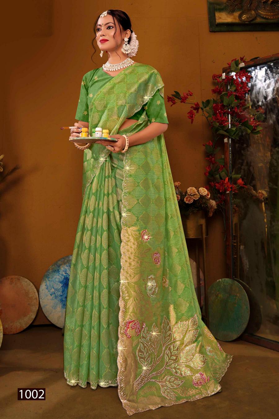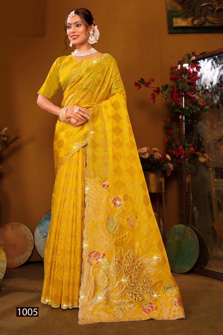 Looking for Ghunghat Jharkan Saroj Vol.1 Silk saree Full Catalouge at Best Price? Buy Now Ghunghat Jharkan Saroj Vol.1 Silk saree at Wholesale Rate of Rs 9630 with Total 6 Pcs from authroized dealer and supplier of Saroj Textiles Brand. Cost of Each piece is just only Rs 1605 which is very low and affordable price to resale the product in your retail store. rrgandhi is Surat based Wholesale Supplier & Dealer of Saroj Textiles Brand. Click on Brand name to Know more about Brand's products.