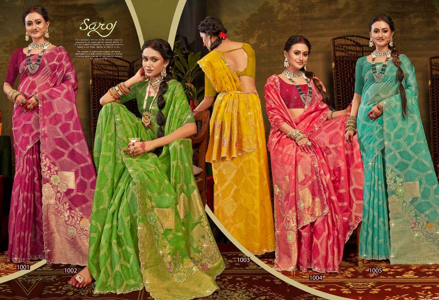 Looking for Ghunghat Jharkan Saroj Vol.3 Silk saree Full Catalouge at Best Price? Buy Now Ghunghat Jharkan Saroj Vol.3 Silk saree at Wholesale Rate of Rs 8025 with Total 5 Pcs from authroized dealer and supplier of Saroj Textiles Brand. Cost of Each piece is just only Rs 1605 which is very low and affordable price to resale the product in your retail store. rrgandhi is Surat based Wholesale Supplier & Dealer of Saroj Textiles Brand. Click on Brand name to Know more about Brand's products.