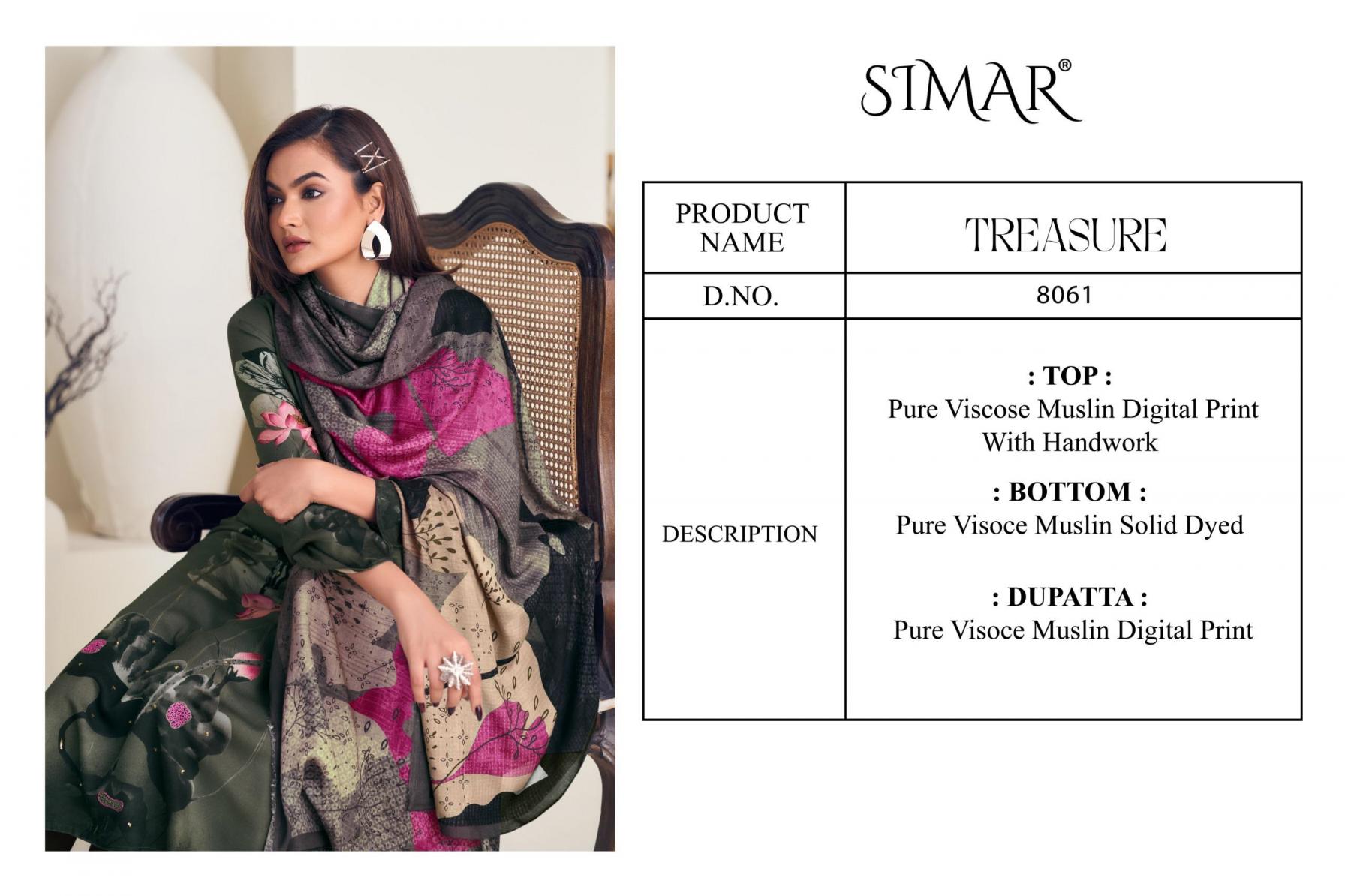 Looking for GLOSSY SIMAR TREASURE VISCOSE MUSLIN PRETTY DRESS MATERIALS Full Catalouge at Best Price? Buy Now GLOSSY SIMAR TREASURE VISCOSE MUSLIN PRETTY DRESS MATERIALS at Wholesale Rate of Rs 5580 with Total 4 Pcs from authroized dealer and supplier of Glossy Brand. Cost of Each piece is just only Rs 1395 which is very low and affordable price to resale the product in your retail store. rrgandhi is Surat based Wholesale Supplier & Dealer of Glossy Brand. Click on Brand name to Know more about Brand's products.