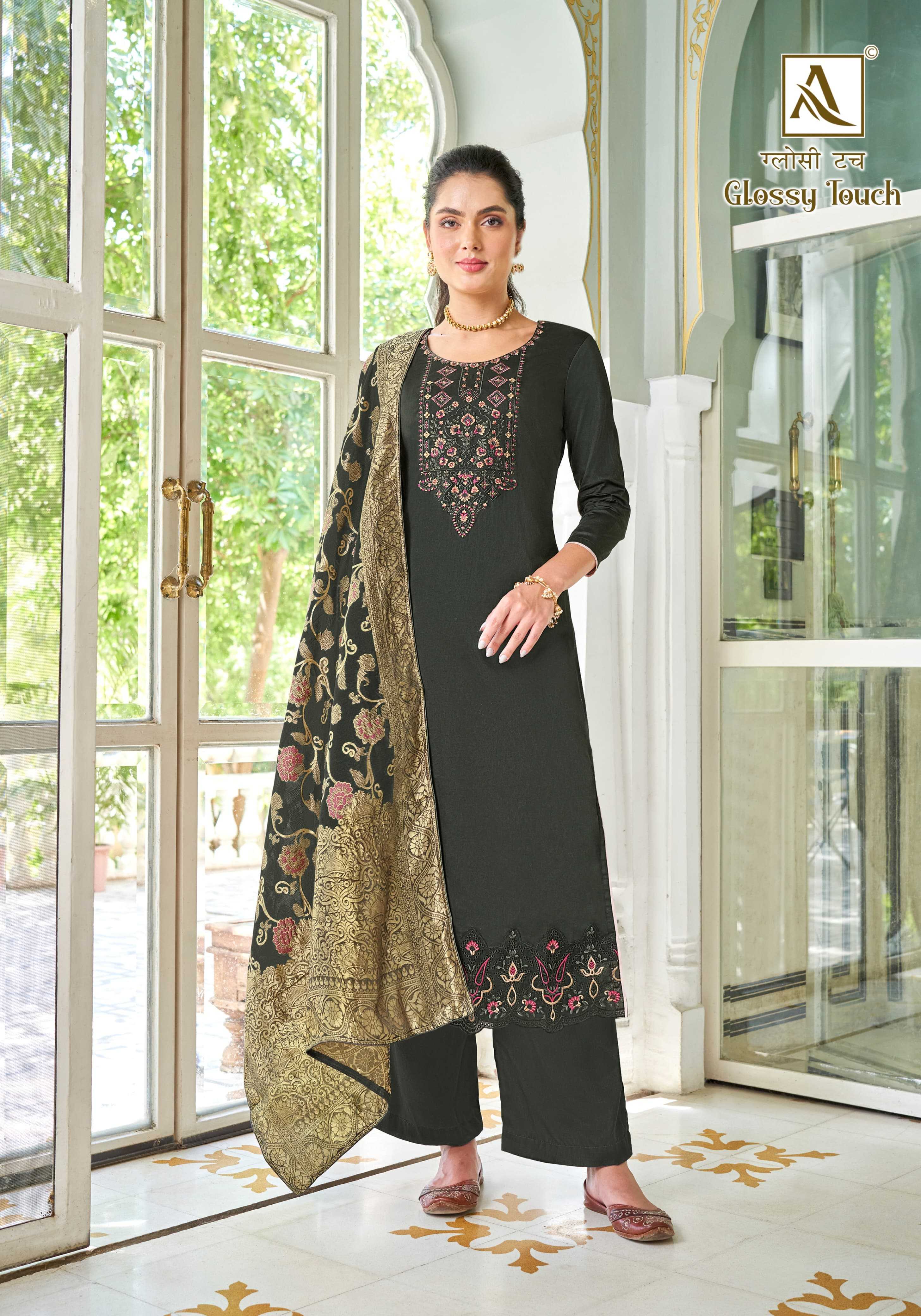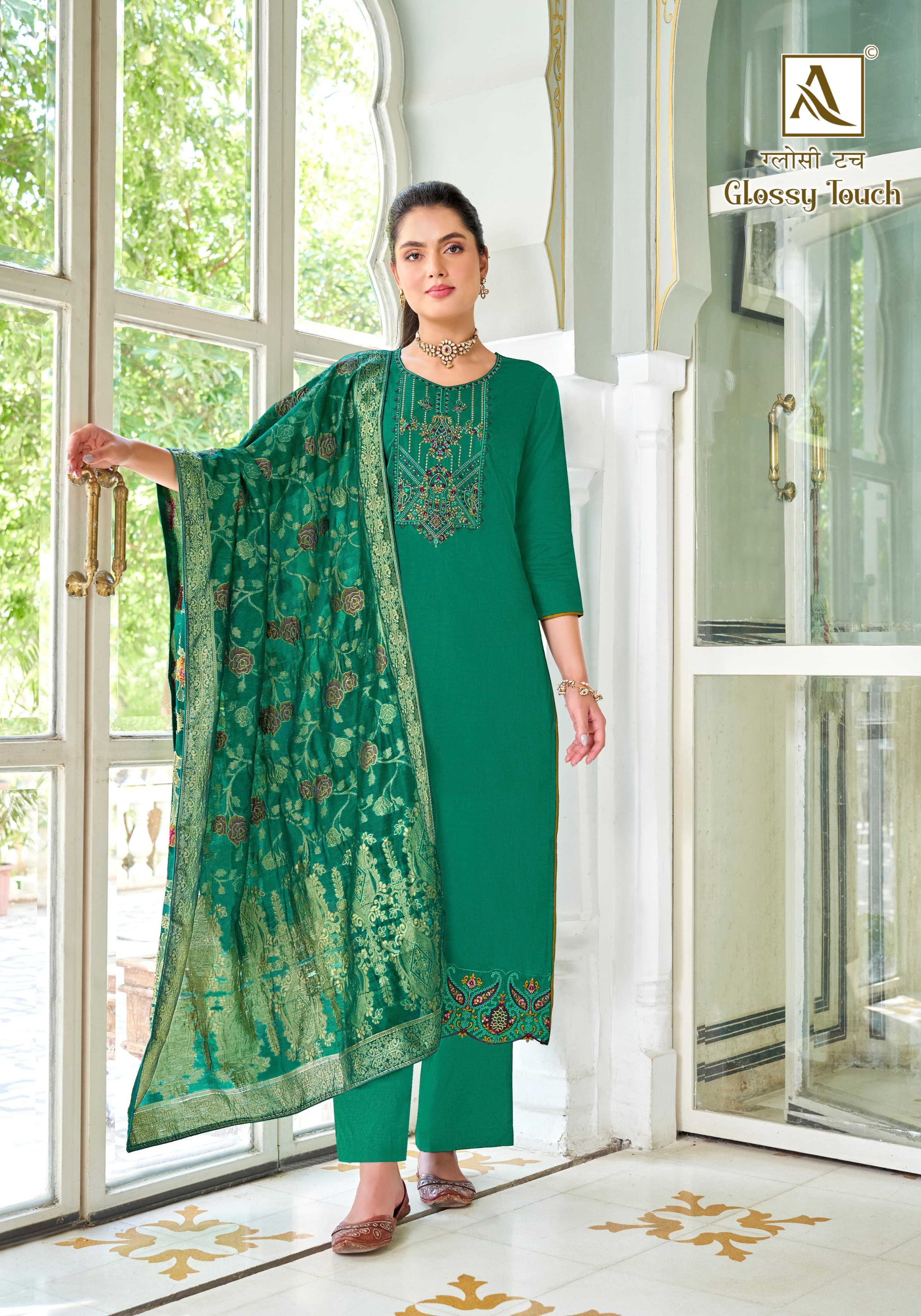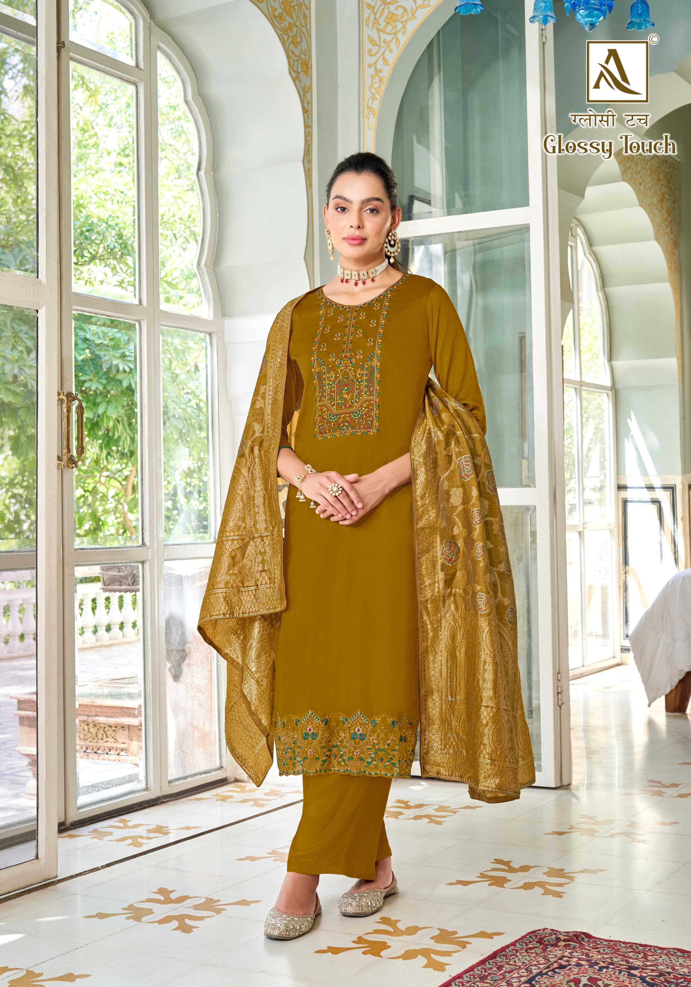 Looking for glossy touch by alok suit ethnic style fancy salwar suit material exports Full Catalouge at Best Price? Buy Now glossy touch by alok suit ethnic style fancy salwar suit material exports at Wholesale Rate of Rs 4375 with Total 5 Pcs from authroized dealer and supplier of Alok Suit Brand. Cost of Each piece is just only Rs 875 which is very low and affordable price to resale the product in your retail store. rrgandhi is Surat based Wholesale Supplier & Dealer of Alok Suit Brand. Click on Brand name to Know more about Brand's products.