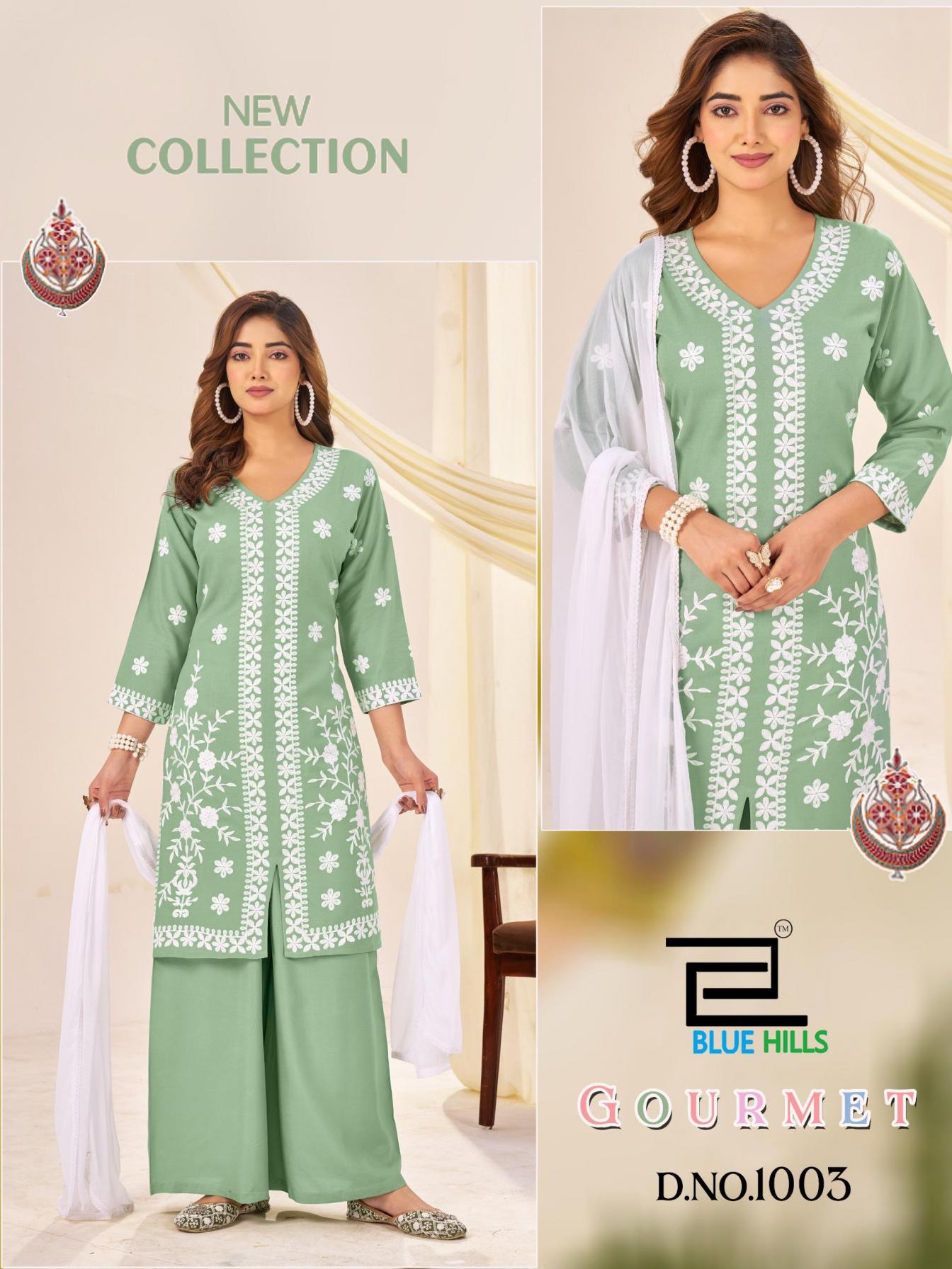 Looking for GOURMET BY BLUE HILLS RAYON STYLISH FULL STITCH BIG SIZE PLAZZO SUITS Full Catalouge at Best Price? Buy Now GOURMET BY BLUE HILLS RAYON STYLISH FULL STITCH BIG SIZE PLAZZO SUITS at Wholesale Rate of Rs 3180 with Total 4 Pcs from authroized dealer and supplier of Blue Hills Brand. Cost of Each piece is just only Rs 795 which is very low and affordable price to resale the product in your retail store. rrgandhi is Surat based Wholesale Supplier & Dealer of Blue Hills Brand. Click on Brand name to Know more about Brand's products.