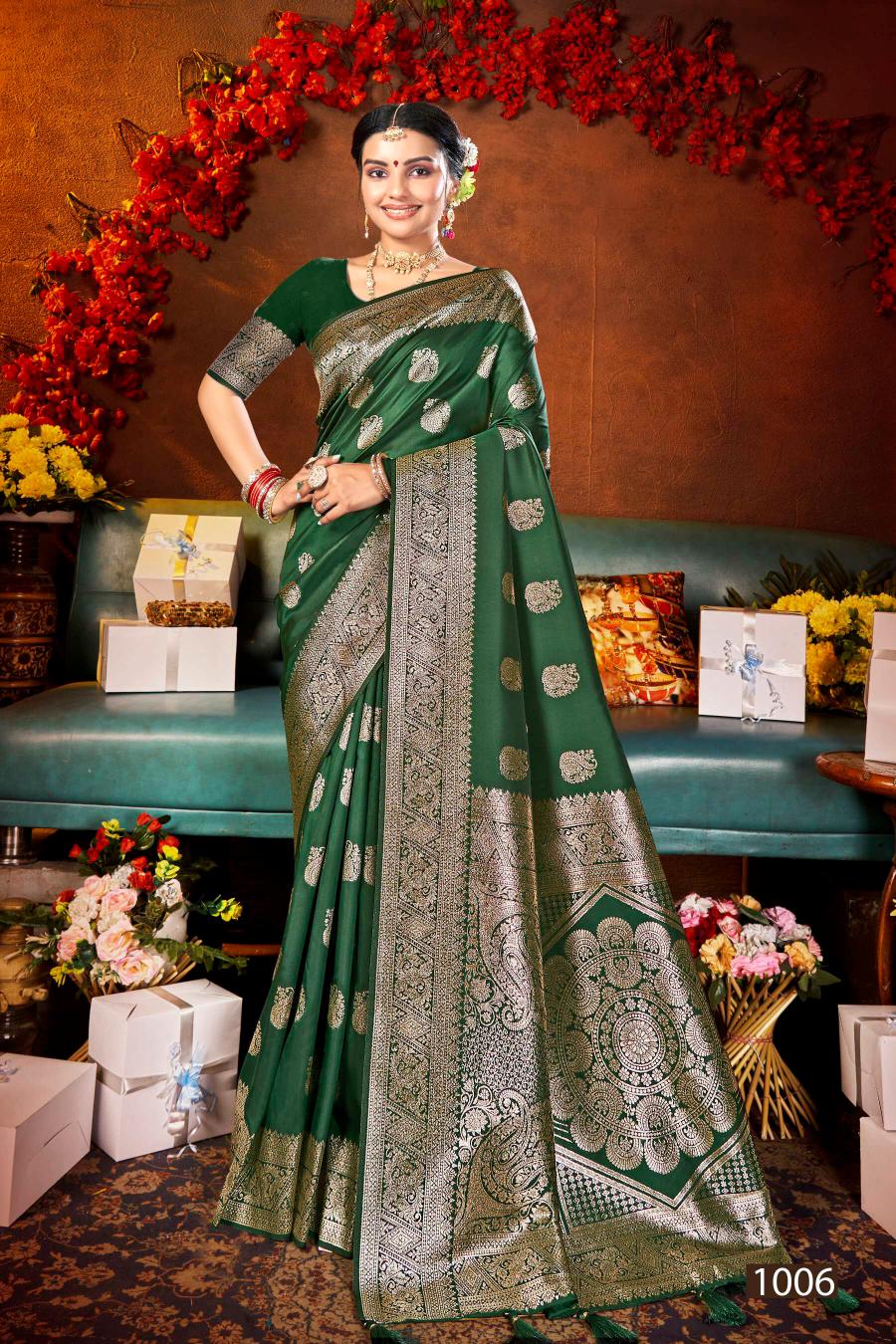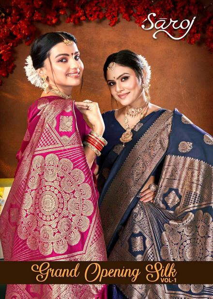Looking for Grand opening silk Saroj vol.1 50*600 silk saree Full Catalouge at Best Price? Buy Now Grand opening silk Saroj vol.1 50*600 silk saree at Wholesale Rate of Rs 4170 with Total 6 Pcs from authroized dealer and supplier of Saroj Textiles Brand. Cost of Each piece is just only Rs 695 which is very low and affordable price to resale the product in your retail store. rrgandhi is Surat based Wholesale Supplier & Dealer of Saroj Textiles Brand. Click on Brand name to Know more about Brand's products.