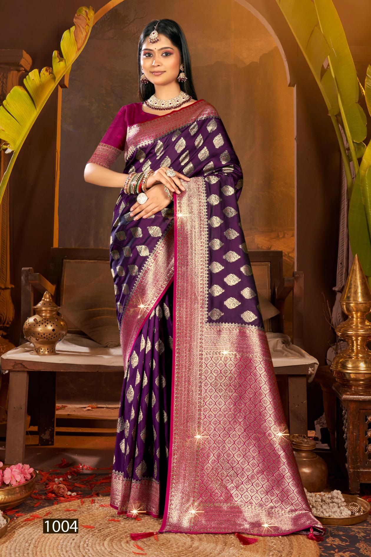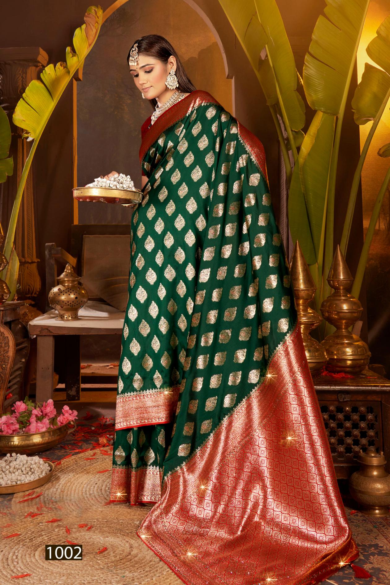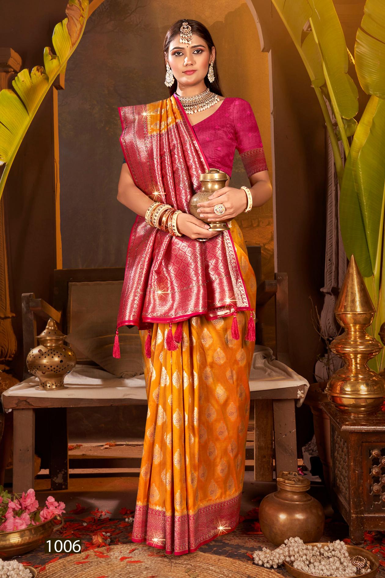 Looking for Gulaab Silk swarovski Saroj vol.6 soft silk saree Full Catalouge at Best Price? Buy Now Gulaab Silk swarovski Saroj vol.6 soft silk saree at Wholesale Rate of Rs 6690 with Total 6 Pcs from authroized dealer and supplier of Saroj Textiles Brand. Cost of Each piece is just only Rs 1115 which is very low and affordable price to resale the product in your retail store. rrgandhi is Surat based Wholesale Supplier & Dealer of Saroj Textiles Brand. Click on Brand name to Know more about Brand's products.