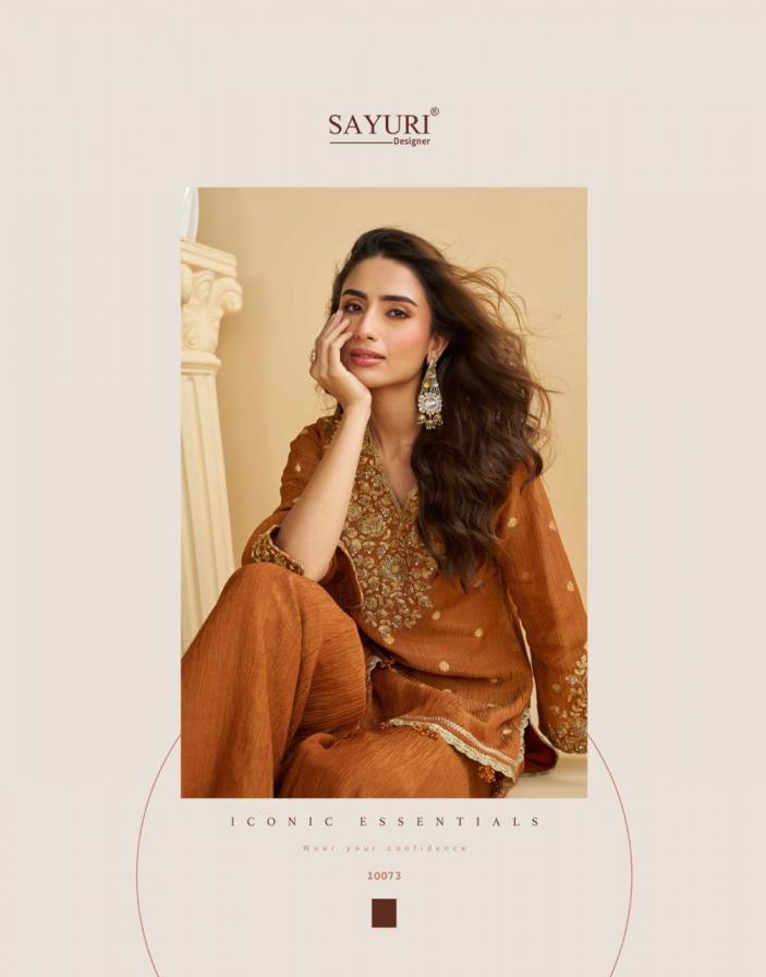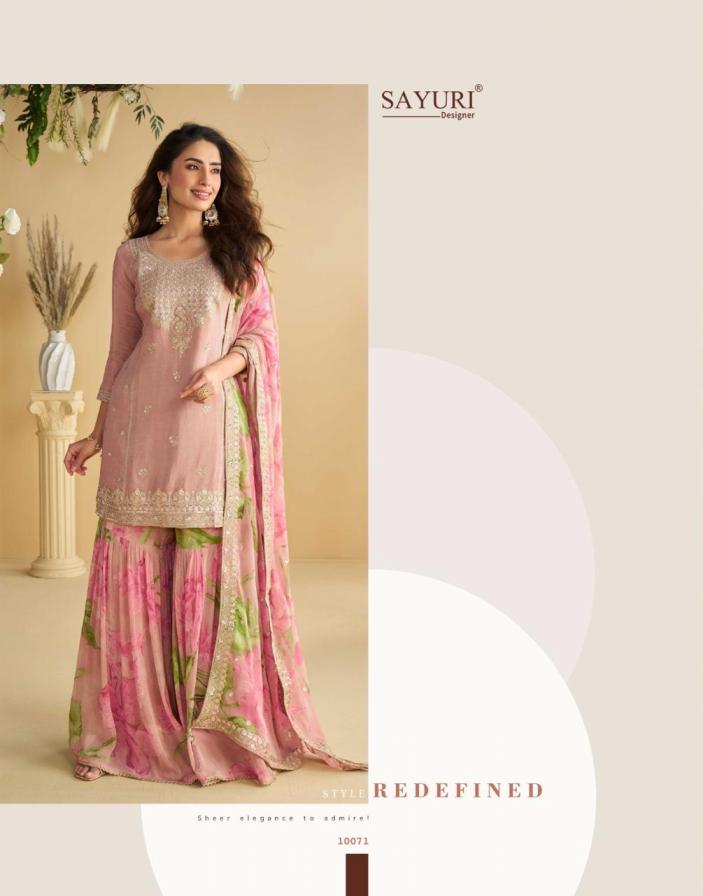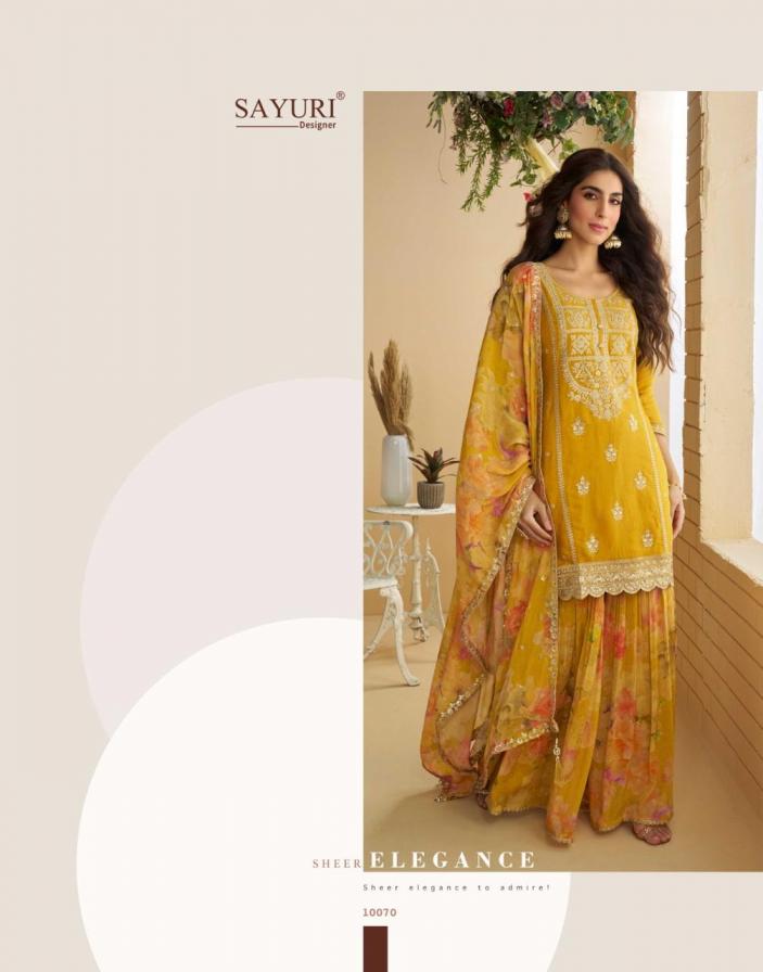 Looking for GULABO BY SAYURI DESIGNER CHINON SILK READYMADE PLAZZO KURTI WITH DUPATTA Full Catalouge at Best Price? Buy Now GULABO BY SAYURI DESIGNER CHINON SILK READYMADE PLAZZO KURTI WITH DUPATTA at Wholesale Rate of Rs 11495 with Total 5 Pcs from authroized dealer and supplier of Sayuri Designer Brand. Cost of Each piece is just only Rs 2299 which is very low and affordable price to resale the product in your retail store. rrgandhi is Surat based Wholesale Supplier & Dealer of Sayuri Designer Brand. Click on Brand name to Know more about Brand's products.