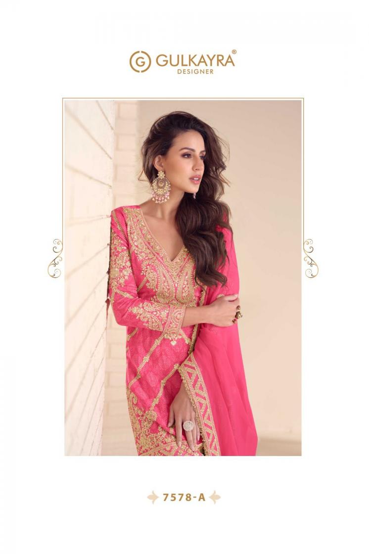 Looking for GULKAYRA DESIGNER RANGOLI PARTY WEAR CHINON FULL STITCH PLAZZO DRESS Full Catalouge at Best Price? Buy Now GULKAYRA DESIGNER RANGOLI PARTY WEAR CHINON FULL STITCH PLAZZO DRESS at Wholesale Rate of Rs 8685 with Total 3 Pcs from authroized dealer and supplier of Gulkayra Designer Brand. Cost of Each piece is just only Rs 2895 which is very low and affordable price to resale the product in your retail store. rrgandhi is Surat based Wholesale Supplier & Dealer of Gulkayra Designer Brand. Click on Brand name to Know more about Brand's products.