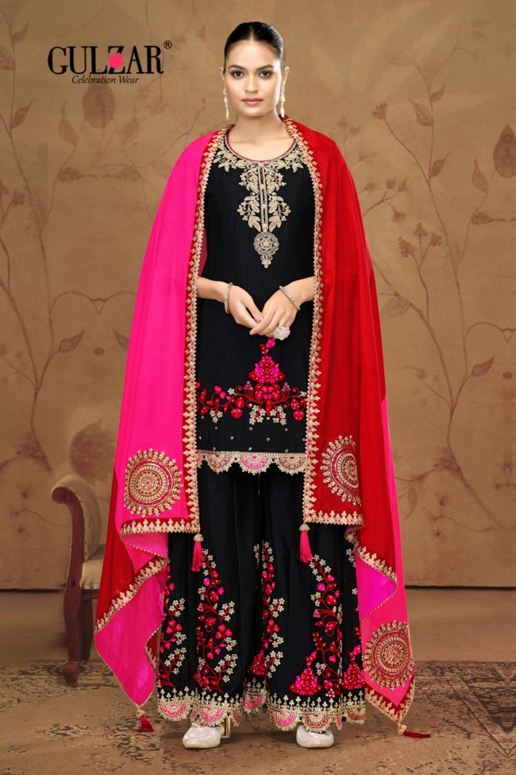 Looking for GULZAR HAZARIPHOOL 2141-2142 CHINON DESIGNER FULL STITCH SHARARA SUITS Full Catalouge at Best Price? Buy Now GULZAR HAZARIPHOOL 2141-2142 CHINON DESIGNER FULL STITCH SHARARA SUITS at Wholesale Rate of Rs 10780 with Total 4 Pcs from authroized dealer and supplier of Gulzar Brand. Cost of Each piece is just only Rs 2695 which is very low and affordable price to resale the product in your retail store. rrgandhi is Surat based Wholesale Supplier & Dealer of Gulzar Brand. Click on Brand name to Know more about Brand's products.