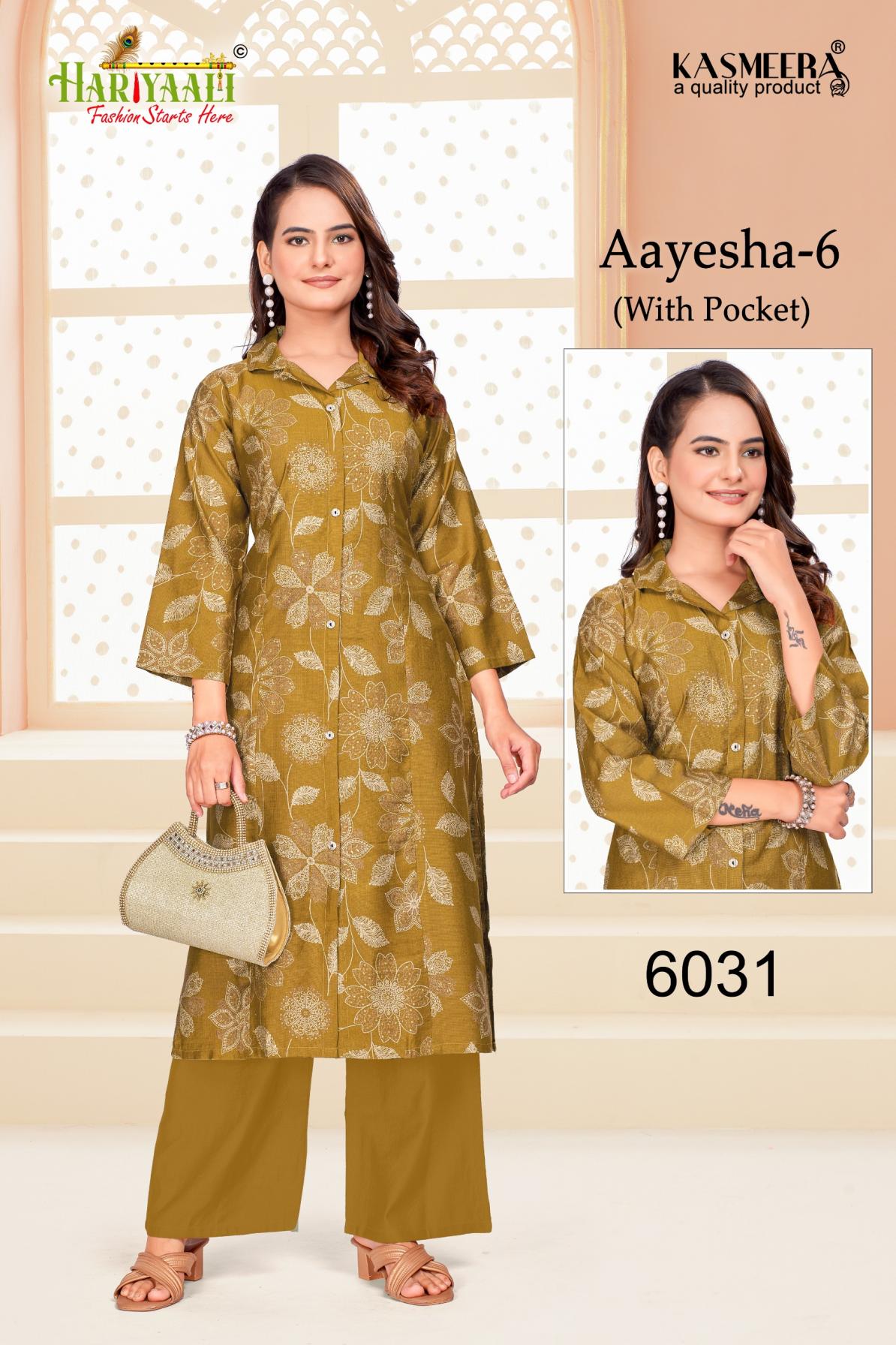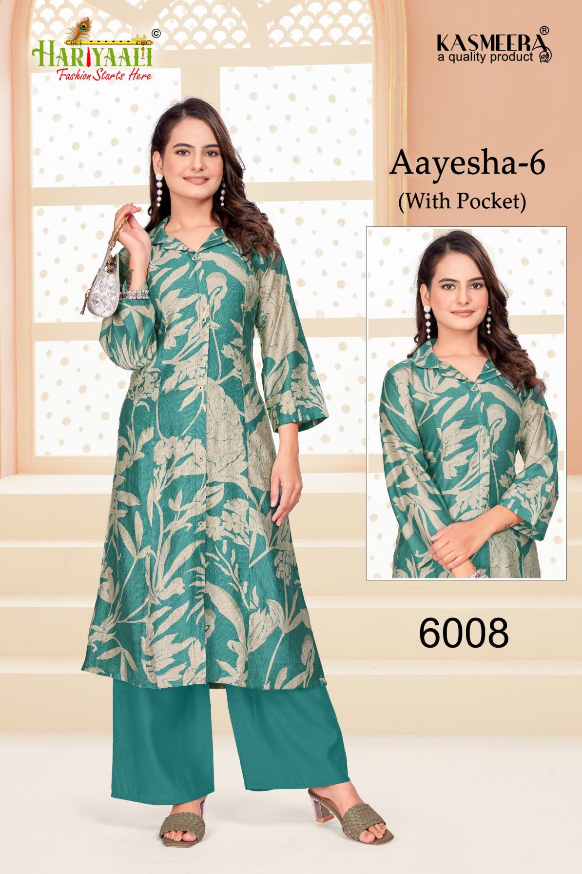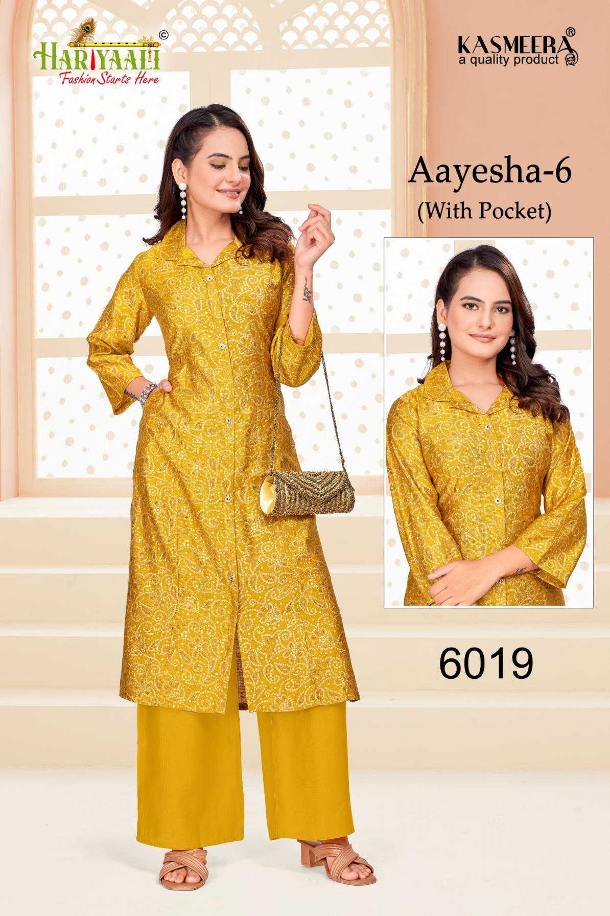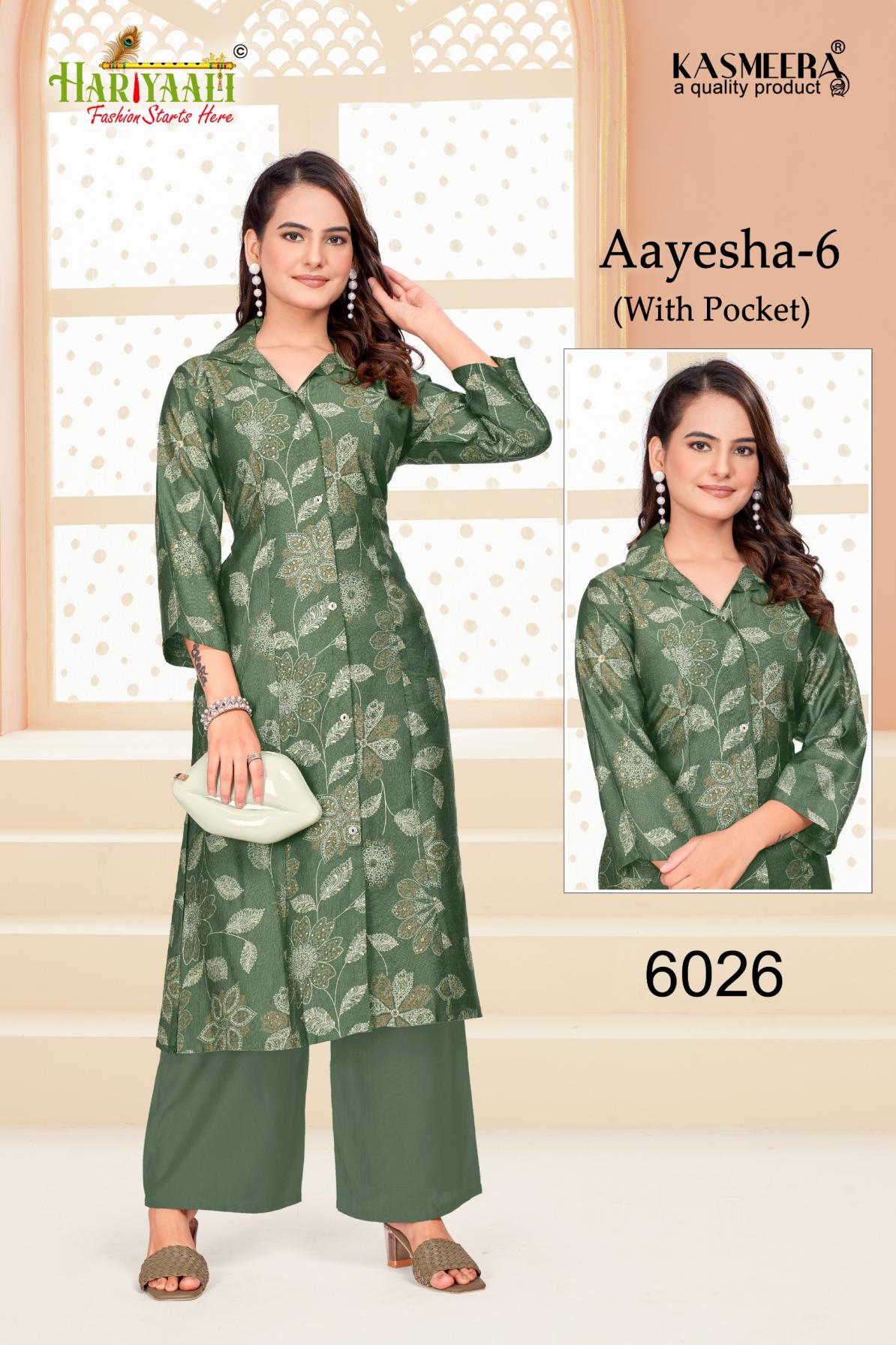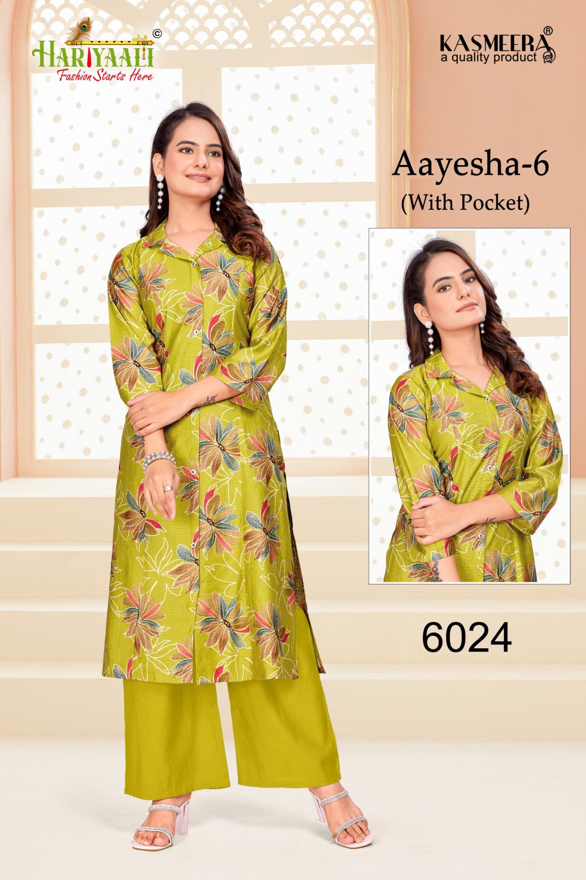 Looking for HARIYAALI AAYESHA VOL 6 READYMADE VERTICAN SILK COMBO CO-ORD FOR GIRLS Full Catalouge at Best Price? Buy Now HARIYAALI AAYESHA VOL 6 READYMADE VERTICAN SILK COMBO CO-ORD FOR GIRLS at Wholesale Rate of Rs 55680 with Total 96 Pcs from authroized dealer and supplier of Hariyaali Brand. Cost of Each piece is just only Rs 580 which is very low and affordable price to resale the product in your retail store. rrgandhi is Surat based Wholesale Supplier & Dealer of Hariyaali Brand. Click on Brand name to Know more about Brand's products.