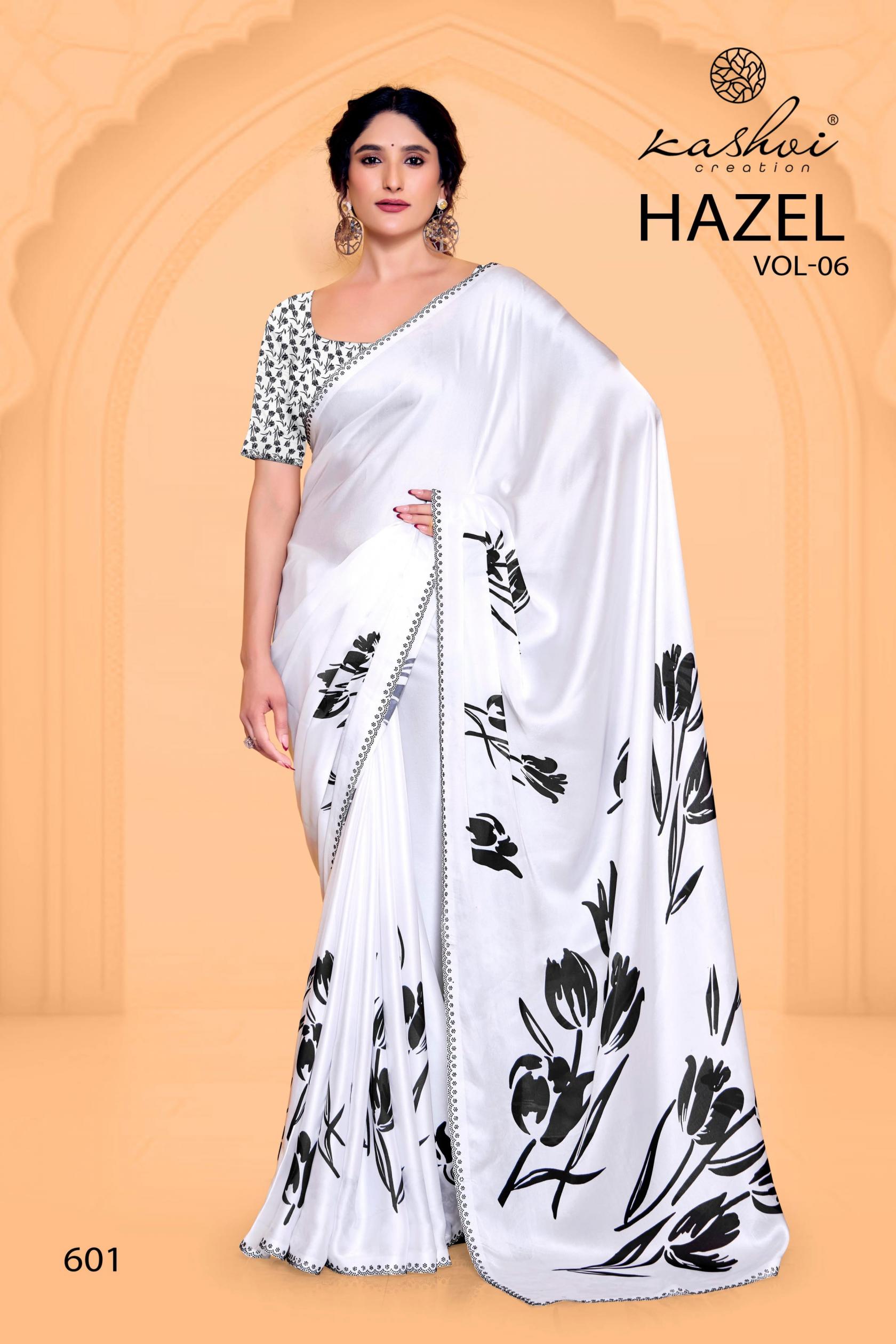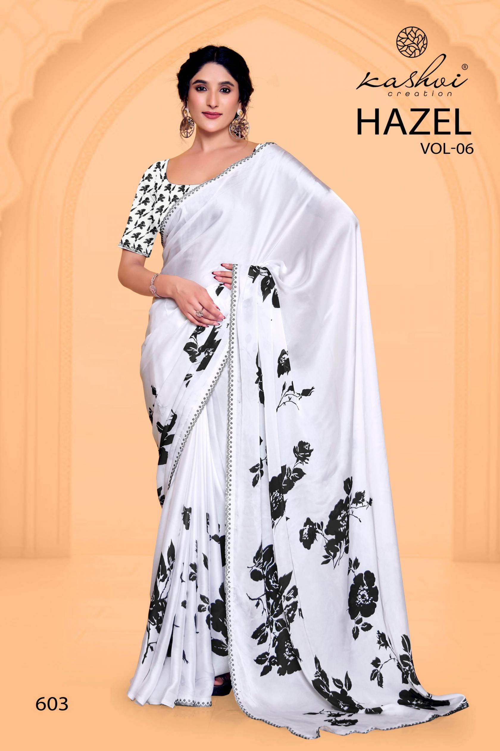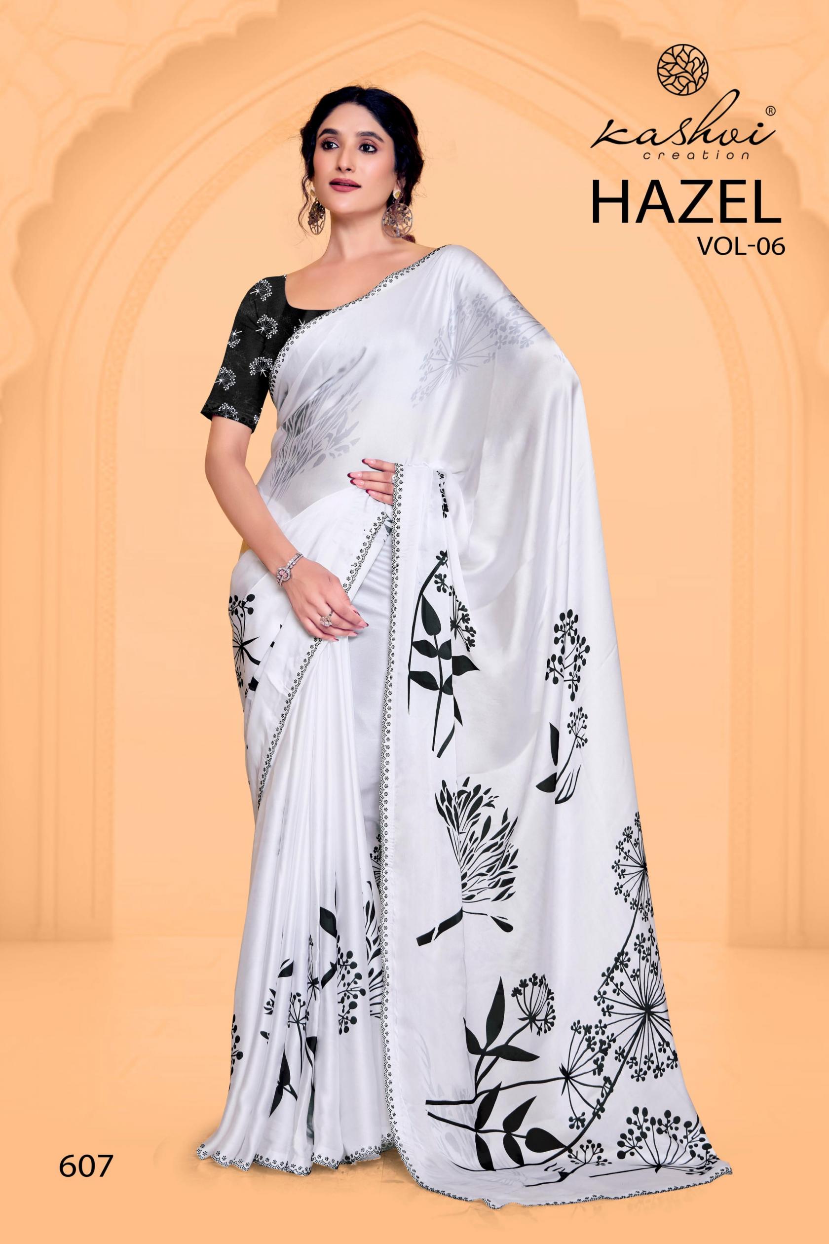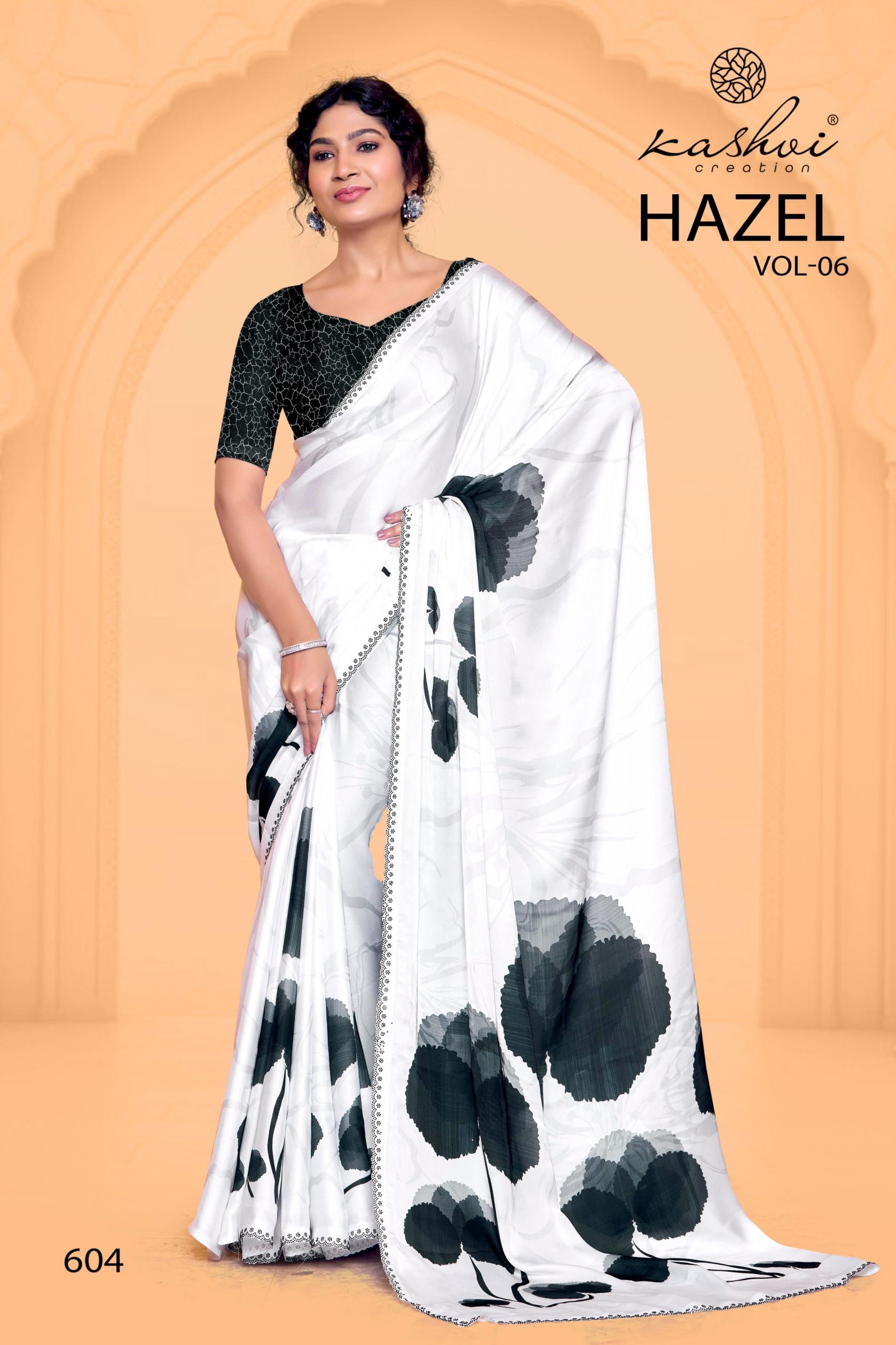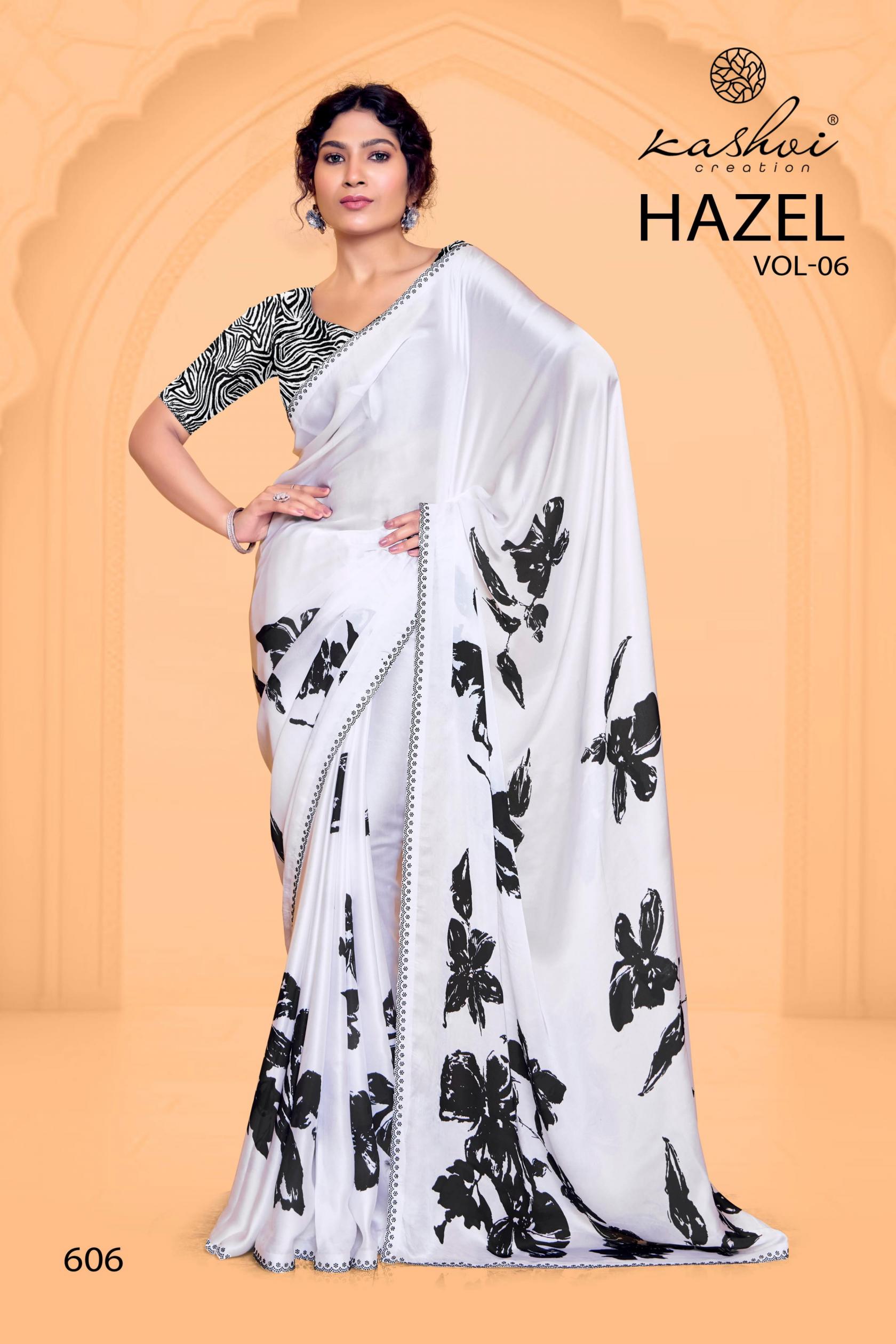Looking for HAZEL VOL 6 BY KASHVI CREATION SATIN GEORGETTE PRETTY SAREE ONLINE Full Catalouge at Best Price? Buy Now HAZEL VOL 6 BY KASHVI CREATION SATIN GEORGETTE PRETTY SAREE ONLINE at Wholesale Rate of Rs 7960 with Total 8 Pcs from authroized dealer and supplier of Kashvi Creation Brand. Cost of Each piece is just only Rs 995 which is very low and affordable price to resale the product in your retail store. rrgandhi is Surat based Wholesale Supplier & Dealer of Kashvi Creation Brand. Click on Brand name to Know more about Brand's products.