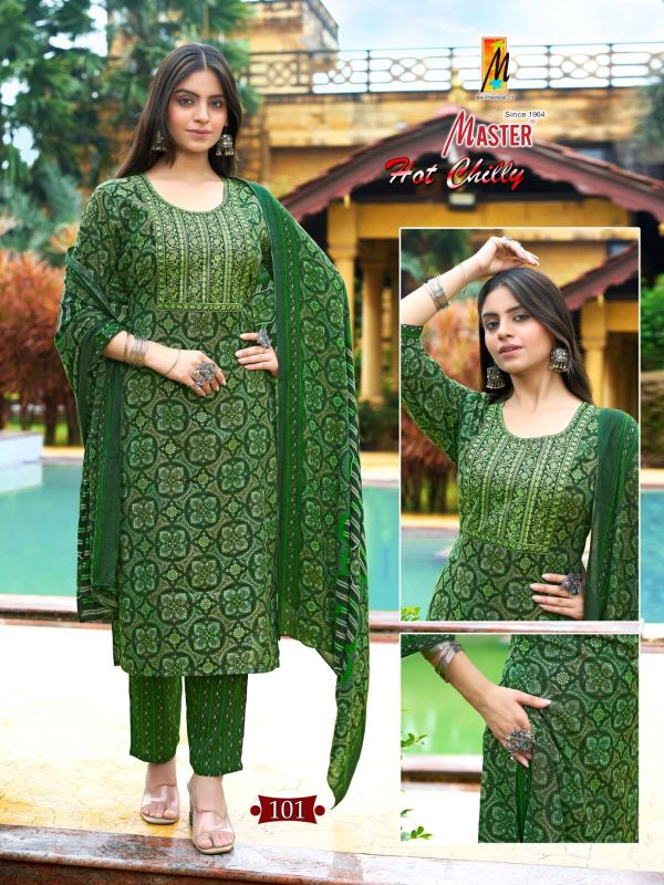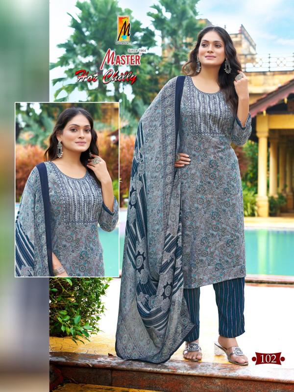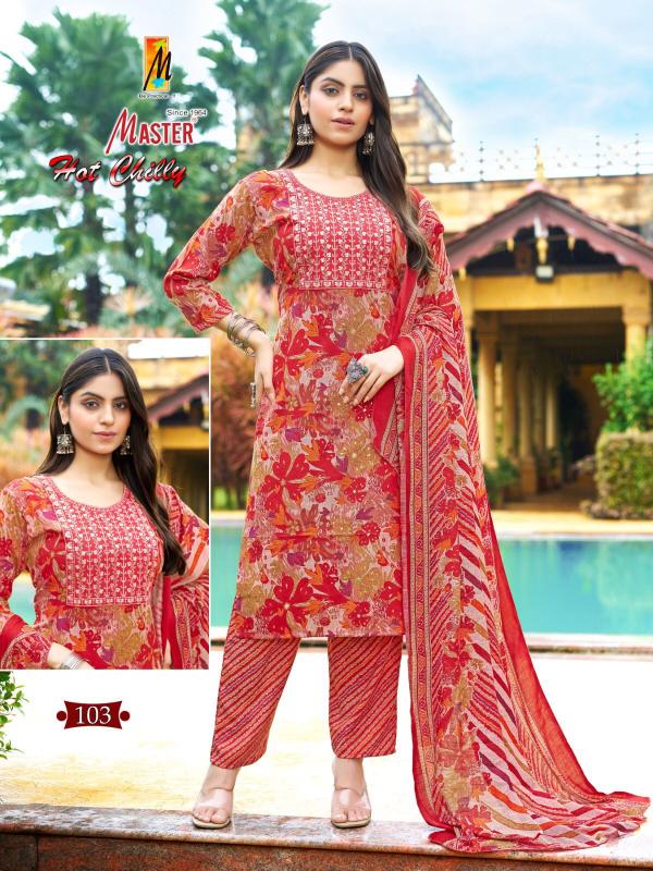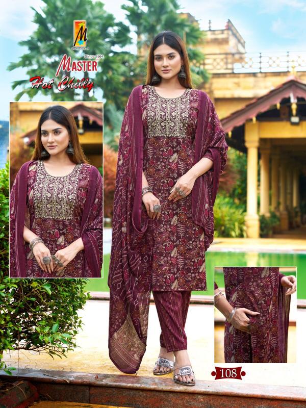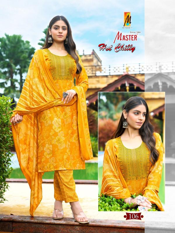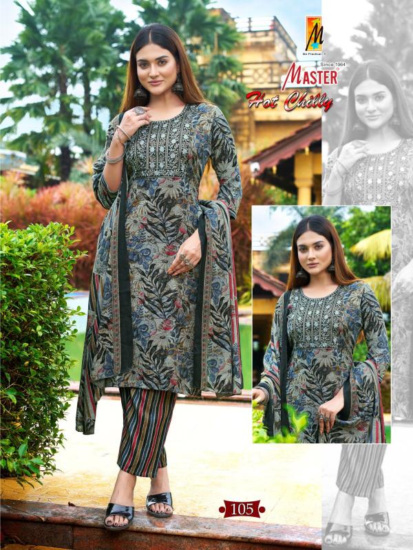Looking for hot chilly by master new trendy capsule print fully stitch ladies suit Full Catalouge at Best Price? Buy Now hot chilly by master new trendy capsule print fully stitch ladies suit at Wholesale Rate of Rs 4520 with Total 8 Pcs from authroized dealer and supplier of Master Kurti Brand. Cost of Each piece is just only Rs 565 which is very low and affordable price to resale the product in your retail store. rrgandhi is Surat based Wholesale Supplier & Dealer of Master Kurti Brand. Click on Brand name to Know more about Brand's products.