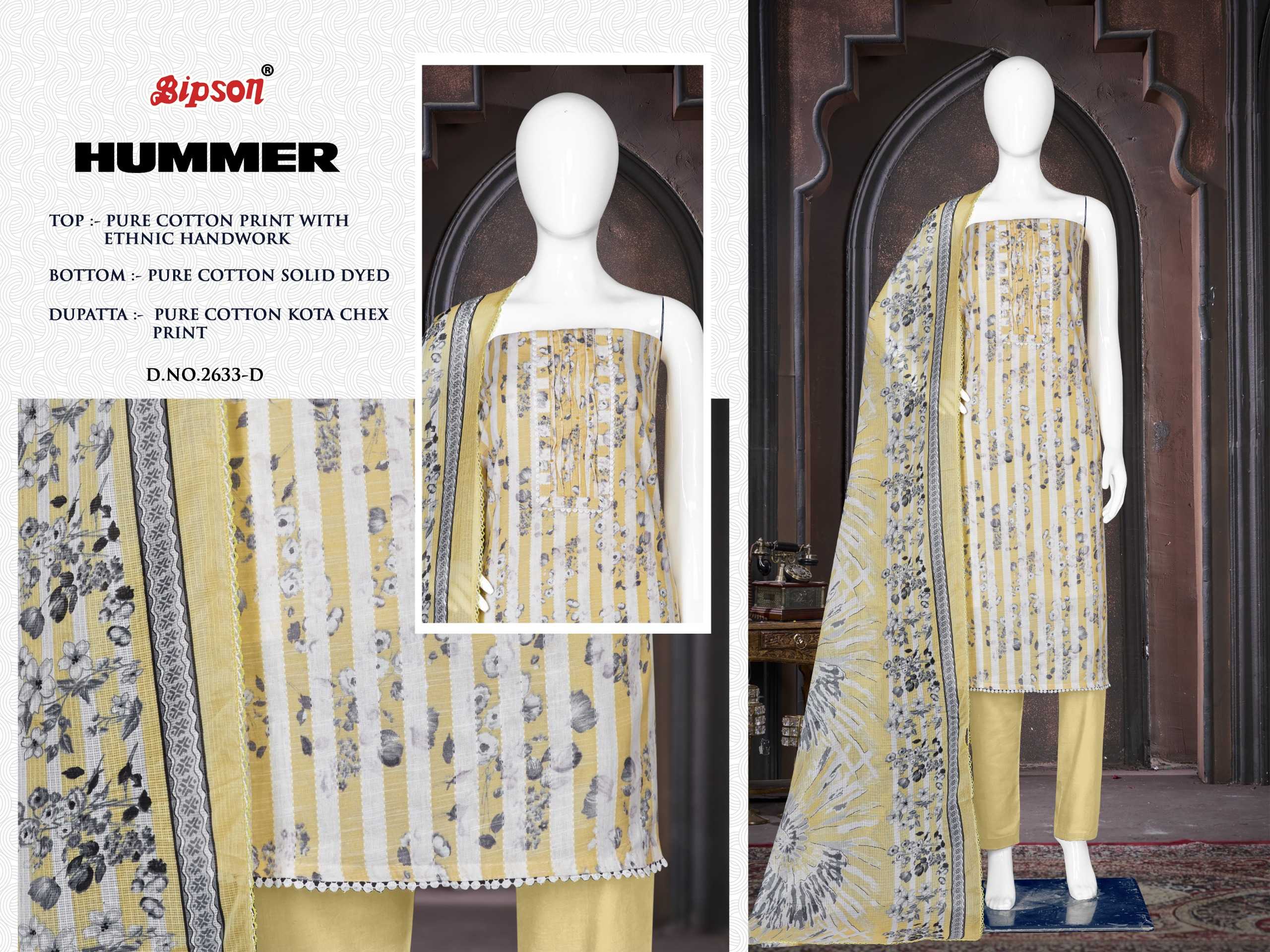 Looking for hummer 2633 by bipson fancy daily use cotton salwar suit dress material Full Catalouge at Best Price? Buy Now hummer 2633 by bipson fancy daily use cotton salwar suit dress material at Wholesale Rate of Rs 2220 with Total 4 Pcs from authroized dealer and supplier of Bipson Fashion Brand. Cost of Each piece is just only Rs 555 which is very low and affordable price to resale the product in your retail store. rrgandhi is Surat based Wholesale Supplier & Dealer of Bipson Fashion Brand. Click on Brand name to Know more about Brand's products.