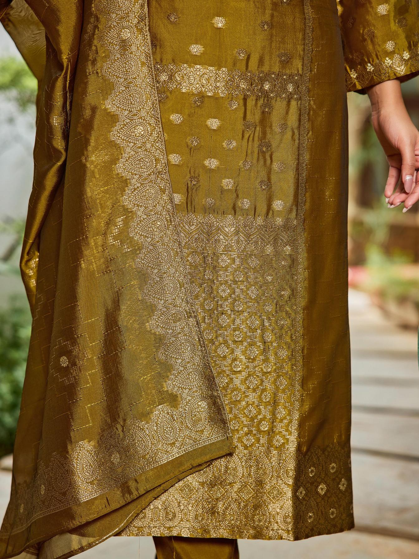 Looking for IBIZA AADI ANANTA BANGLORY SILK JACQUARD ELEGANCE DRESS MATERILAS Full Catalouge at Best Price? Buy Now IBIZA AADI ANANTA BANGLORY SILK JACQUARD ELEGANCE DRESS MATERILAS at Wholesale Rate of Rs 7580 with Total 4 Pcs from authroized dealer and supplier of Ibiza Suit Brand. Cost of Each piece is just only Rs 1895 which is very low and affordable price to resale the product in your retail store. rrgandhi is Surat based Wholesale Supplier & Dealer of Ibiza Suit Brand. Click on Brand name to Know more about Brand's products.