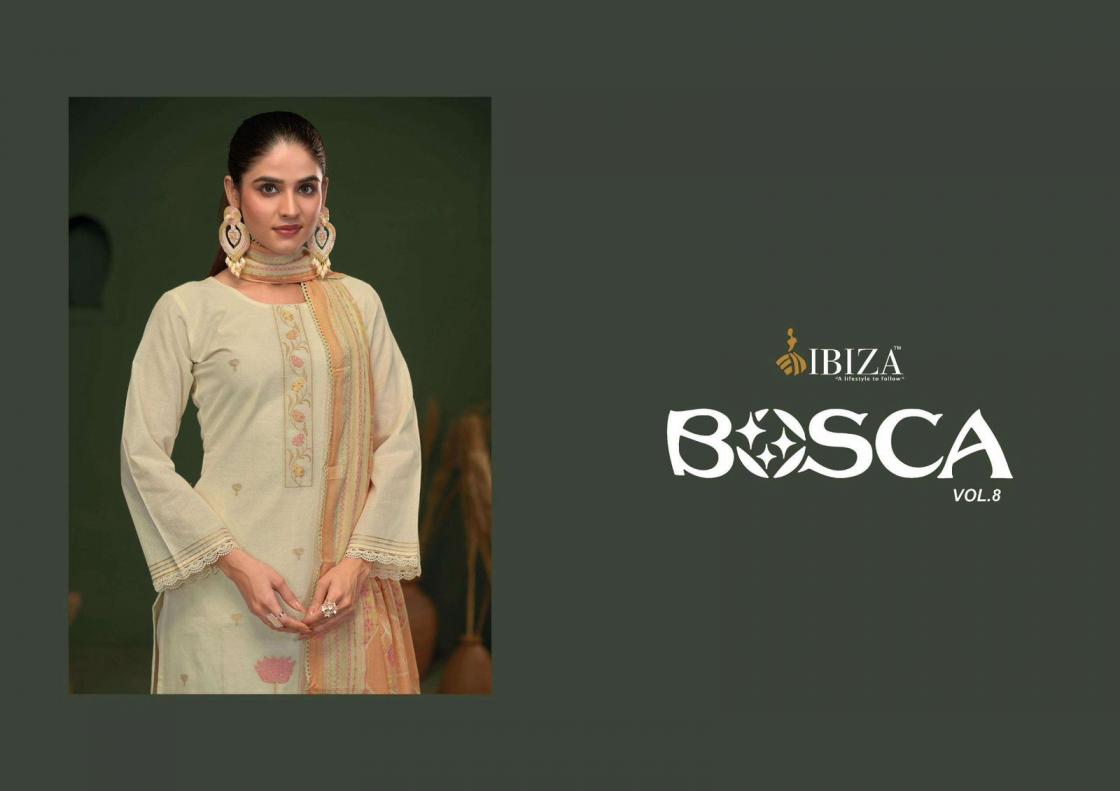 Looking for IBIZA BOSCA VOL 8 LAWN COTTON JACQUARD UNIQUE UNSTITCH 3PCS DRESS Full Catalouge at Best Price? Buy Now IBIZA BOSCA VOL 8 LAWN COTTON JACQUARD UNIQUE UNSTITCH 3PCS DRESS at Wholesale Rate of Rs 5985 with Total 3 Pcs from authroized dealer and supplier of Ibiza Suit Brand. Cost of Each piece is just only Rs 1995 which is very low and affordable price to resale the product in your retail store. rrgandhi is Surat based Wholesale Supplier & Dealer of Ibiza Suit Brand. Click on Brand name to Know more about Brand's products.