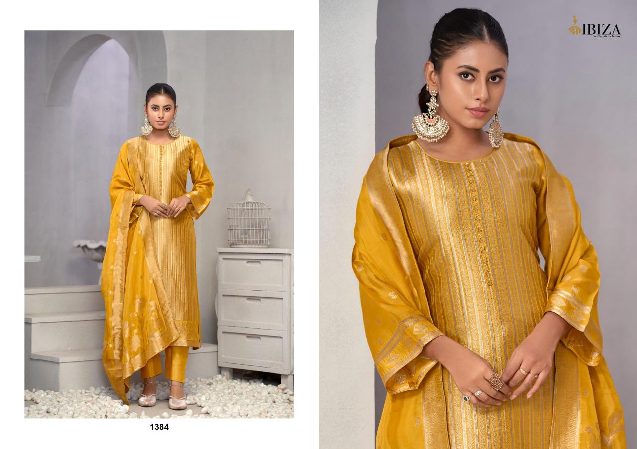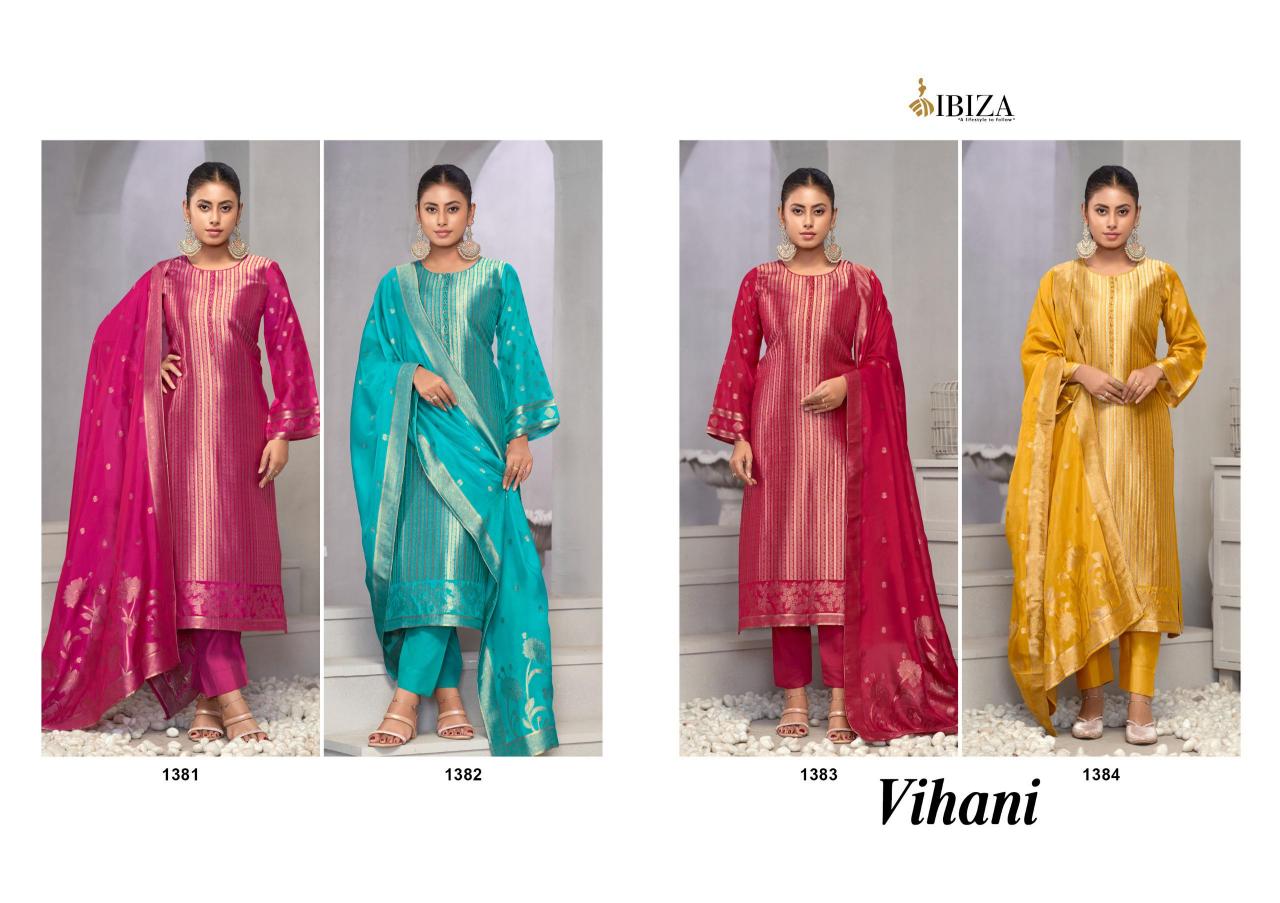 Looking for ibiza lifestyle vihani banglory silk jacquard party wear unstitch suits Full Catalouge at Best Price? Buy Now ibiza lifestyle vihani banglory silk jacquard party wear unstitch suits at Wholesale Rate of Rs 7580 with Total 4 Pcs from authroized dealer and supplier of Ibiza Suit Brand. Cost of Each piece is just only Rs 1895 which is very low and affordable price to resale the product in your retail store. rrgandhi is Surat based Wholesale Supplier & Dealer of Ibiza Suit Brand. Click on Brand name to Know more about Brand's products.