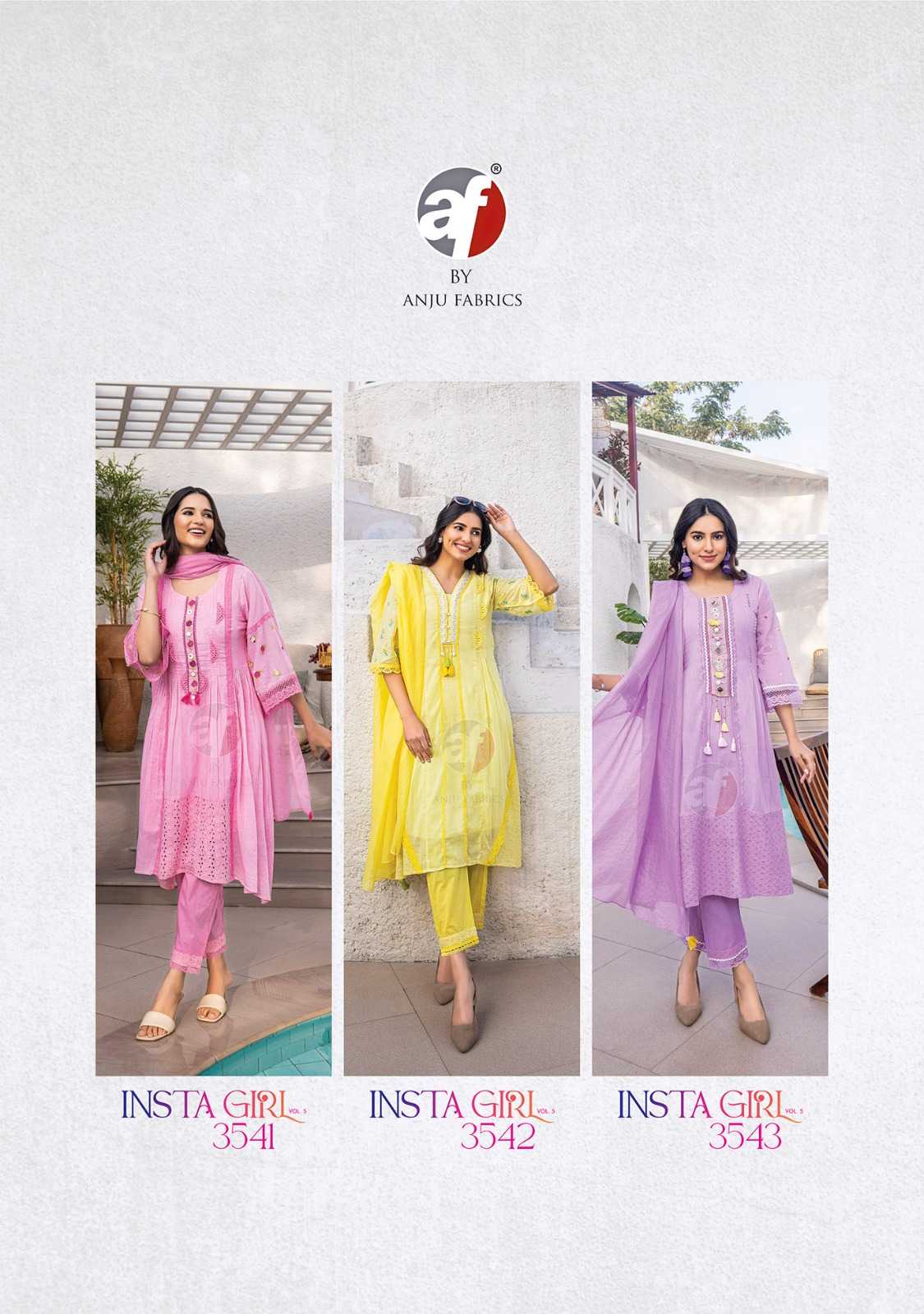 Looking for insta girl vol 5 by anju fab occasion readymade salwar suit Full Catalouge at Best Price? Buy Now insta girl vol 5 by anju fab occasion readymade salwar suit at Wholesale Rate of Rs 7350 with Total 5 Pcs from authroized dealer and supplier of A F Kurti Brand. Cost of Each piece is just only Rs 1470 which is very low and affordable price to resale the product in your retail store. rrgandhi is Surat based Wholesale Supplier & Dealer of A F Kurti Brand. Click on Brand name to Know more about Brand's products.