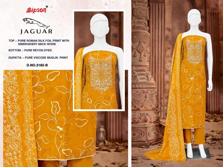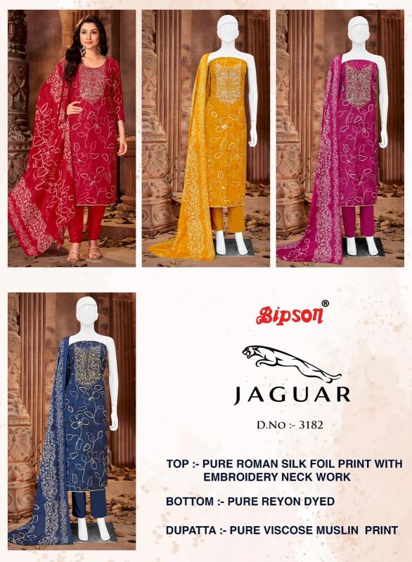 Looking for jaguar 3182 by bipson prints roman silk fashionable suit online Full Catalouge at Best Price? Buy Now jaguar 3182 by bipson prints roman silk fashionable suit online at Wholesale Rate of Rs 3180 with Total 4 Pcs from authroized dealer and supplier of Bipson Fashion Brand. Cost of Each piece is just only Rs 795 which is very low and affordable price to resale the product in your retail store. rrgandhi is Surat based Wholesale Supplier & Dealer of Bipson Fashion Brand. Click on Brand name to Know more about Brand's products.
