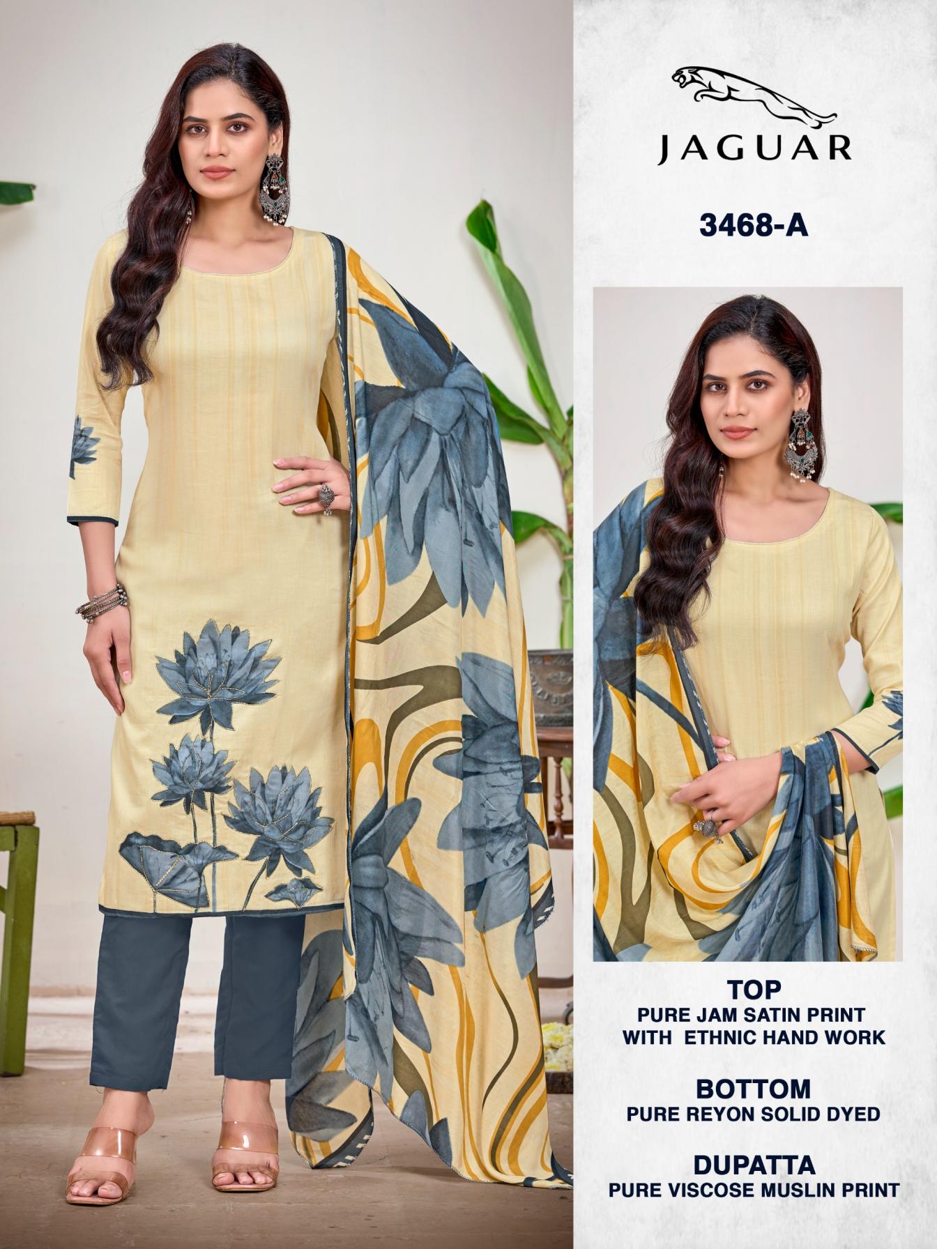 Looking for JAGUAR 3468 BY BIPSON PRINT PVT PLT UNSTITCH 3PCS DRESS Full Catalouge at Best Price? Buy Now JAGUAR 3468 BY BIPSON PRINT PVT PLT UNSTITCH 3PCS DRESS at Wholesale Rate of Rs 3244 with Total 4 Pcs from authroized dealer and supplier of Bipson Fashion Brand. Cost of Each piece is just only Rs 811 which is very low and affordable price to resale the product in your retail store. rrgandhi is Surat based Wholesale Supplier & Dealer of Bipson Fashion Brand. Click on Brand name to Know more about Brand's products.