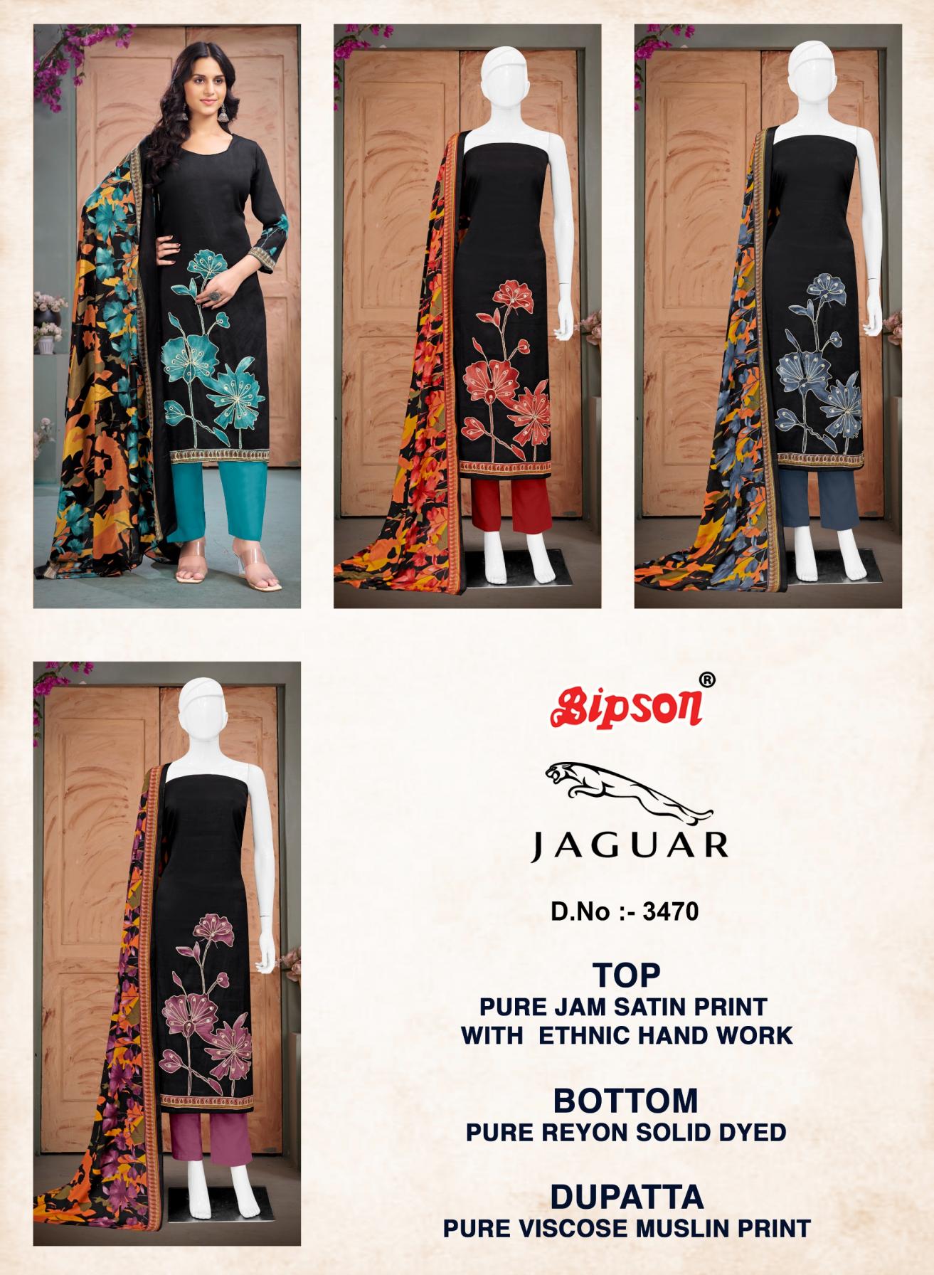 Looking for JAGUAR 3470 BY BIPSON PRINT PVT PLT UNSTITCH 3PCS DRESS Full Catalouge at Best Price? Buy Now JAGUAR 3470 BY BIPSON PRINT PVT PLT UNSTITCH 3PCS DRESS at Wholesale Rate of Rs 3244 with Total 4 Pcs from authroized dealer and supplier of Bipson Fashion Brand. Cost of Each piece is just only Rs 811 which is very low and affordable price to resale the product in your retail store. rrgandhi is Surat based Wholesale Supplier & Dealer of Bipson Fashion Brand. Click on Brand name to Know more about Brand's products.