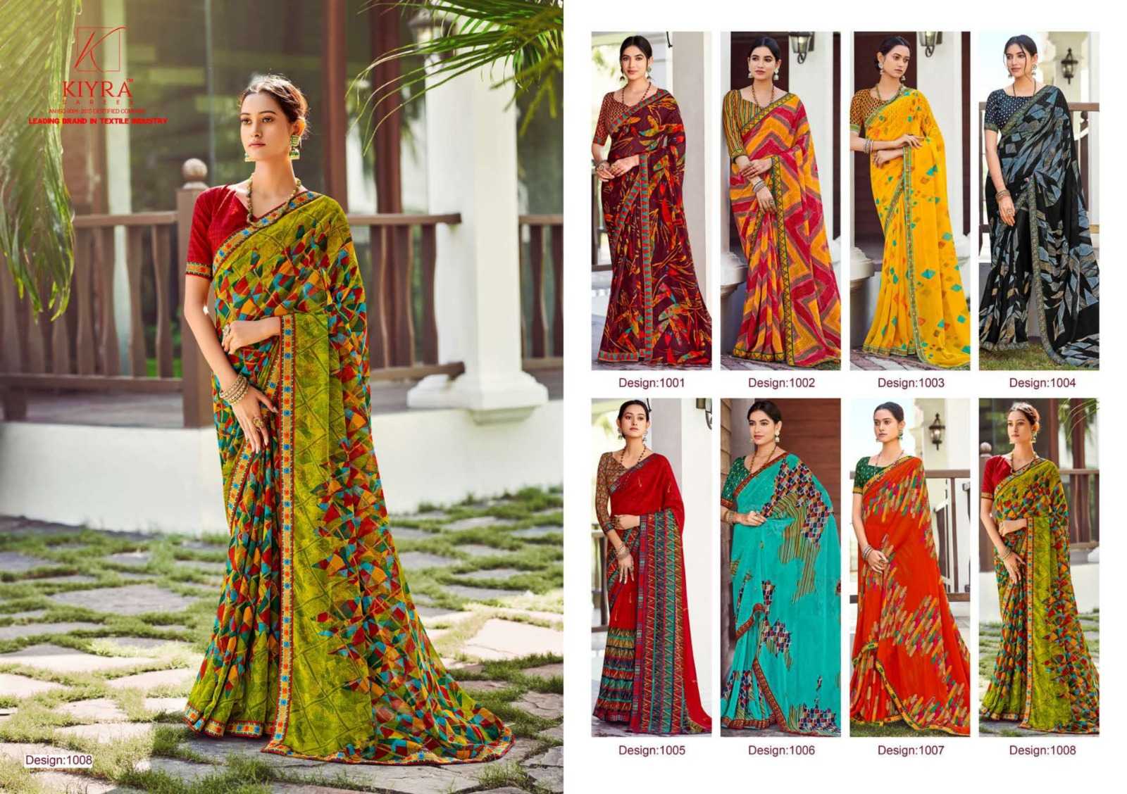 Looking for janvi by kiyra saree colourful fancy printed georgette saree with blouse Full Catalouge at Best Price? Buy Now janvi by kiyra saree colourful fancy printed georgette saree with blouse at Wholesale Rate of Rs 3480 with Total 8 Pcs from authroized dealer and supplier of Brand. Cost of Each piece is just only Rs 435 which is very low and affordable price to resale the product in your retail store. rrgandhi is Surat based Wholesale Supplier & Dealer of Brand. Click on Brand name to Know more about Brand's products.