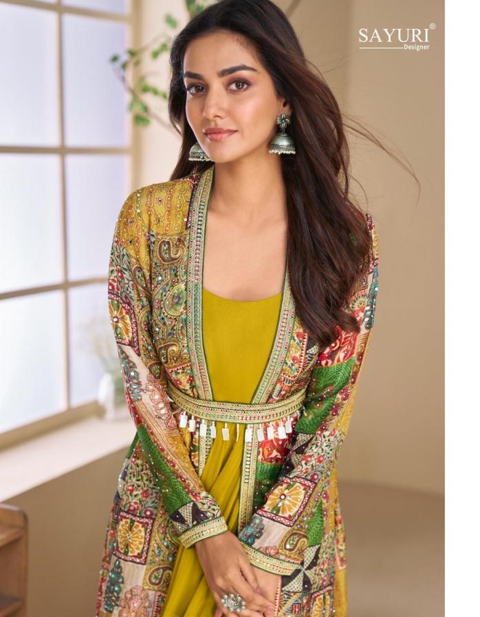 Looking for JANVI BY SAYURI DESIGNER GEORGETTE FULL STITCH GOWN JACKETS WITH BELTS Full Catalouge at Best Price? Buy Now JANVI BY SAYURI DESIGNER GEORGETTE FULL STITCH GOWN JACKETS WITH BELTS at Wholesale Rate of Rs 5997 with Total 3 Pcs from authroized dealer and supplier of Sayuri Designer Brand. Cost of Each piece is just only Rs 1999 which is very low and affordable price to resale the product in your retail store. rrgandhi is Surat based Wholesale Supplier & Dealer of Sayuri Designer Brand. Click on Brand name to Know more about Brand's products.