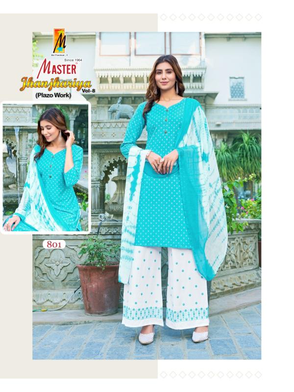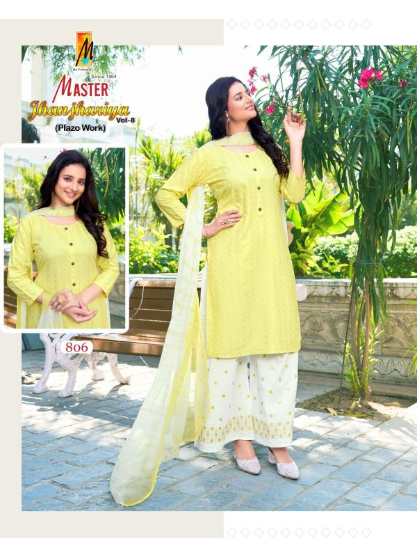 Looking for jhanjhariya vol 8 master by readymade big size 3pcs suit with plazzo Full Catalouge at Best Price? Buy Now jhanjhariya vol 8 master by readymade big size 3pcs suit with plazzo at Wholesale Rate of Rs 5000 with Total 8 Pcs from authroized dealer and supplier of Master Kurti Brand. Cost of Each piece is just only Rs 625 which is very low and affordable price to resale the product in your retail store. rrgandhi is Surat based Wholesale Supplier & Dealer of Master Kurti Brand. Click on Brand name to Know more about Brand's products.