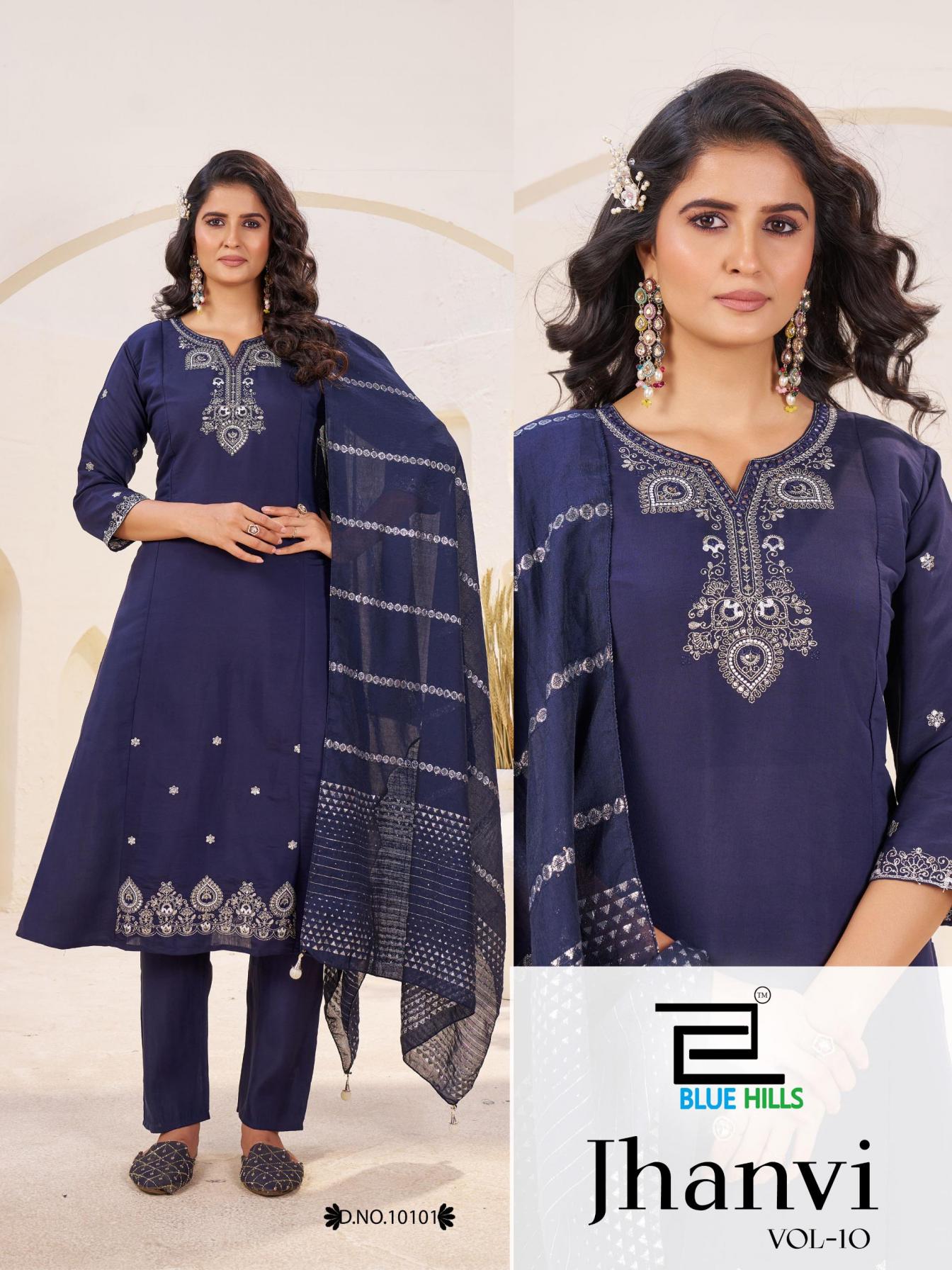 Looking for JHANVI VOL 10 BY BLUE HILLS READYMADE ROMAN SILK BIG SIZE SUITS Full Catalouge at Best Price? Buy Now JHANVI VOL 10 BY BLUE HILLS READYMADE ROMAN SILK BIG SIZE SUITS at Wholesale Rate of Rs 3480 with Total 4 Pcs from authroized dealer and supplier of Blue Hills Brand. Cost of Each piece is just only Rs 870 which is very low and affordable price to resale the product in your retail store. rrgandhi is Surat based Wholesale Supplier & Dealer of Blue Hills Brand. Click on Brand name to Know more about Brand's products.
