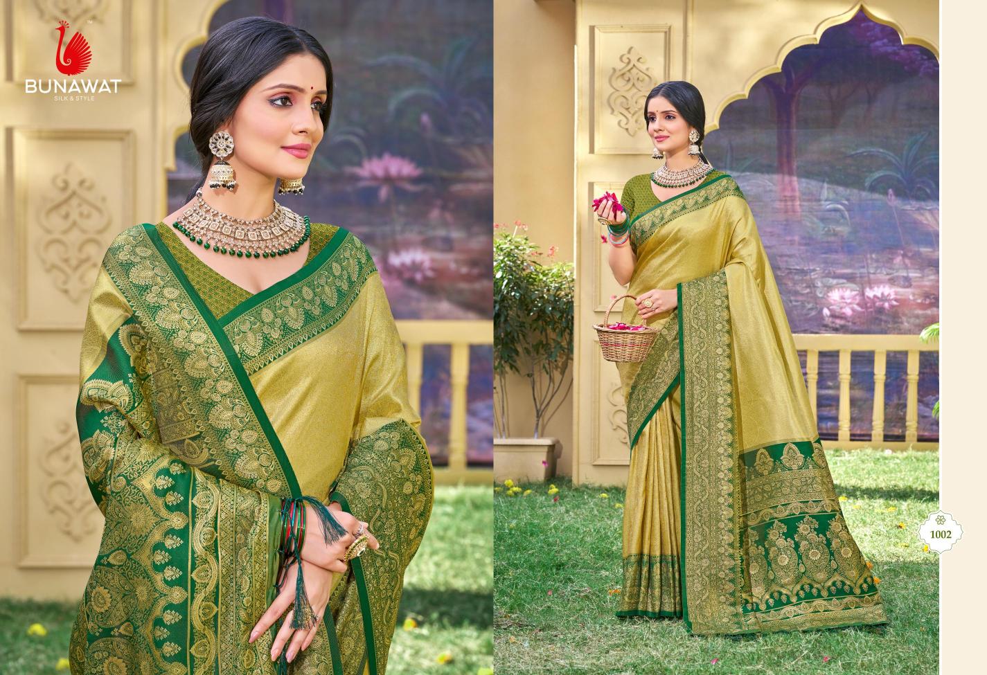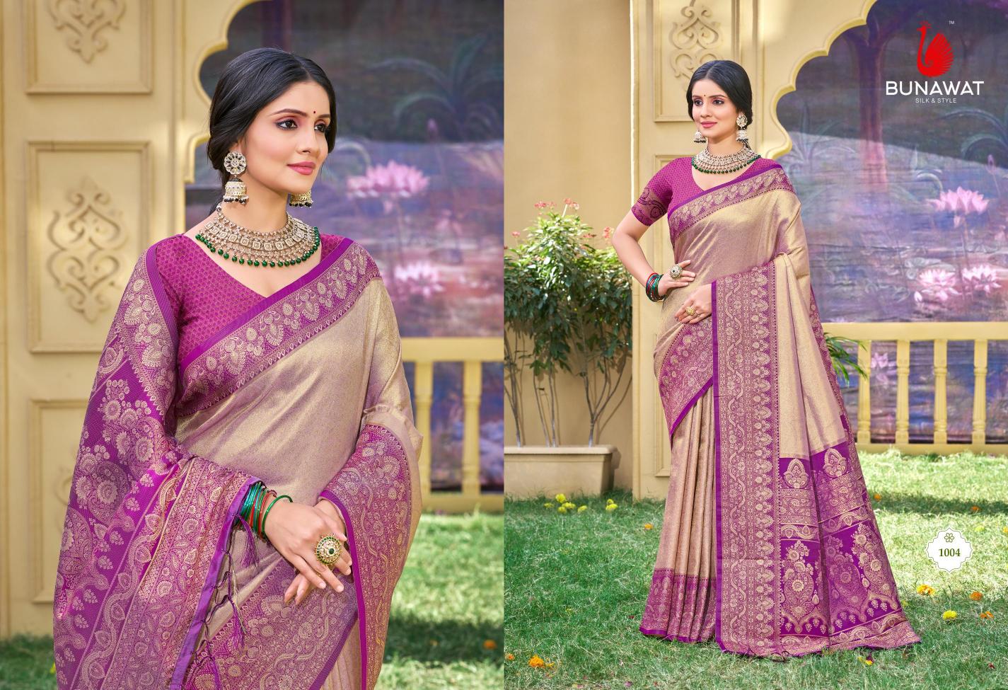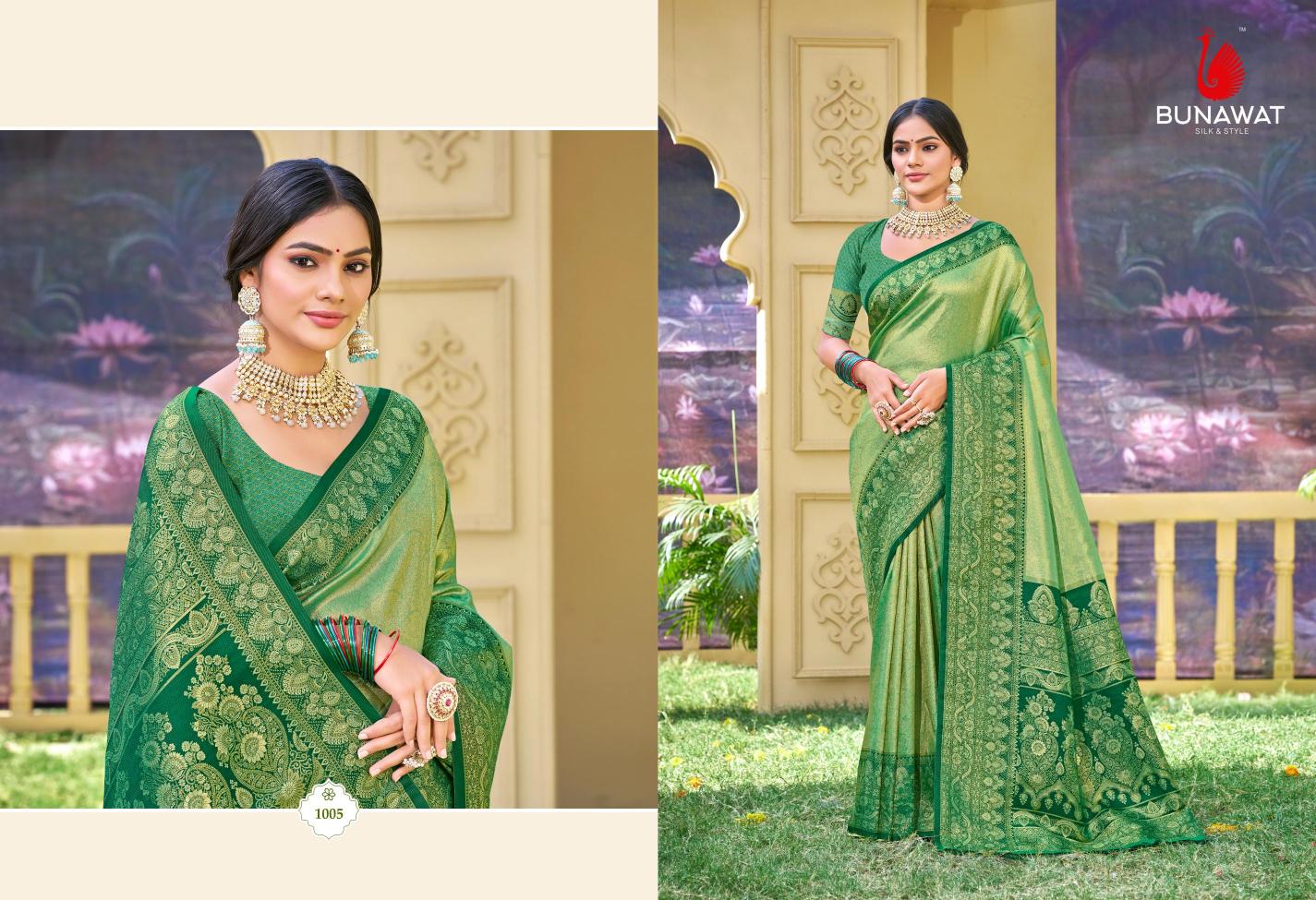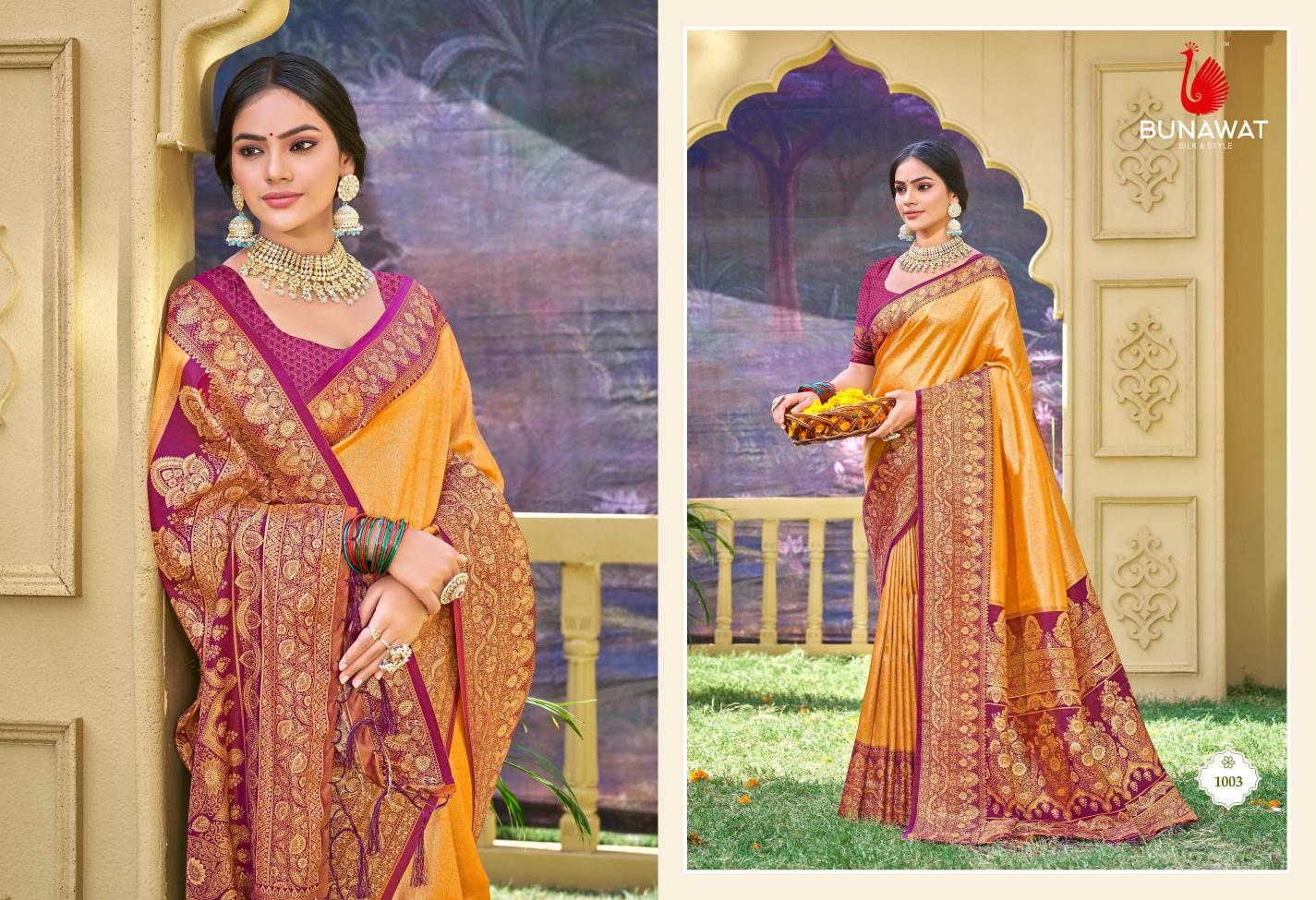 Looking for Jhumer Silk By Bunawat Banarasi Silk Sarees Latest Collection For Wedding Full Catalouge at Best Price? Buy Now Jhumer Silk By Bunawat Banarasi Silk Sarees Latest Collection For Wedding at Wholesale Rate of Rs 8400 with Total 6 Pcs from authroized dealer and supplier of Bunawat Brand. Cost of Each piece is just only Rs 1400 which is very low and affordable price to resale the product in your retail store. rrgandhi is Surat based Wholesale Supplier & Dealer of Bunawat Brand. Click on Brand name to Know more about Brand's products.