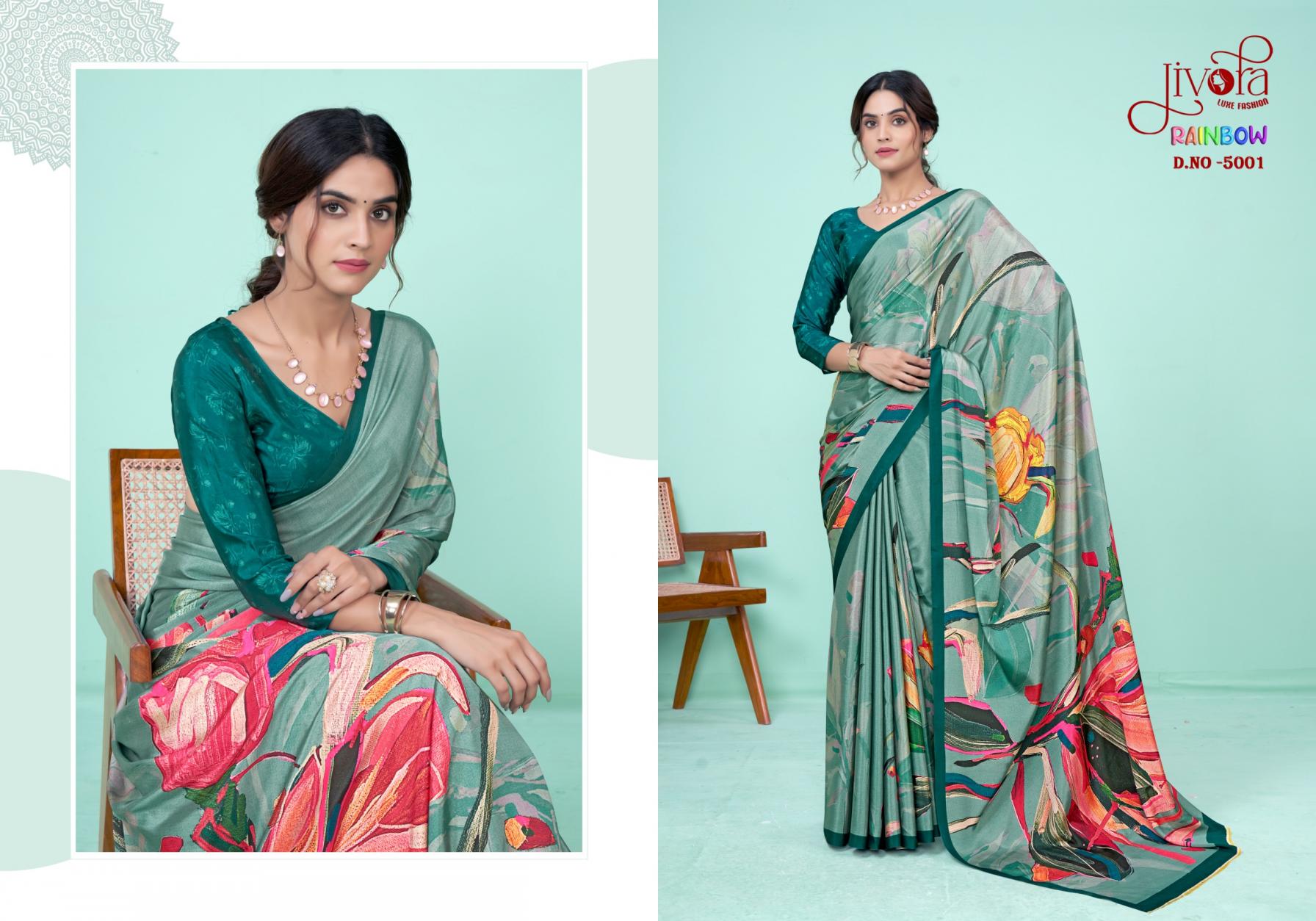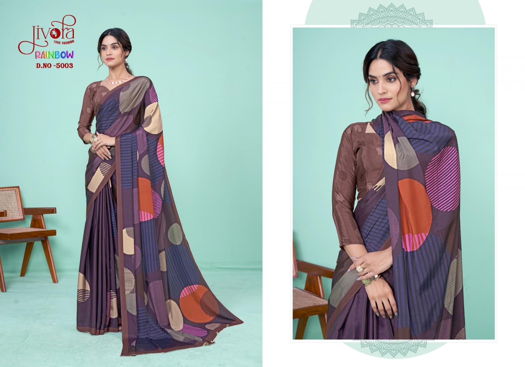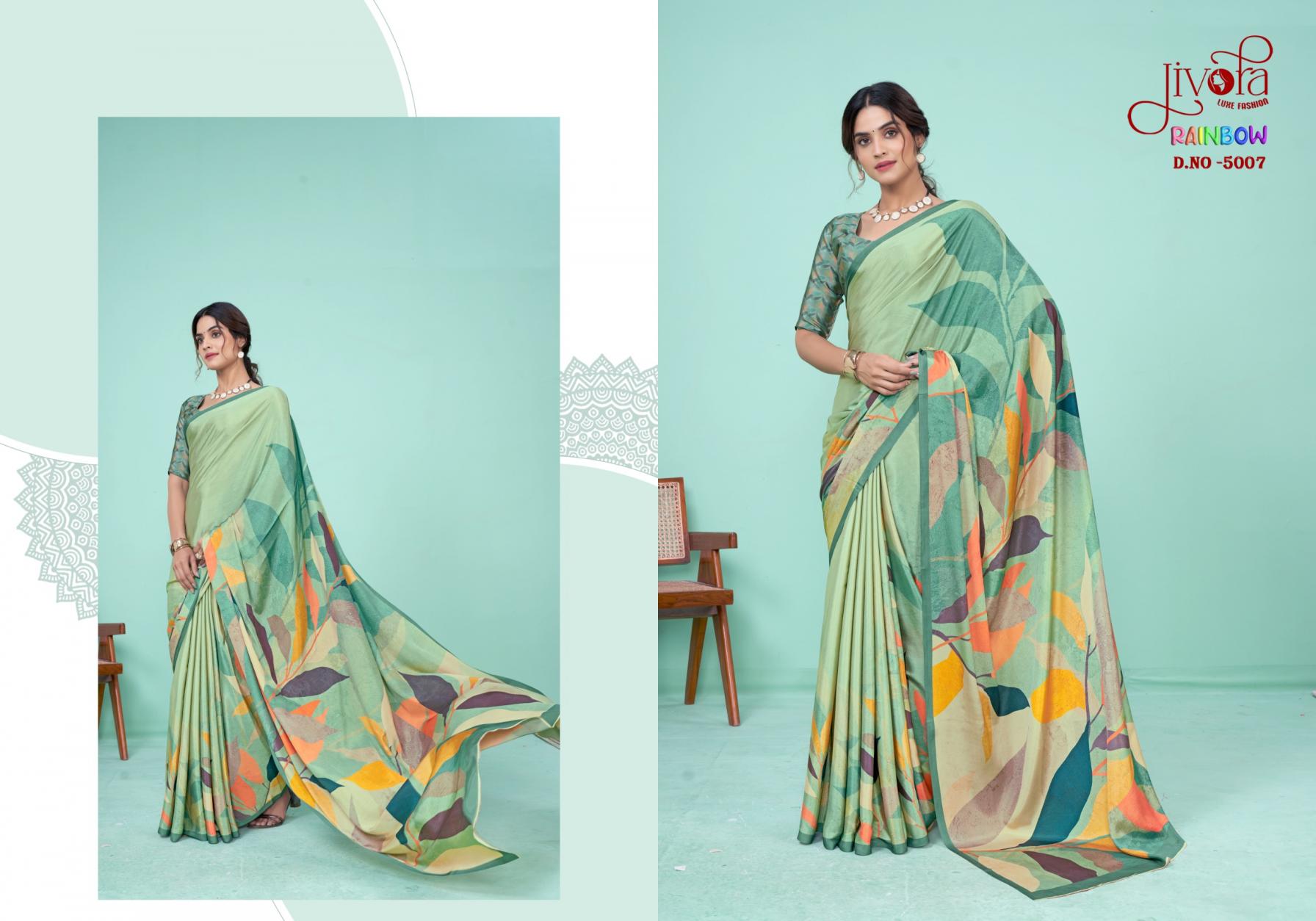Looking for JIVORA PRESENTS RAINBOW 5001-5010 CLASSY LOOK SAREE Full Catalouge at Best Price? Buy Now JIVORA PRESENTS RAINBOW 5001-5010 CLASSY LOOK SAREE at Wholesale Rate of Rs 9500 with Total 10 Pcs from authroized dealer and supplier of Jivora Luke Fashion Brand. Cost of Each piece is just only Rs 950 which is very low and affordable price to resale the product in your retail store. rrgandhi is Surat based Wholesale Supplier & Dealer of Jivora Luke Fashion Brand. Click on Brand name to Know more about Brand's products.