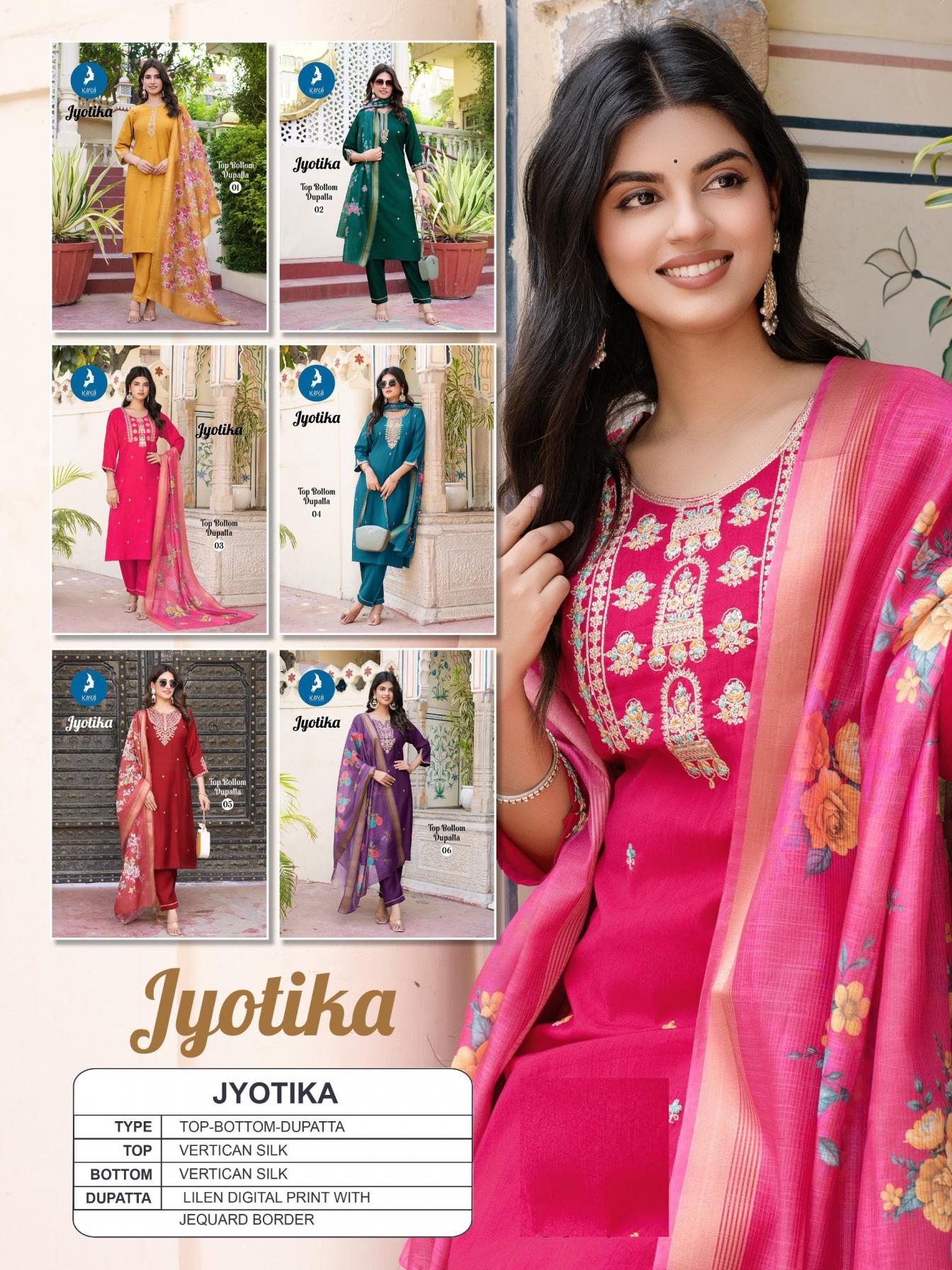 Looking for JYOTIKA BY KAYA FULL STITCH STYLISH VERTICAN SILK SUIT FOR WOMENS Full Catalouge at Best Price? Buy Now JYOTIKA BY KAYA FULL STITCH STYLISH VERTICAN SILK SUIT FOR WOMENS at Wholesale Rate of Rs 5040 with Total 6 Pcs from authroized dealer and supplier of Kaya Brand. Cost of Each piece is just only Rs 840 which is very low and affordable price to resale the product in your retail store. rrgandhi is Surat based Wholesale Supplier & Dealer of Kaya Brand. Click on Brand name to Know more about Brand's products.