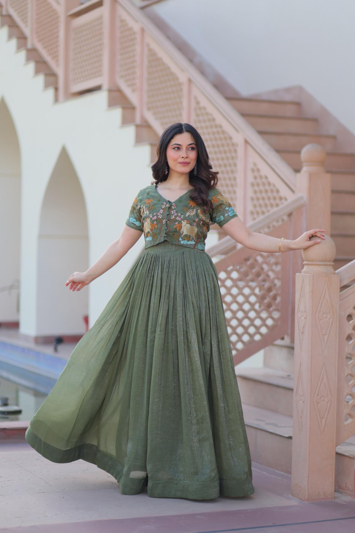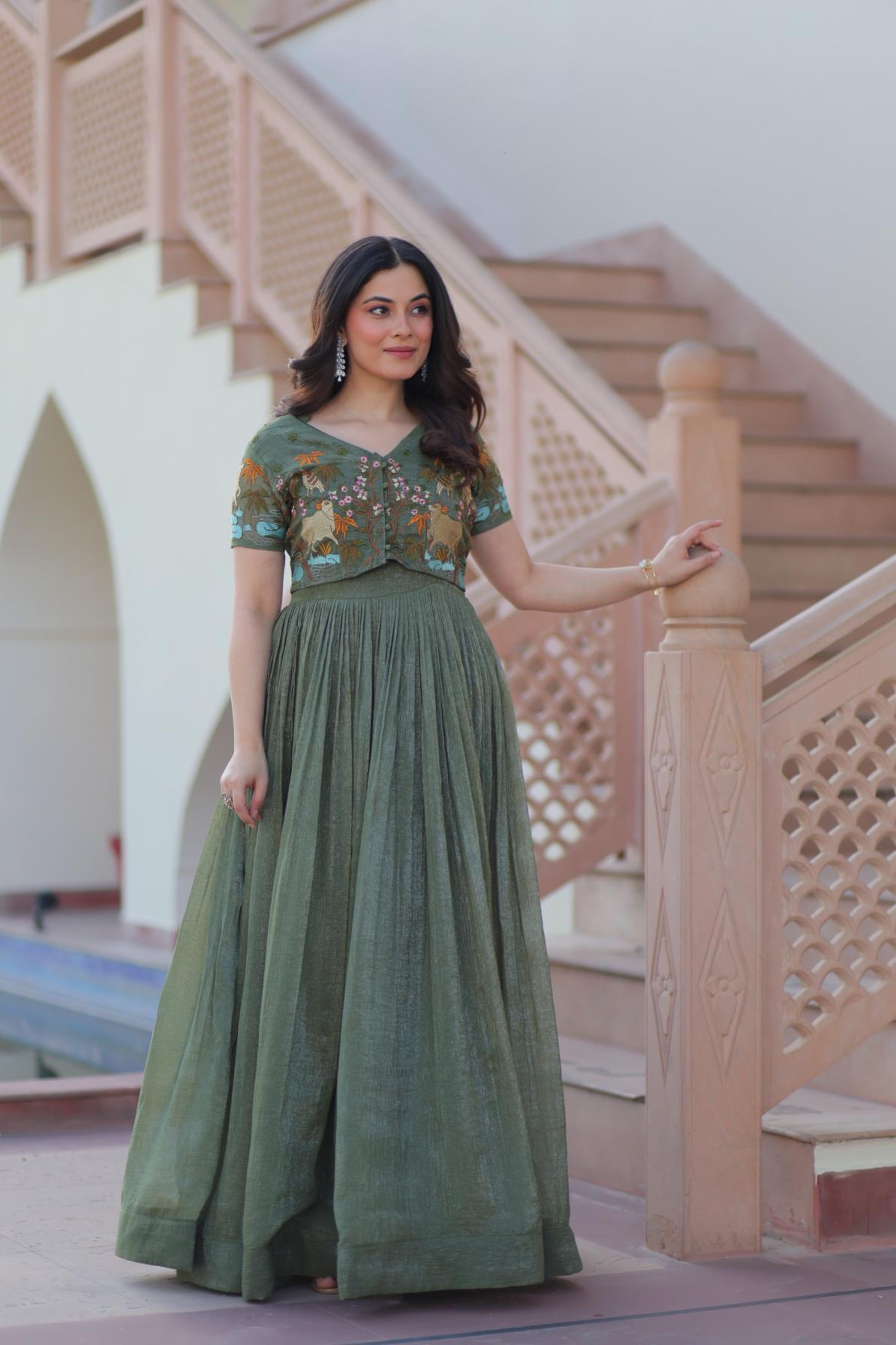 Looking for KA 1170 FASHIONABLE SILVER CRUNCHY READYMADE GOWNS KOTI FOR GIRLS Full Catalouge at Best Price? Buy Now KA 1170 FASHIONABLE SILVER CRUNCHY READYMADE GOWNS KOTI FOR GIRLS at Wholesale Rate of Rs 1800 with Total 2 Pcs from authroized dealer and supplier of P R Clothing Brand. Cost of Each piece is just only Rs 900 which is very low and affordable price to resale the product in your retail store. rrgandhi is Surat based Wholesale Supplier & Dealer of P R Clothing Brand. Click on Brand name to Know more about Brand's products.